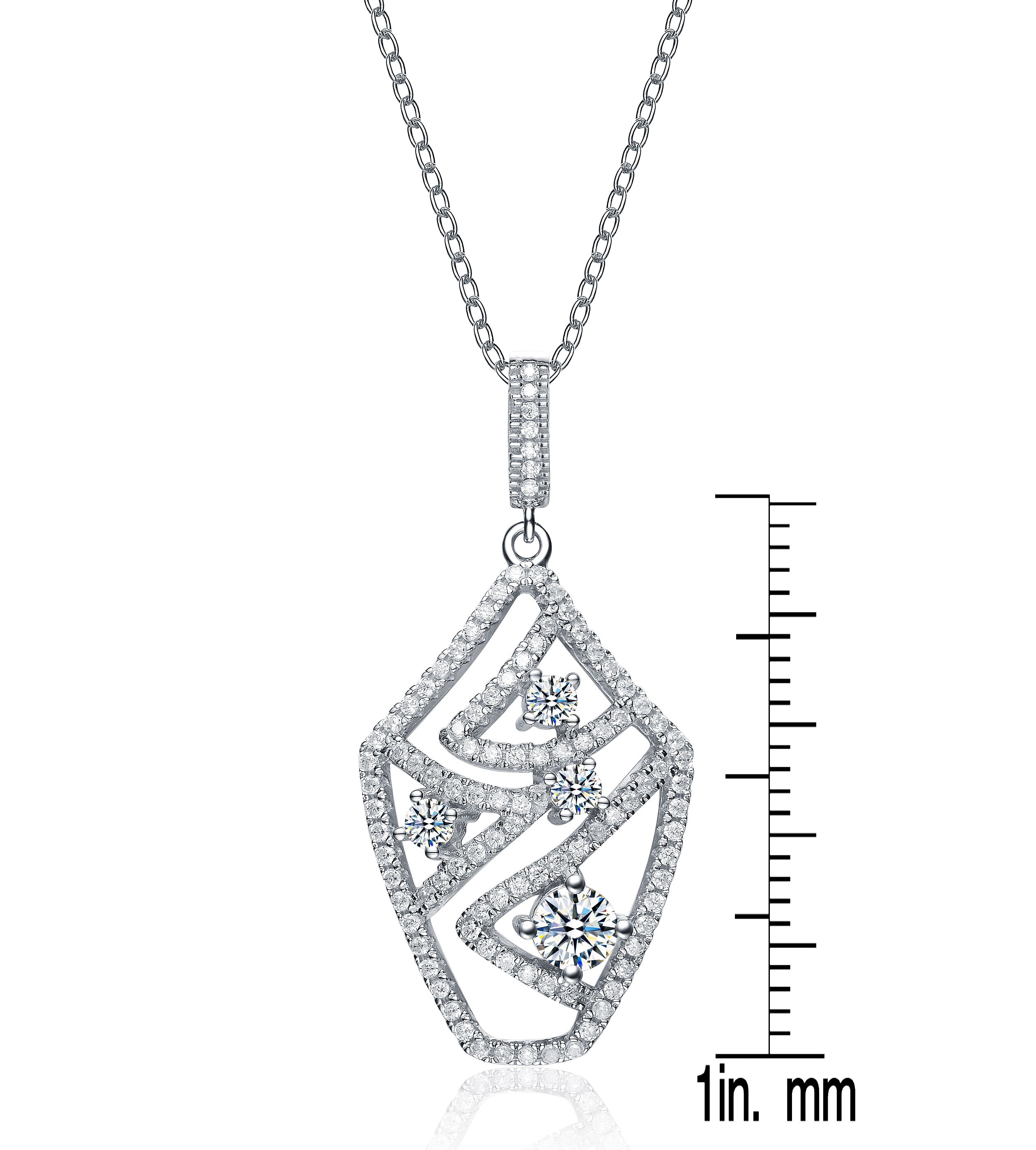Cubic Zirconia Sterling Silver Rhodium Plated Shape Drop Pendant