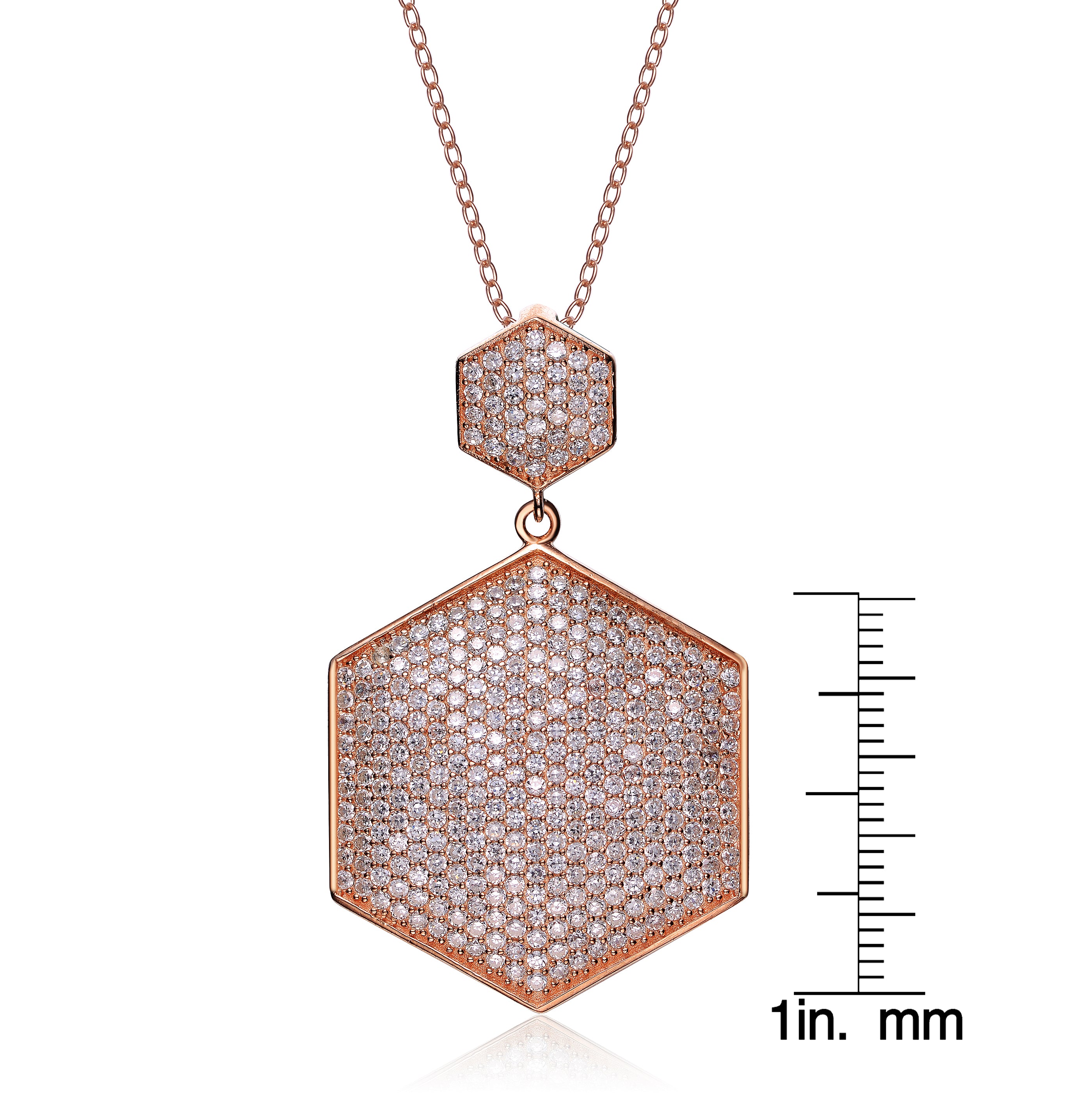 Rose Gold Overlay Clear Cubic Zirconia Hexagon Necklace