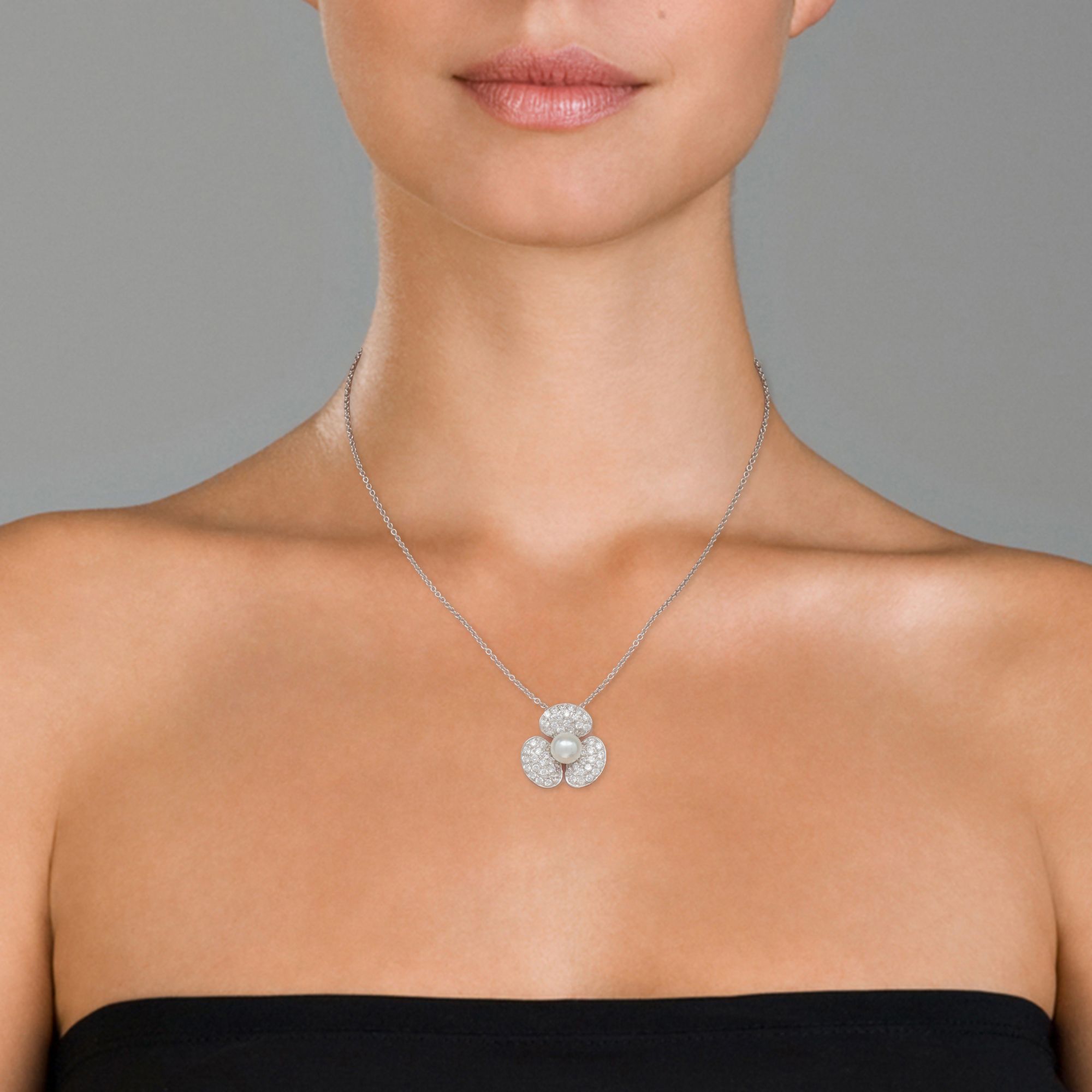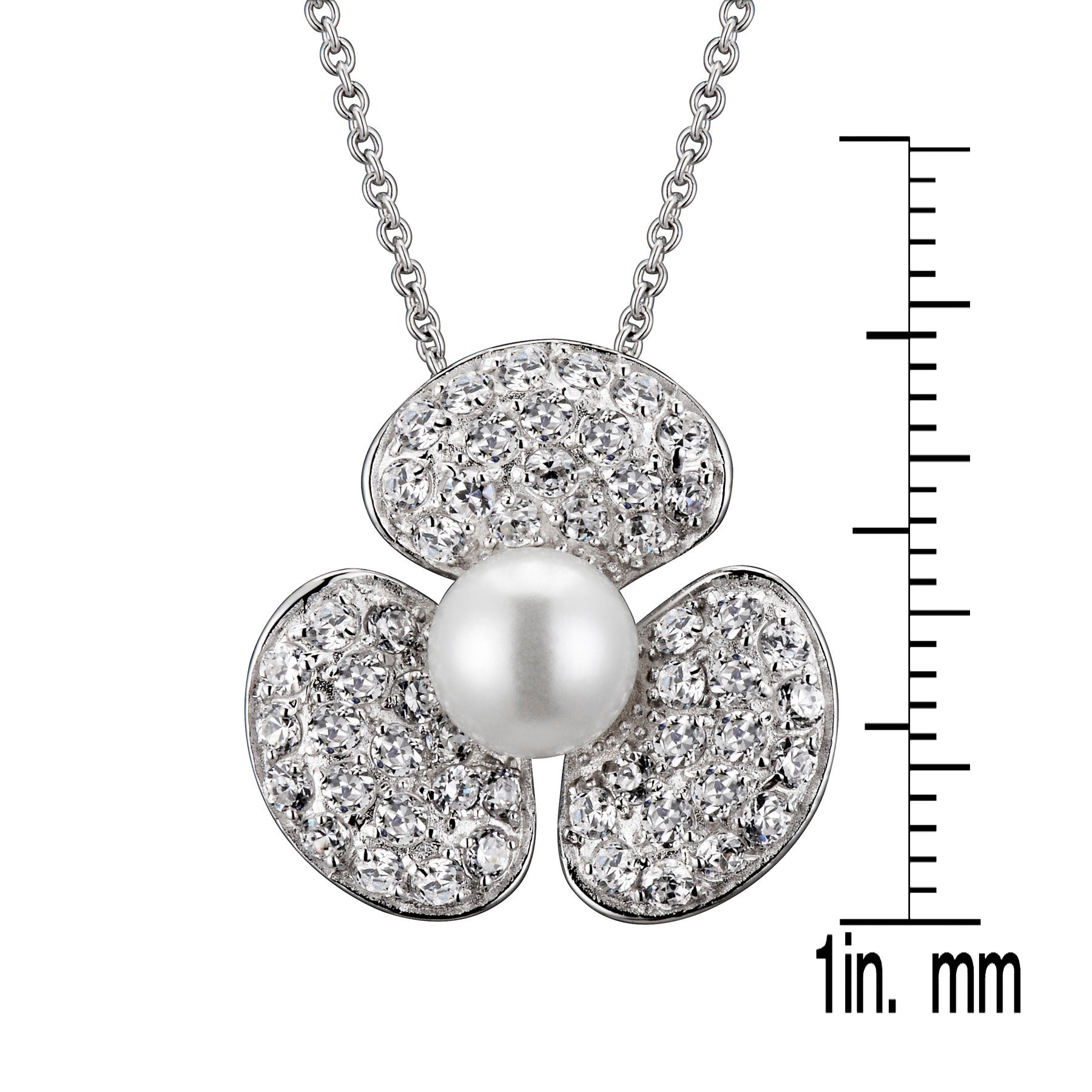 Sterling Silver Pearl and Cubic Zirconia Infinity-Inspired Pendant