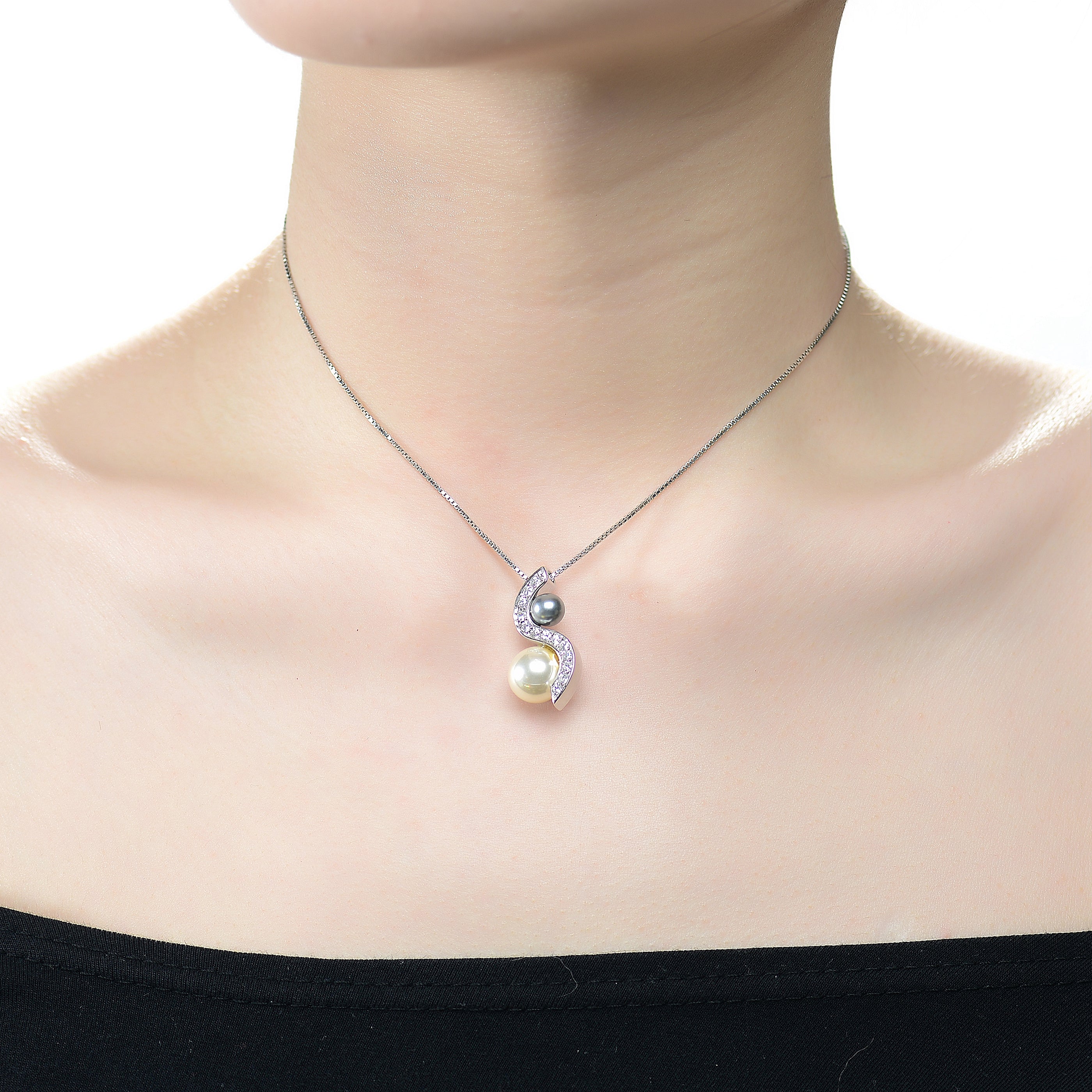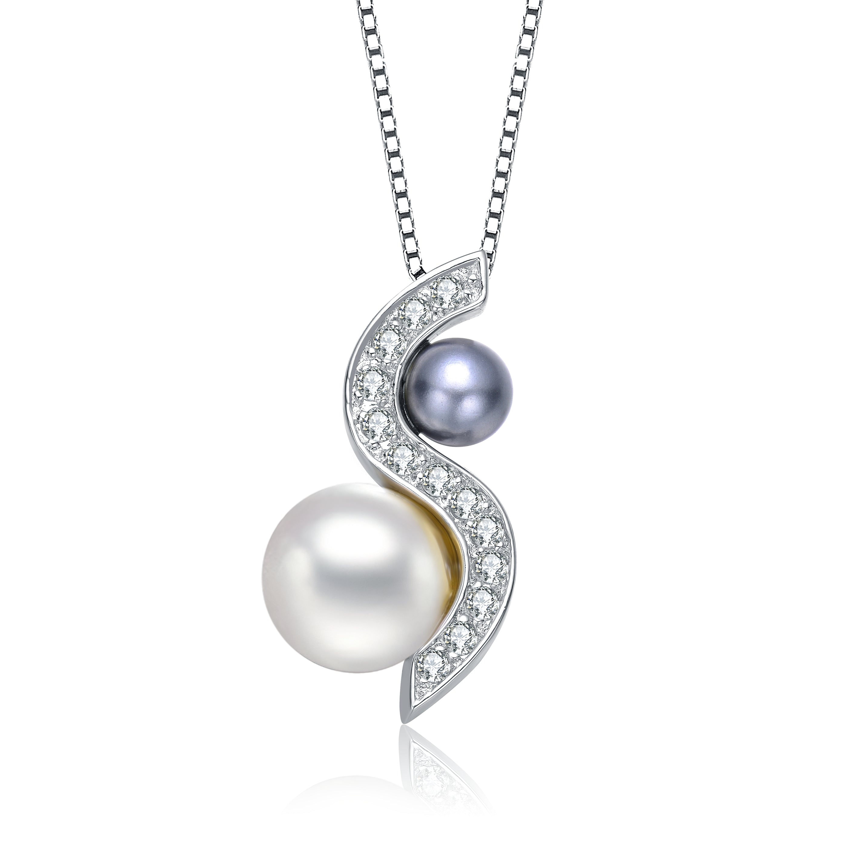Sterling Silver Pearl and Cubic Zirconia S Shape Pendant