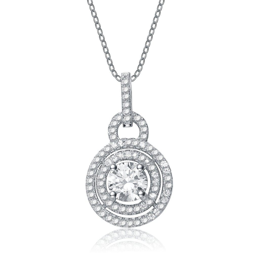 Sterling Silver Cubic Zirconia Pave Circle Necklace