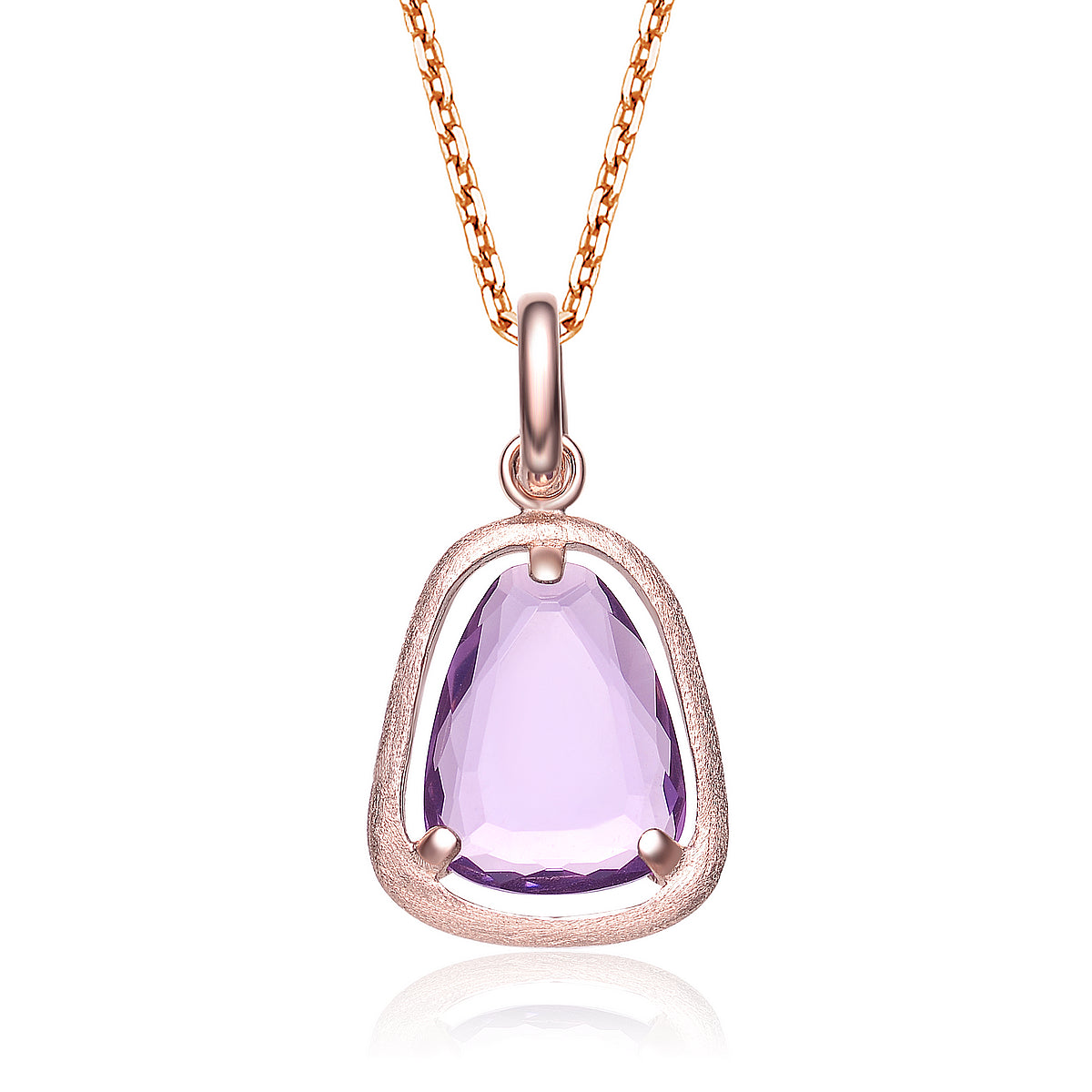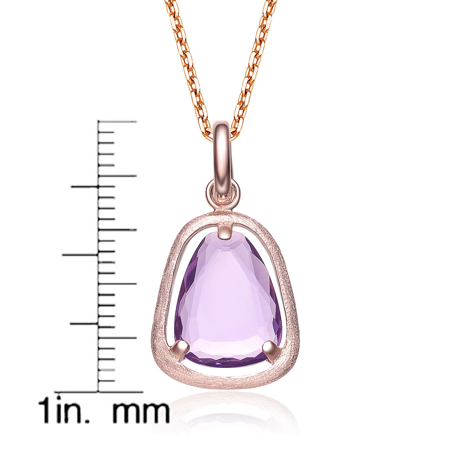 Cubic Zirconia Sterling Silver Rose Plated Amethyst Drop Pendant