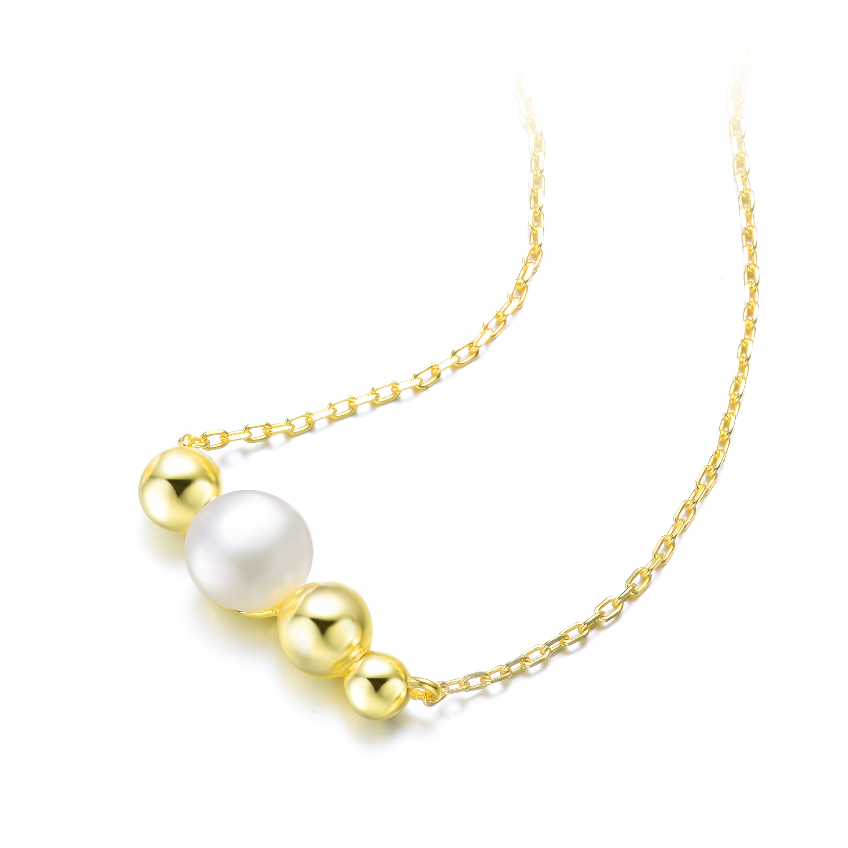 Sterling Silver 14K Gold Plated and 6MM freshwater Pearl Necklace