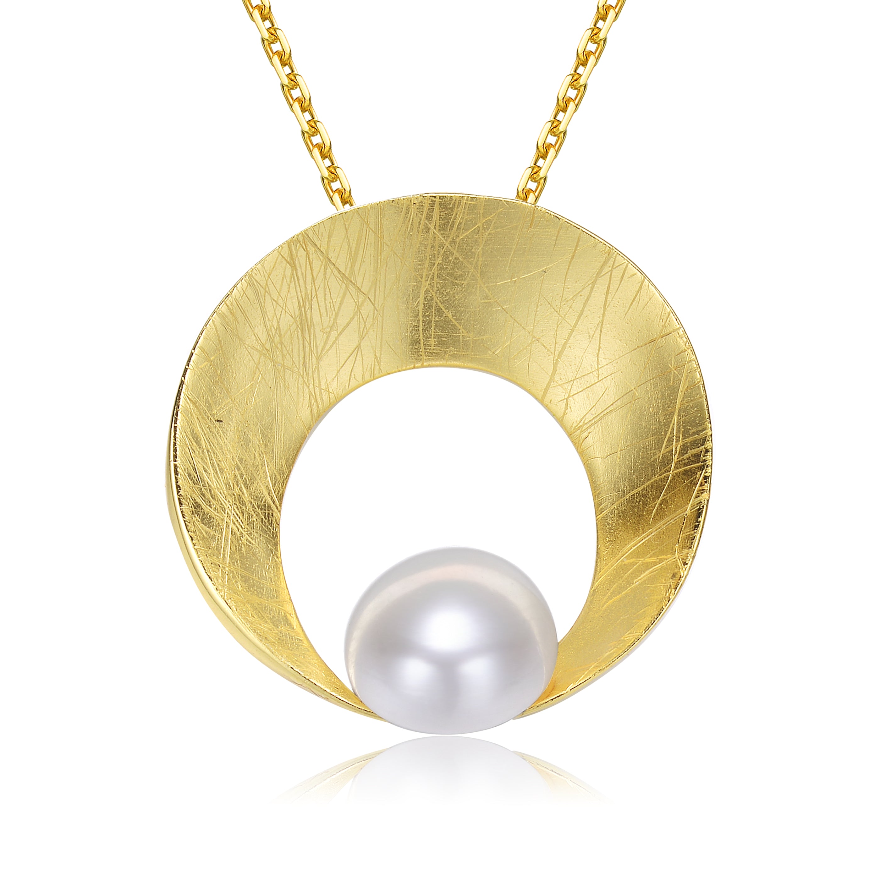 Sterling Silver Gold Plated with Genuine Freshwater Pearl Round Pendant Necklace