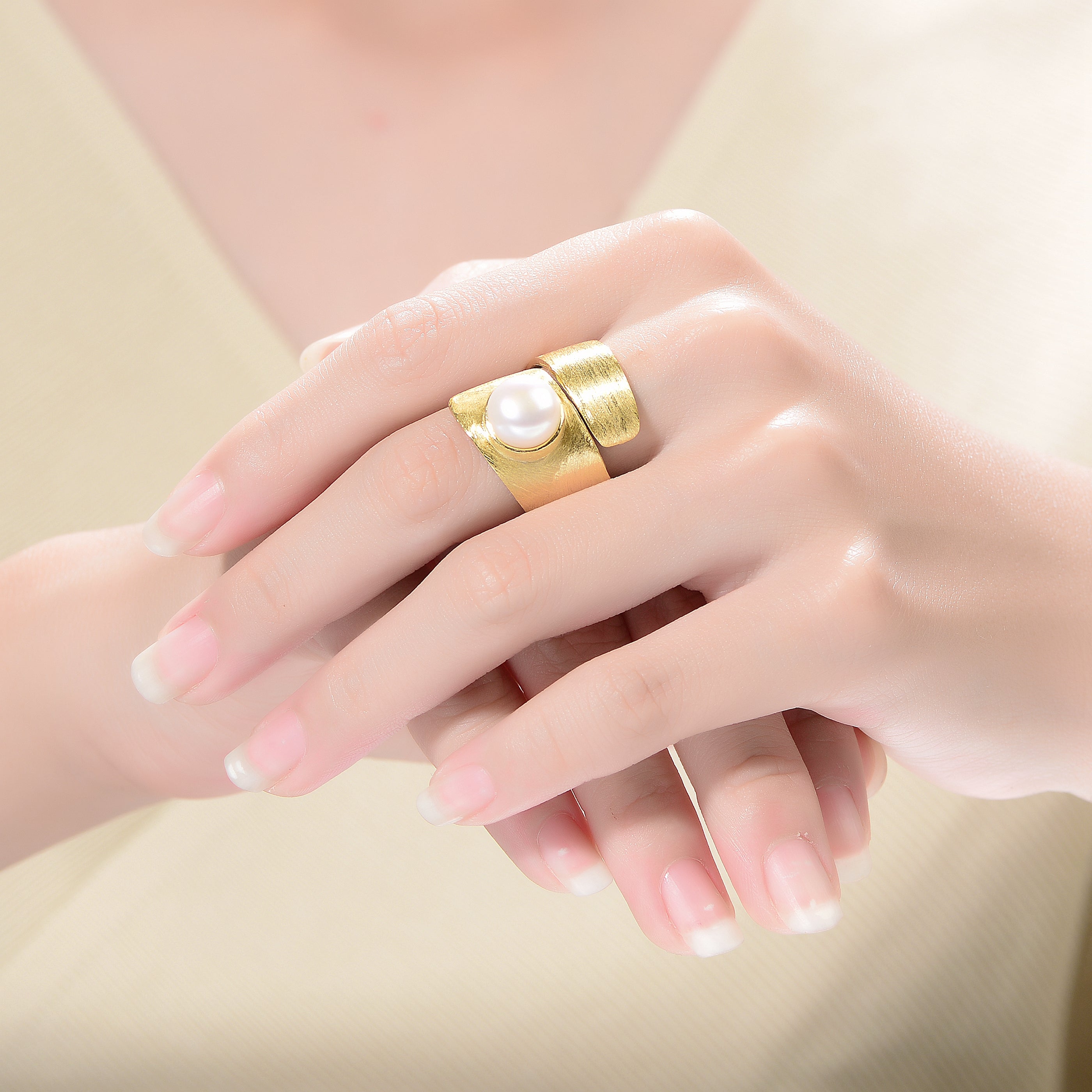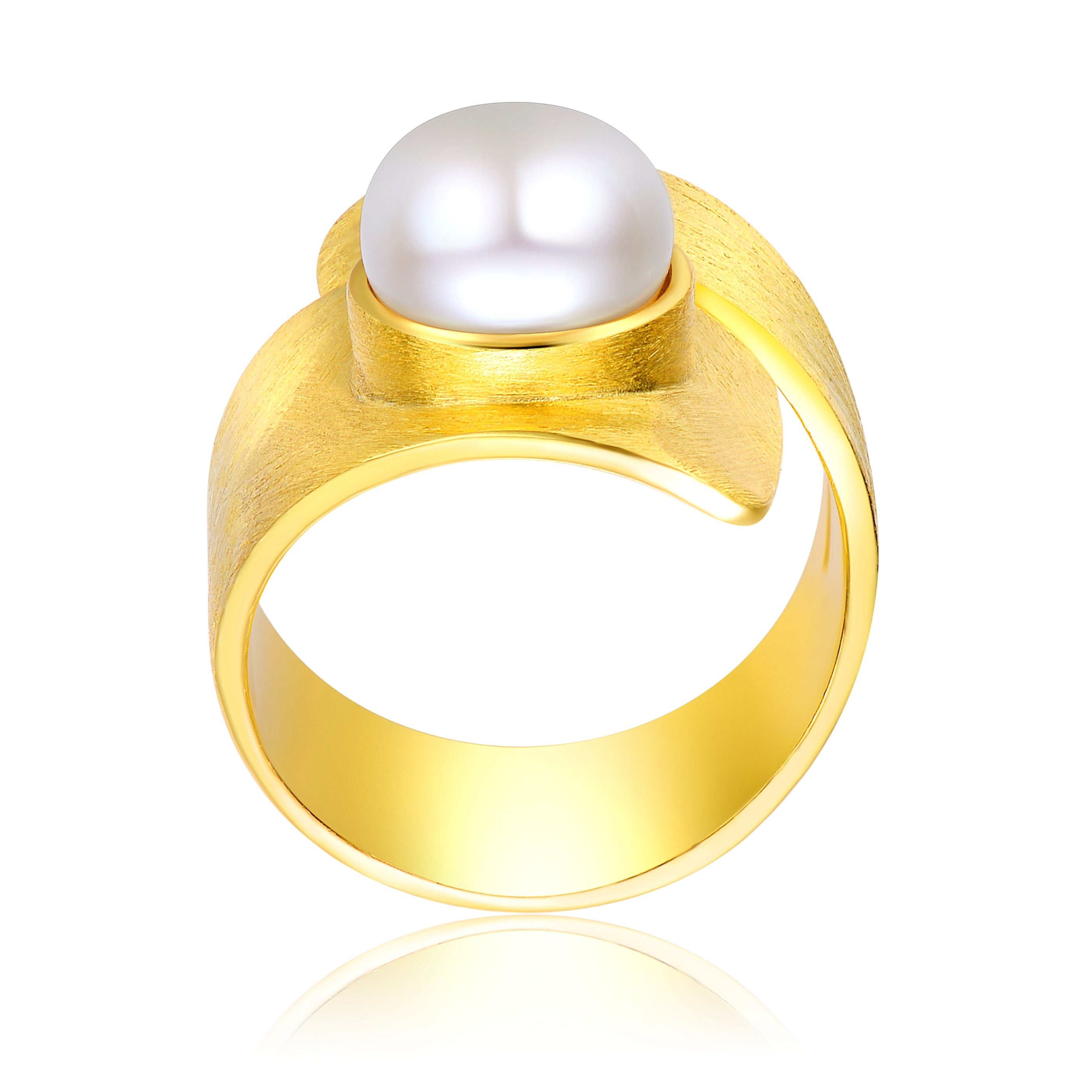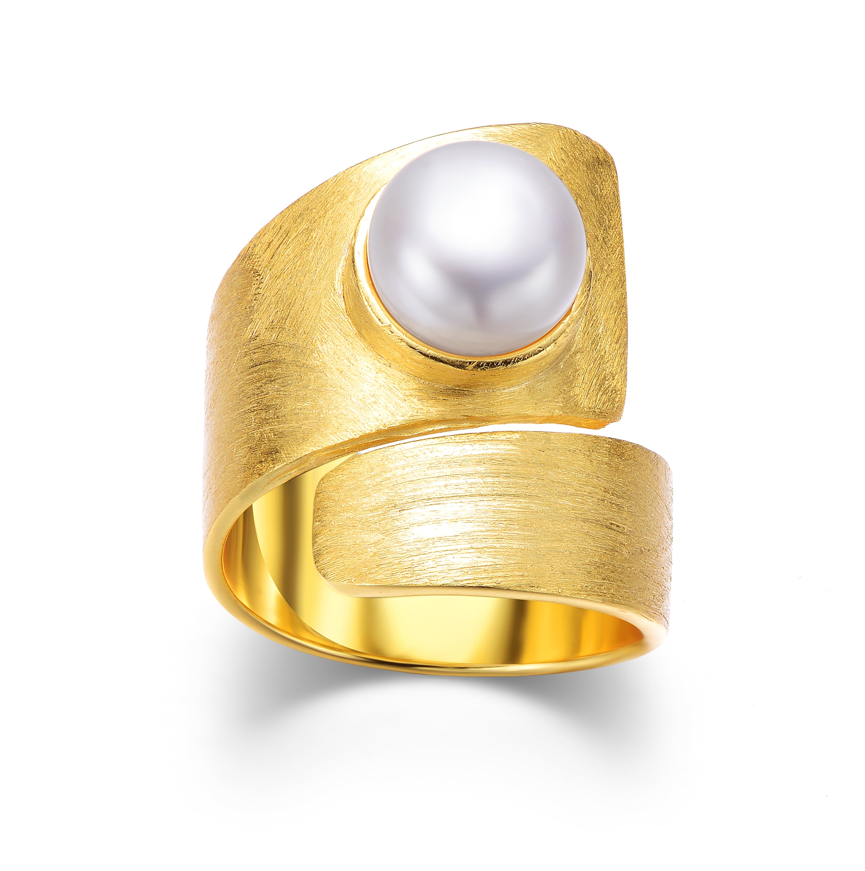 Delphine Brushed Maxi Crossover Pearl Ring