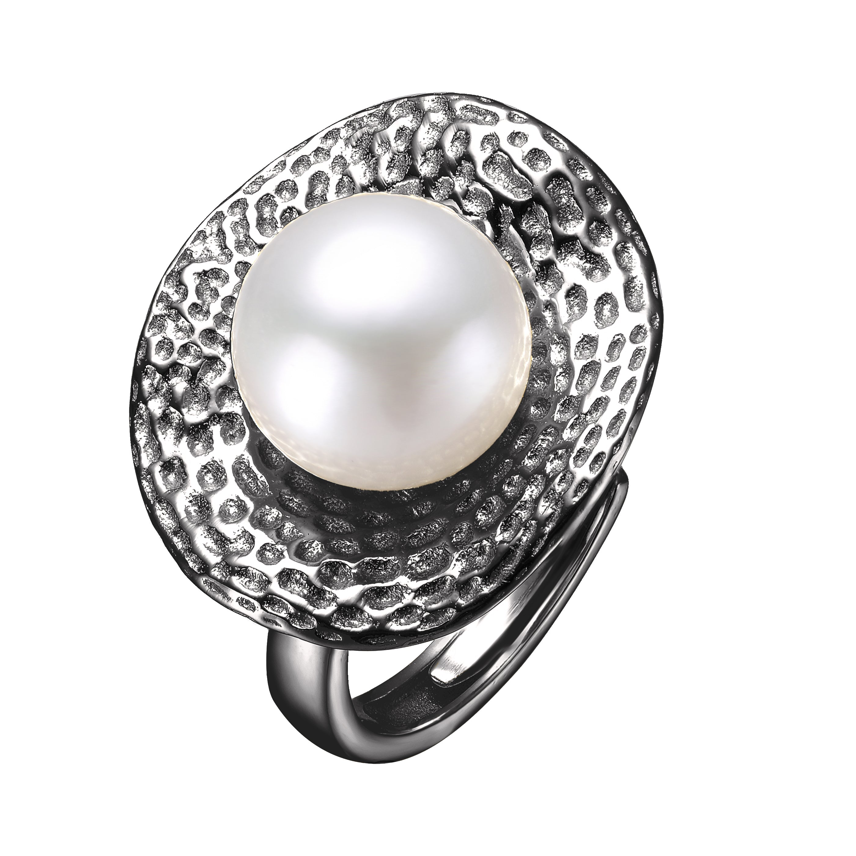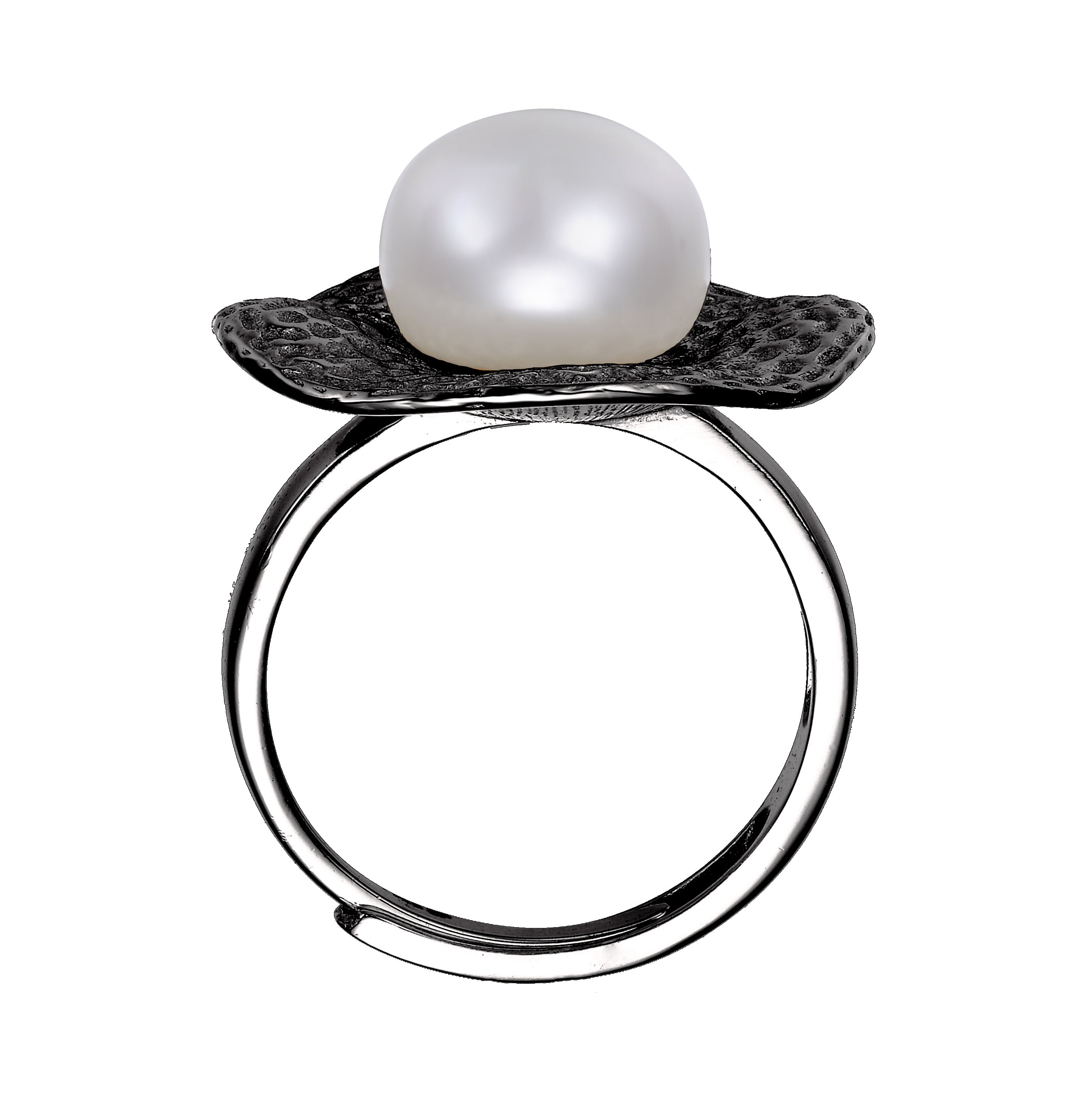 Sterling Silver Gold Plated with Genuine Freshwater Pearl Hammered Ring