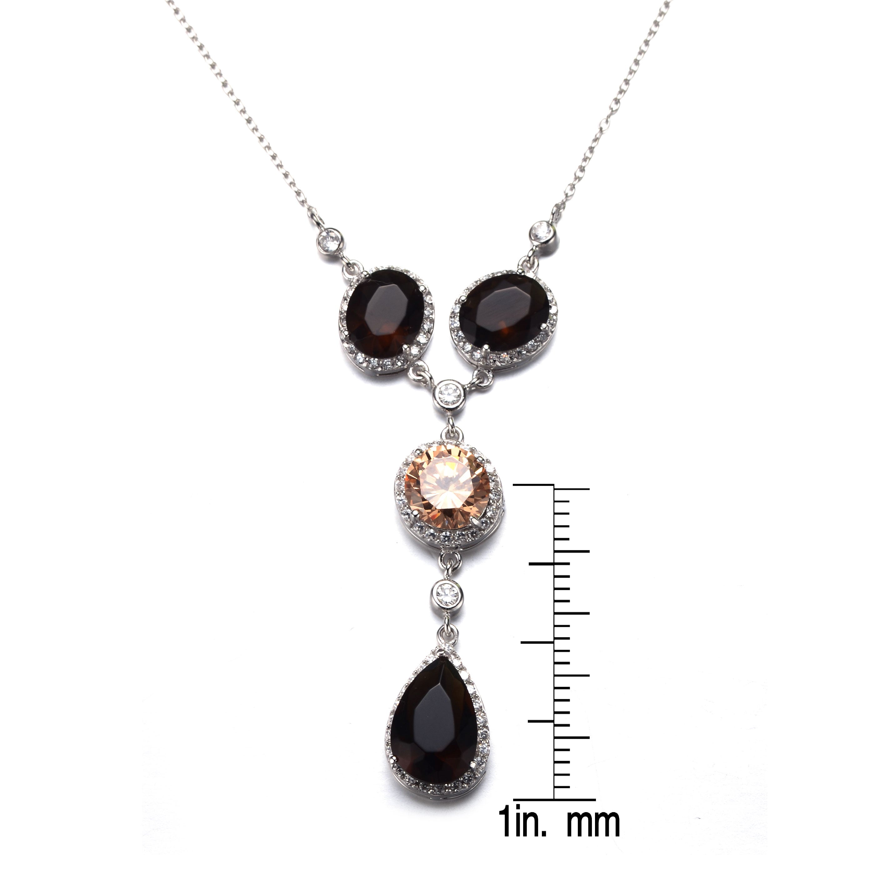 Sterling Silver Black and Copper Cubic Zirconia Y Necklace