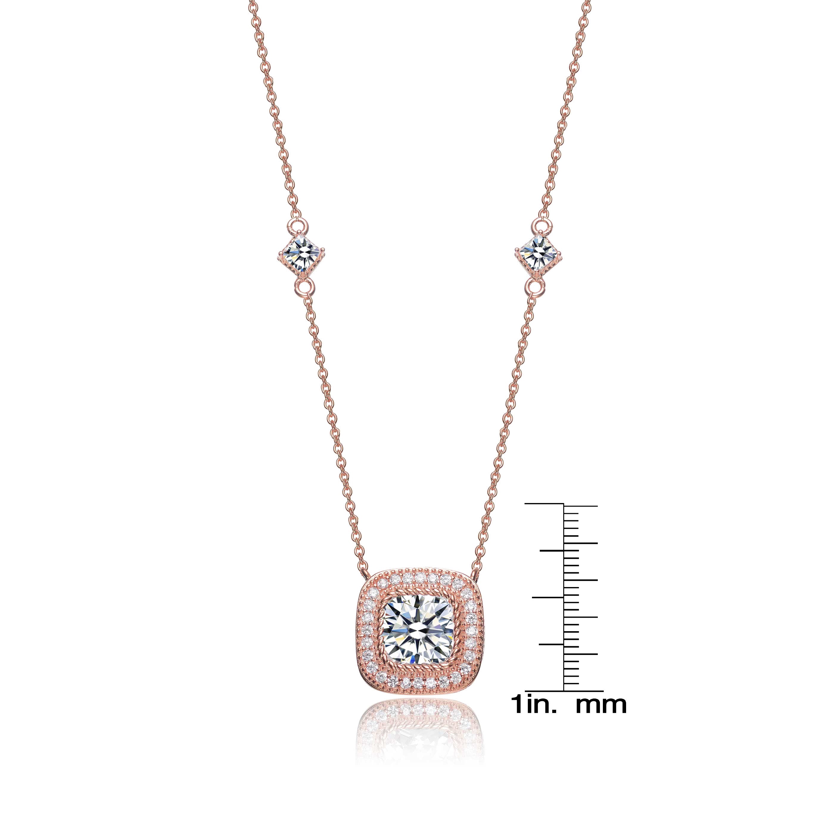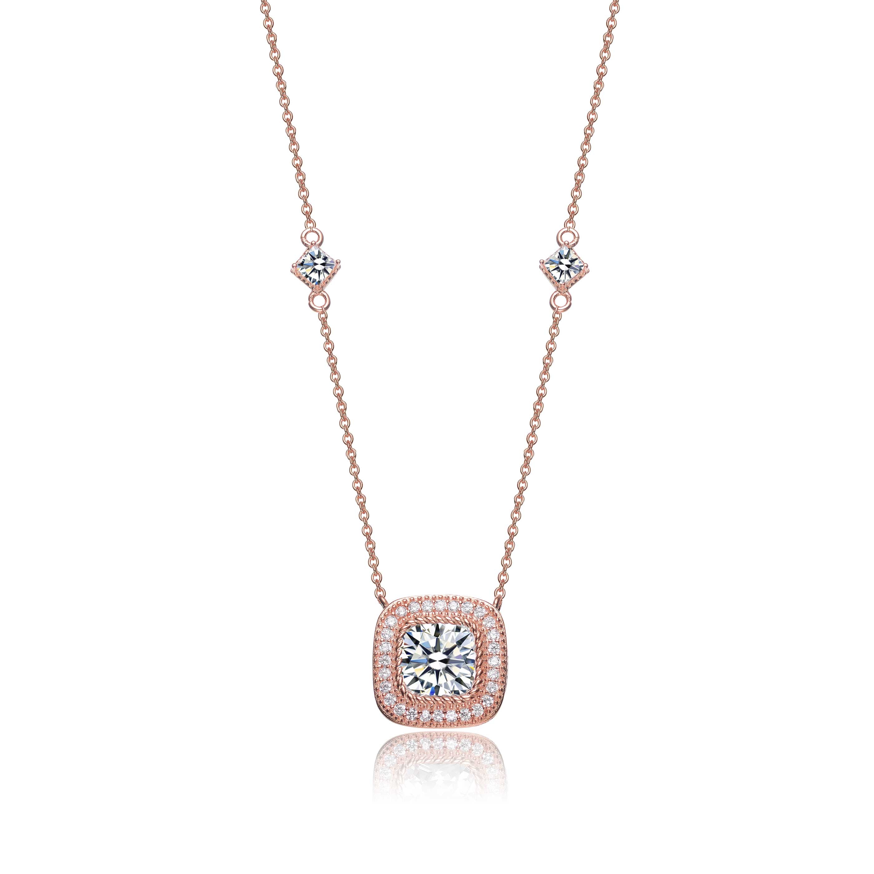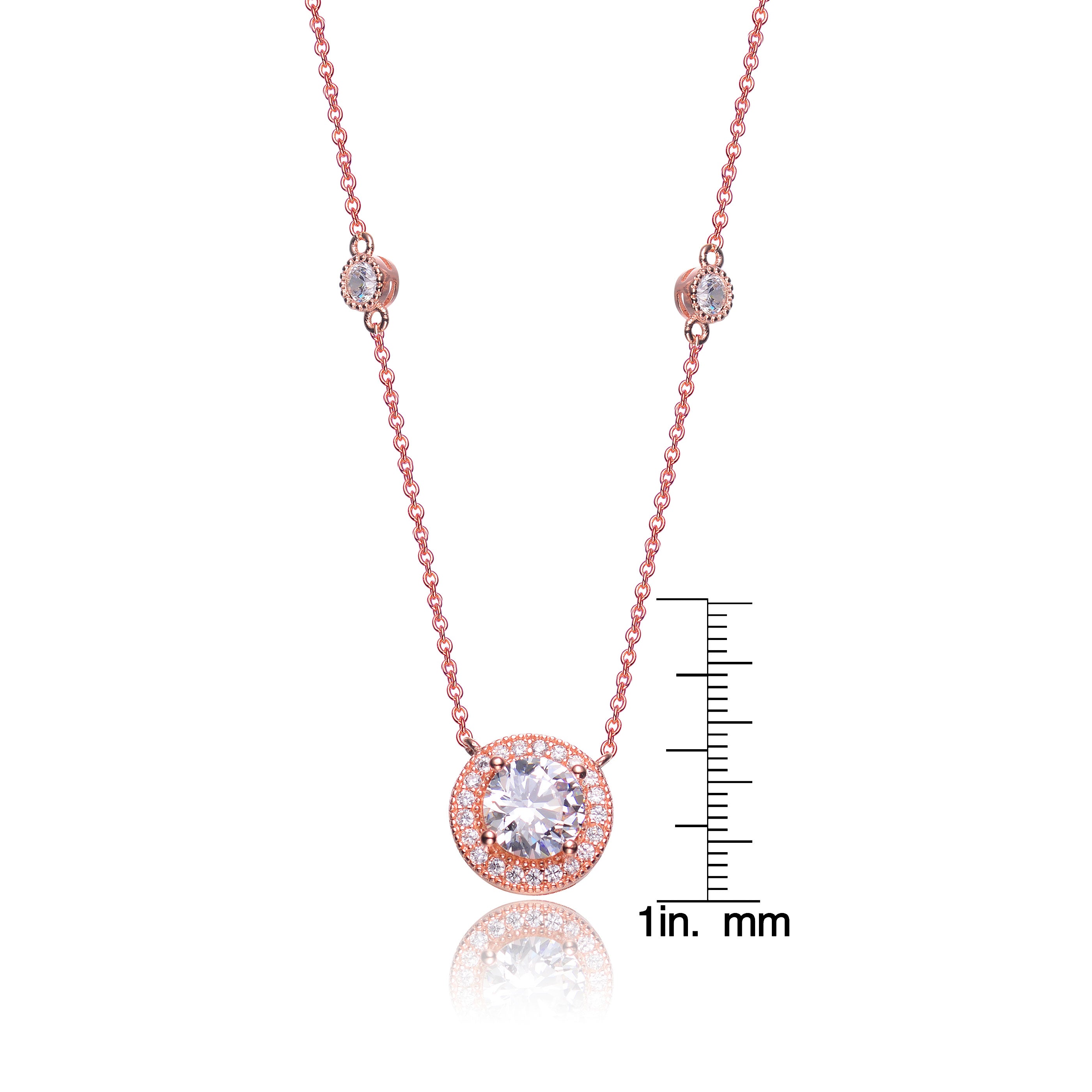 Sterling Silver with Rose Gold Plated Halo Clear Round Cubic Zirconia Chain Necklace