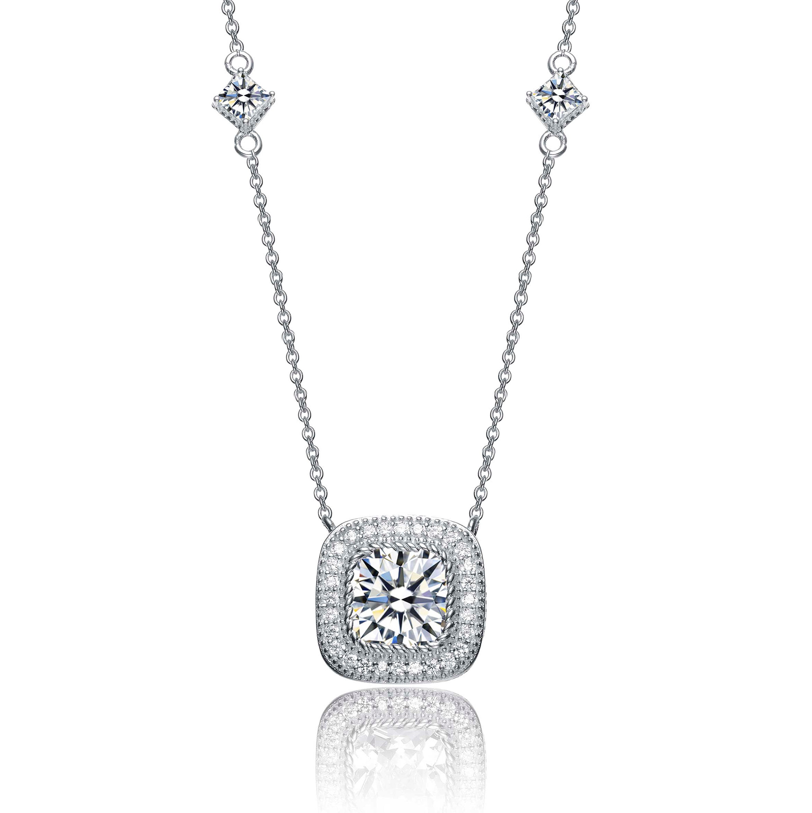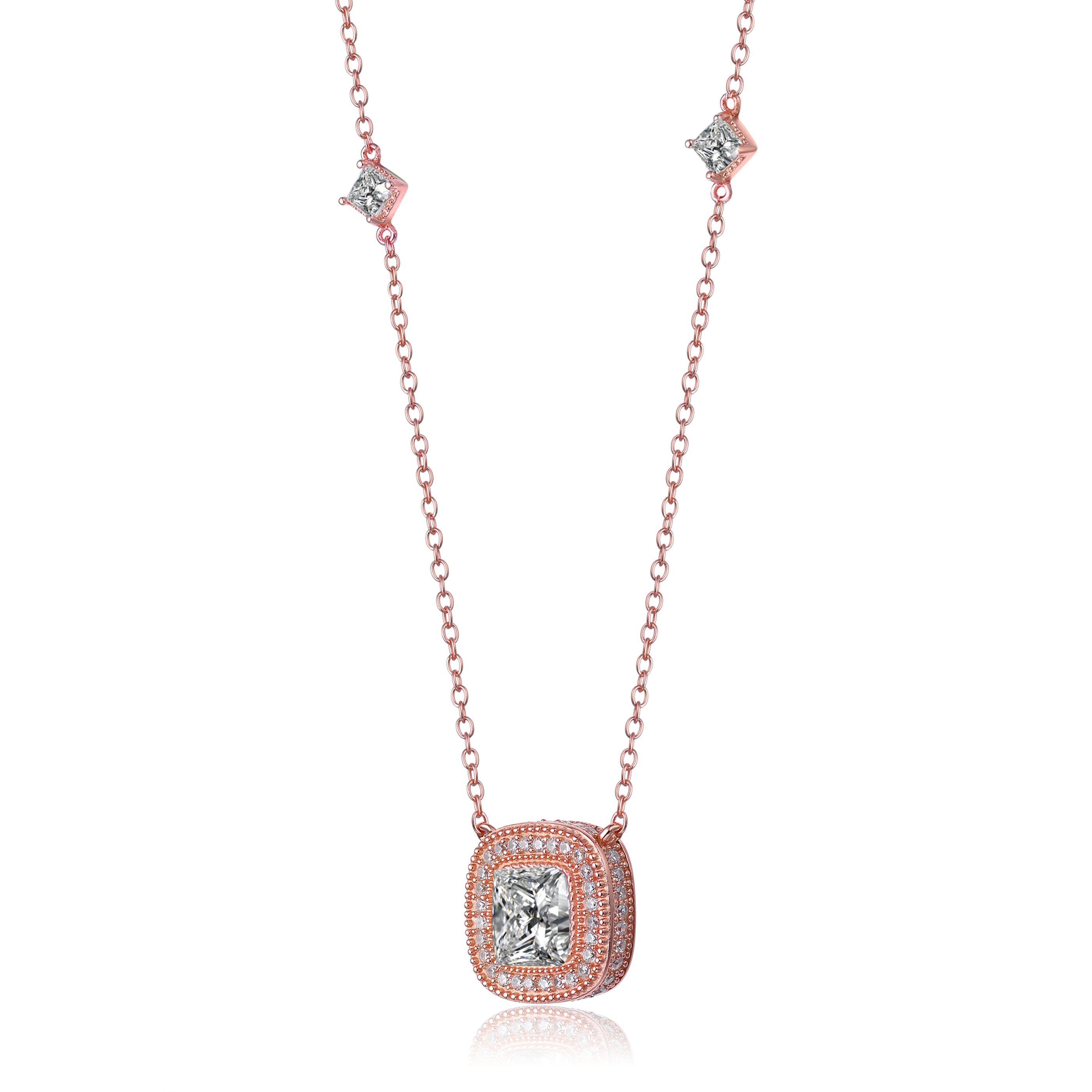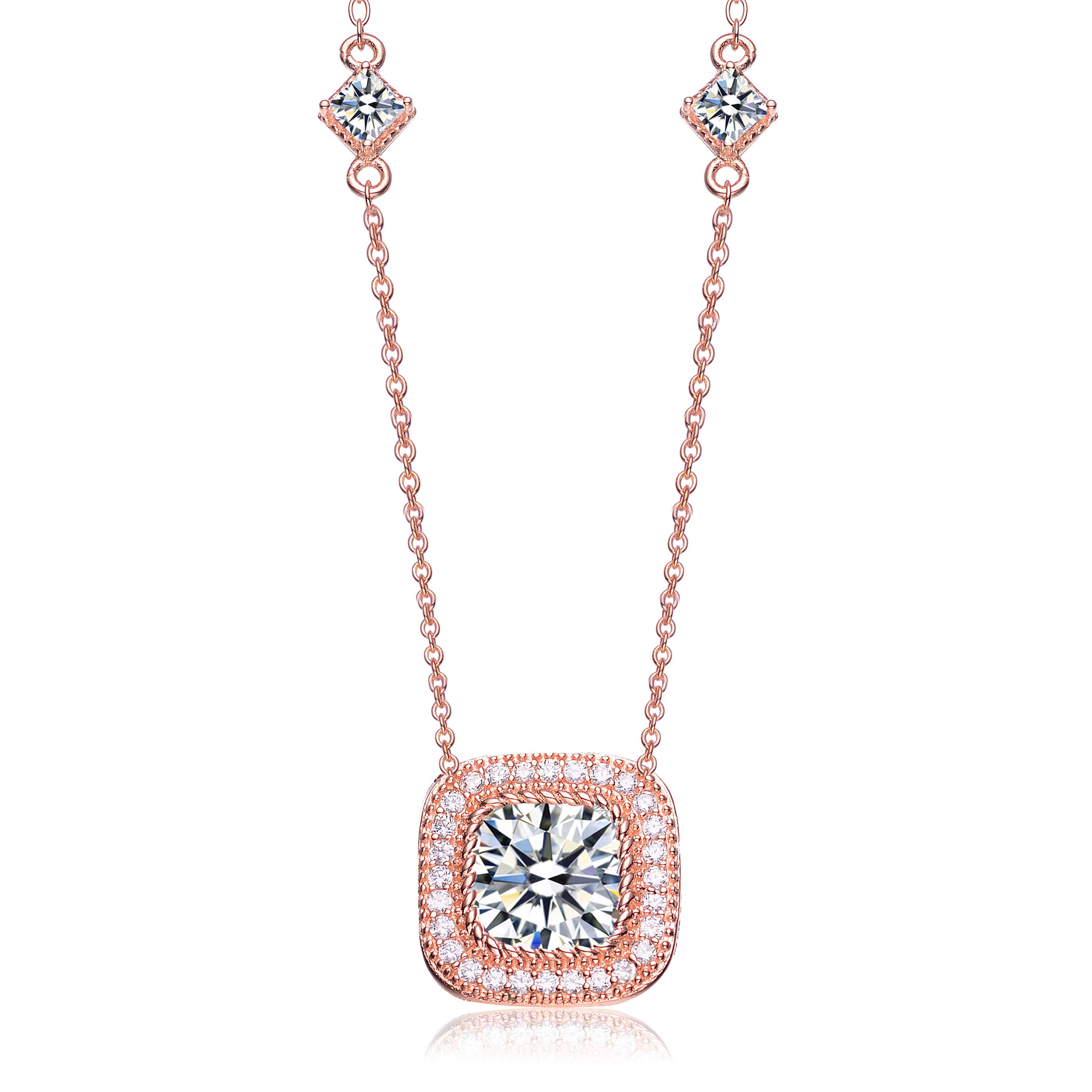 Sterling Silver with Rose Gold Plated Halo Clear Round Cubic Zirconia Chain Necklace