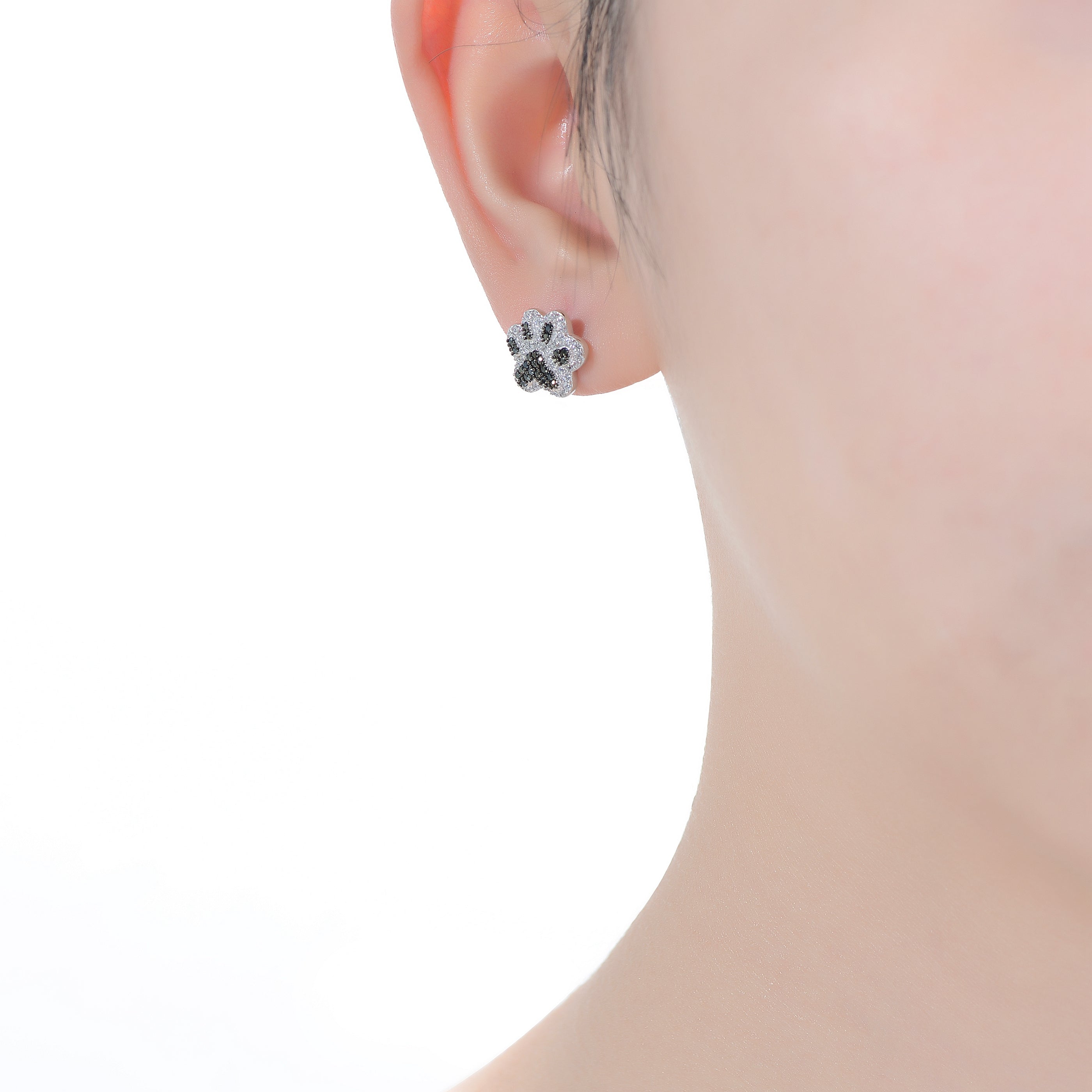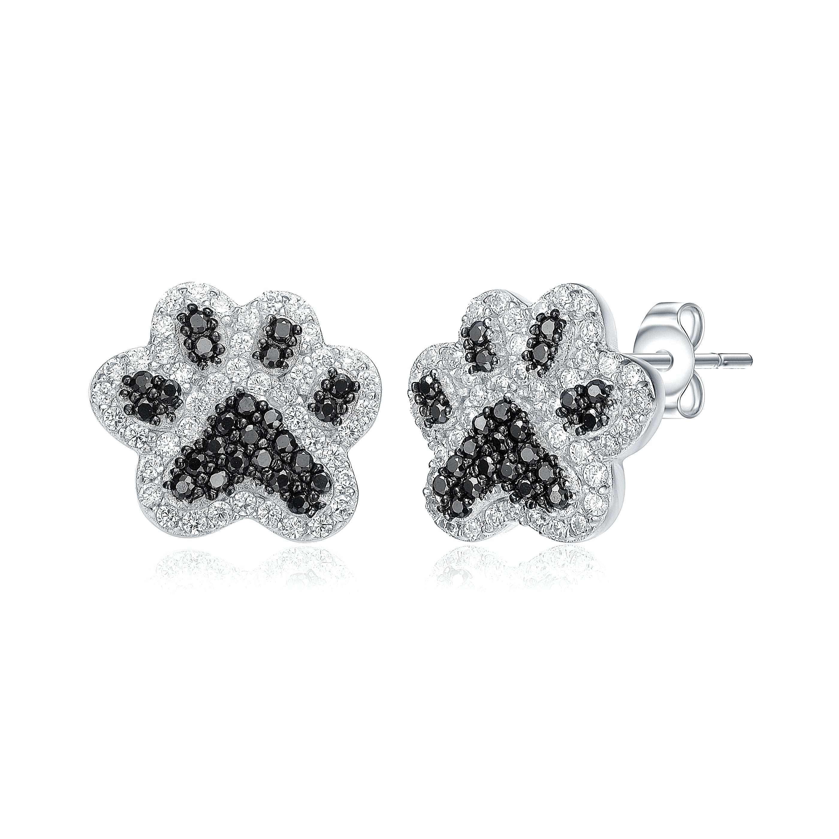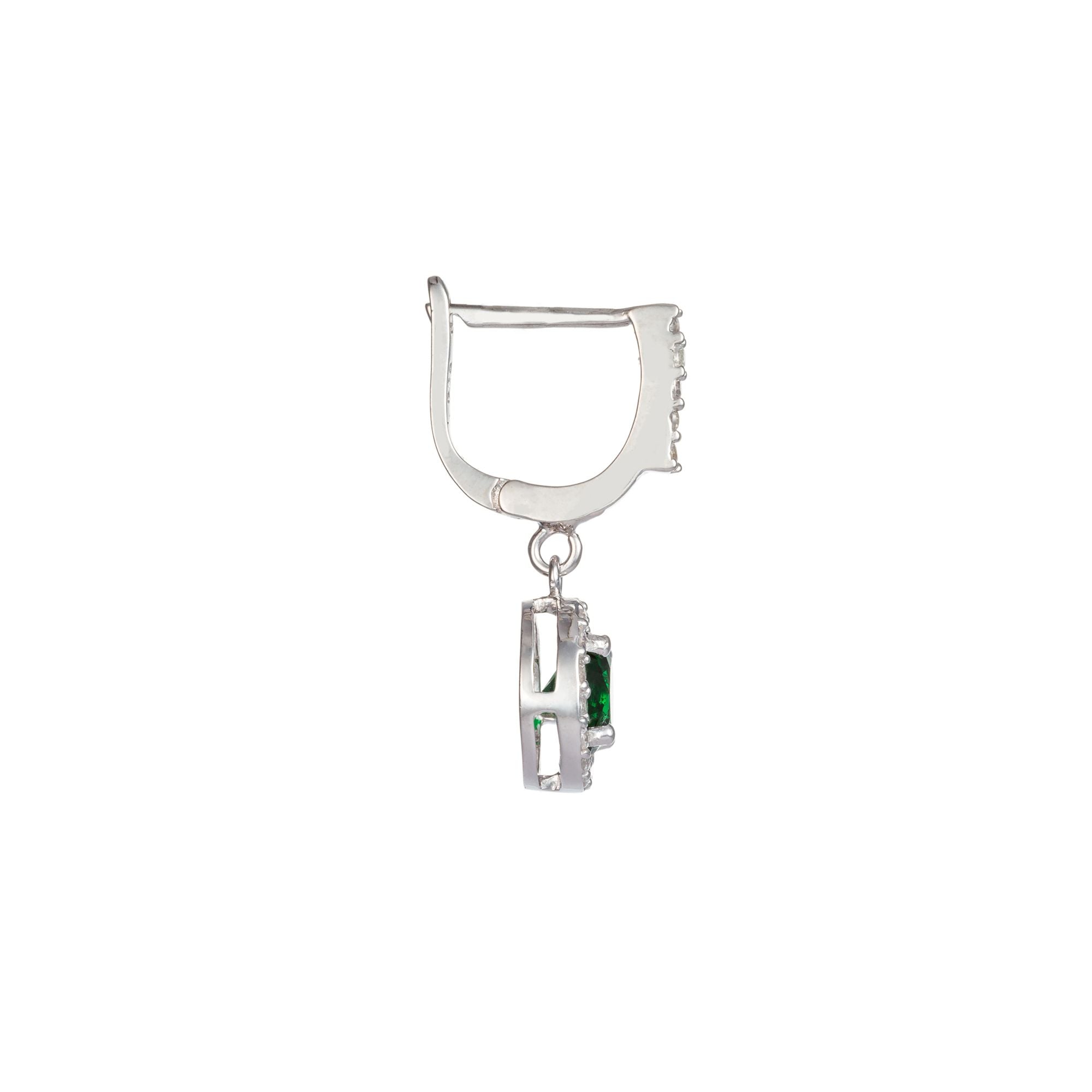 C.Z. Sterling Silver Rhodium Plated Round Emerald Earrings
