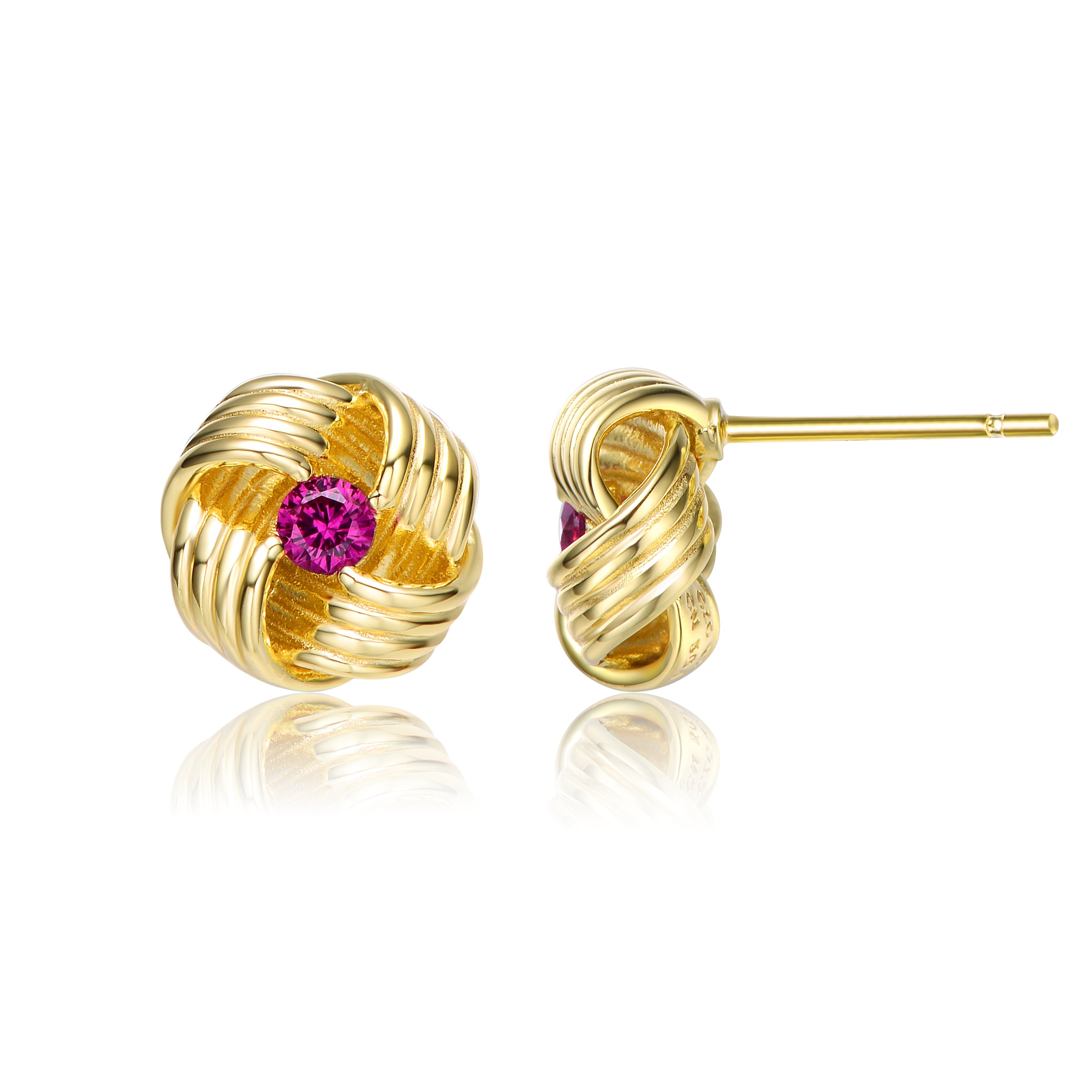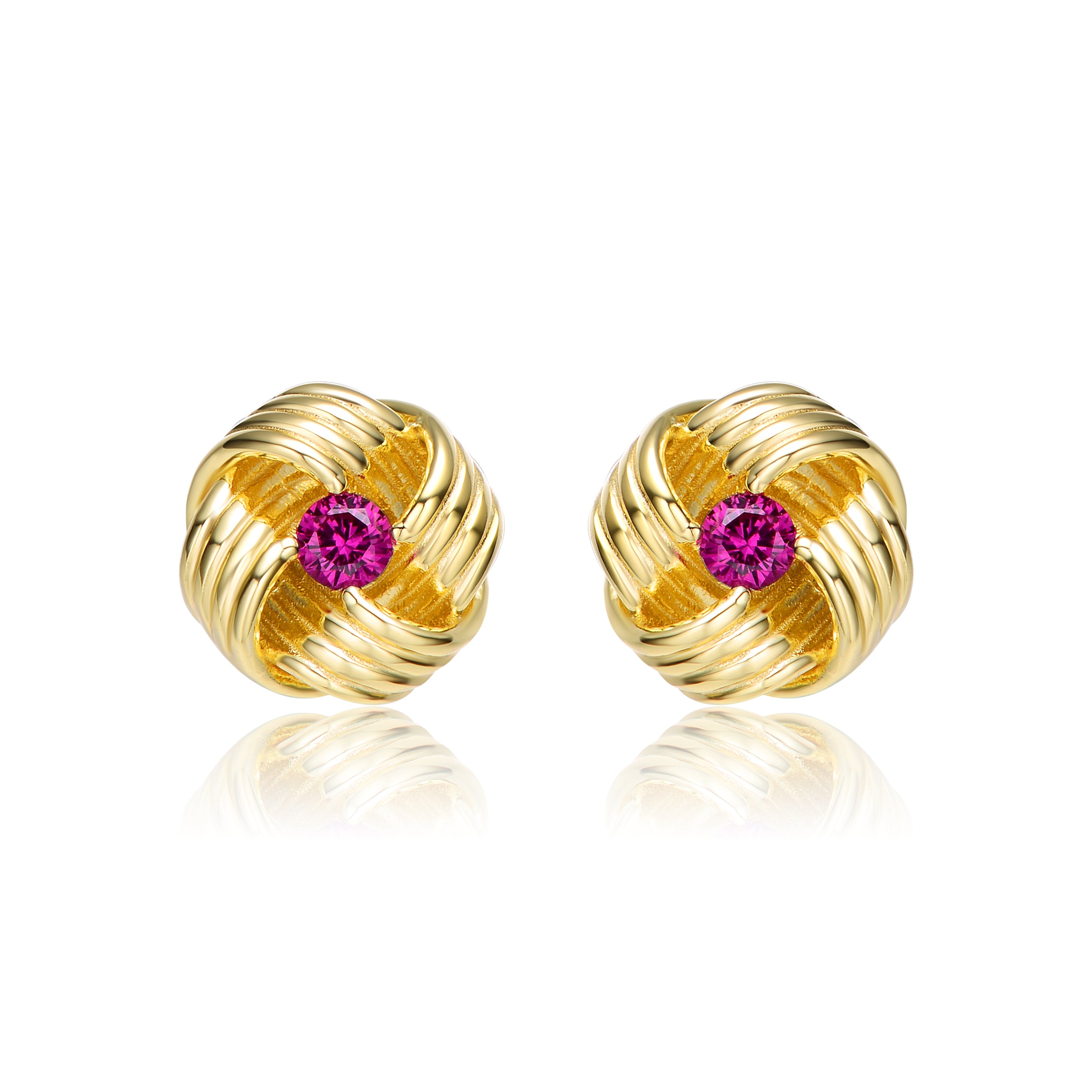Sterling Silver Gold Plated with Pink Cubic Zirconia Leverback Earrings