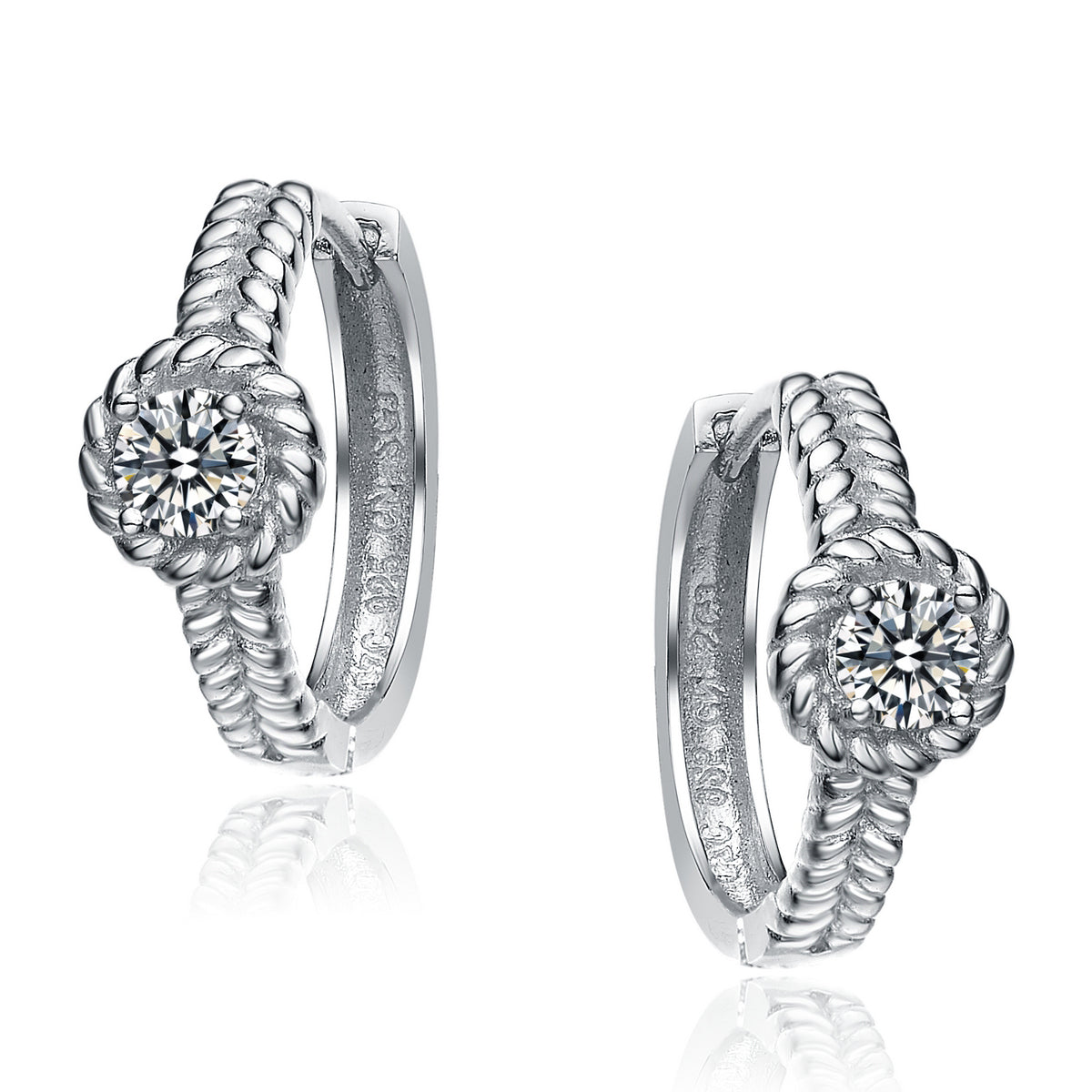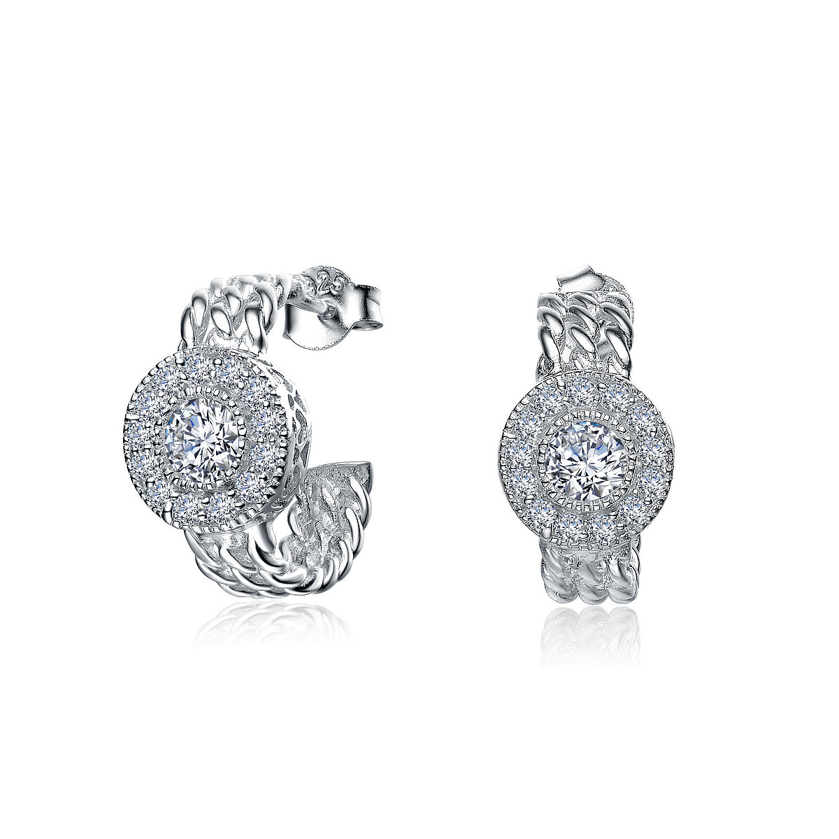 Sterling Silver Cubic Zirconia Cable Hoop Earrings