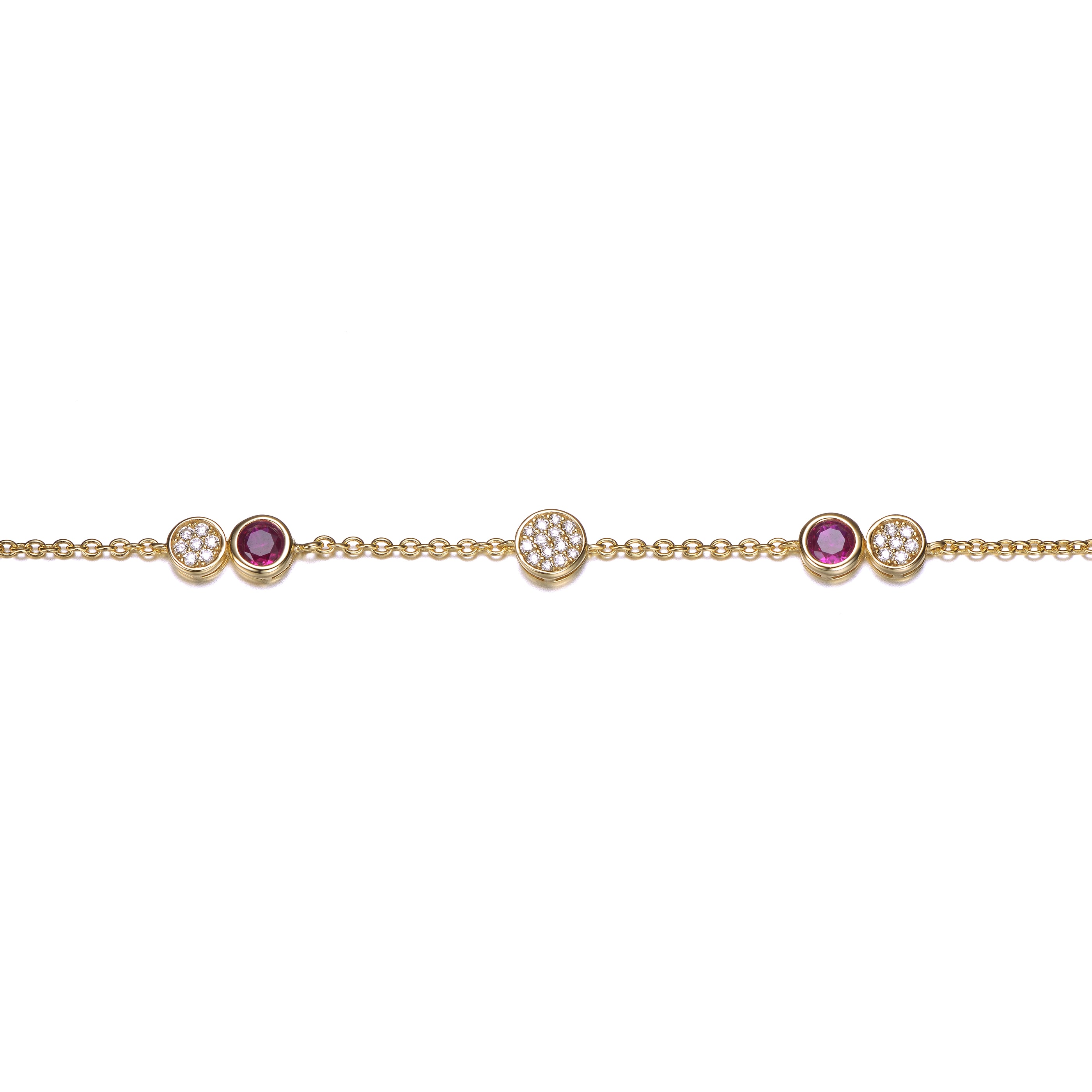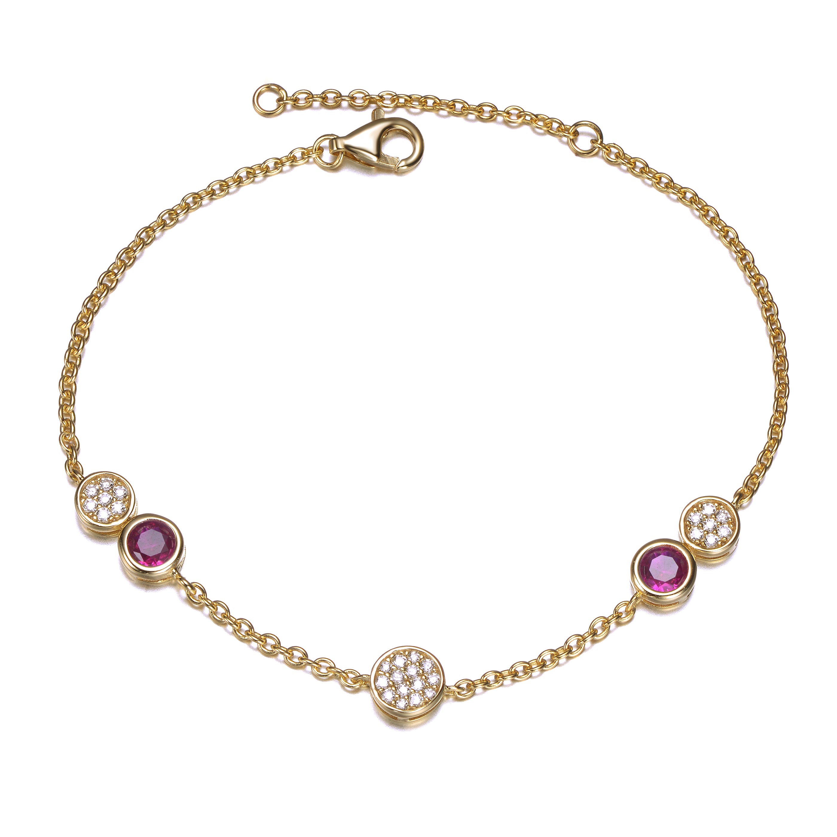 Sterling Silver 14K Gold Plated Bracelet with Ruby Cubic Zirconia Stones