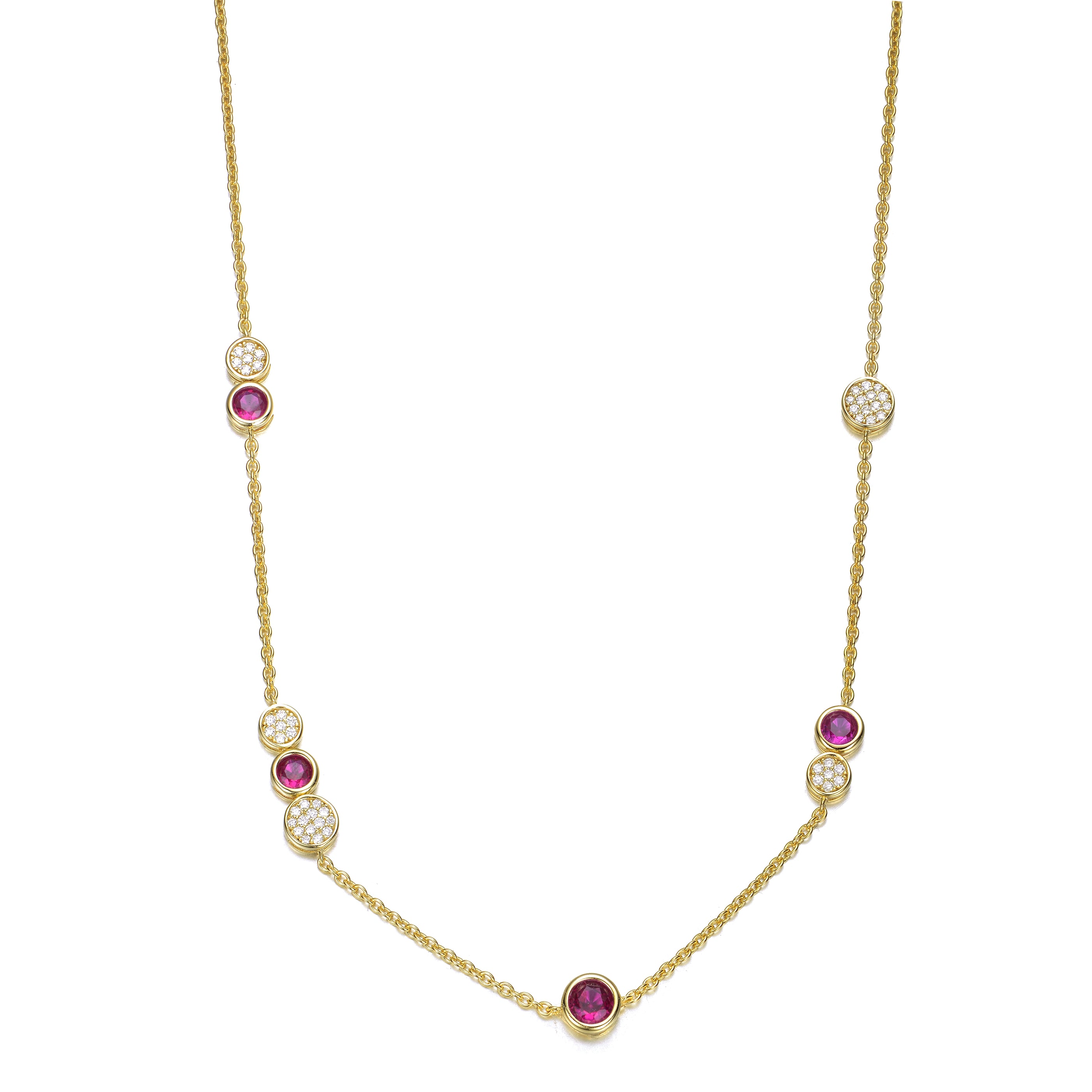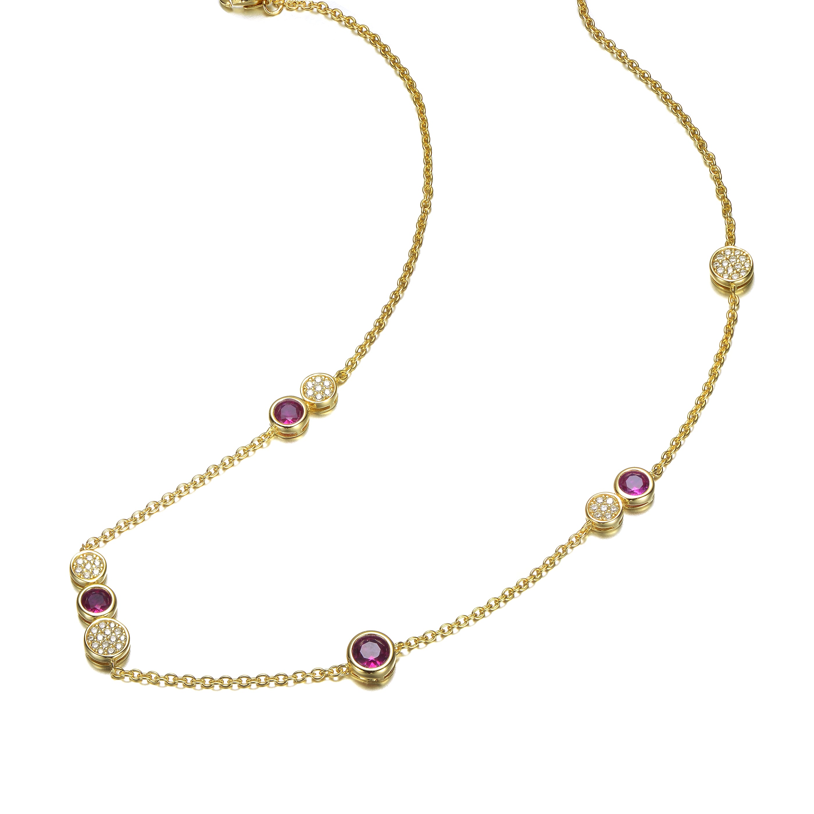 Lovely Ruby and Clear Cubic Zirconia 14K Gold Plated Necklace