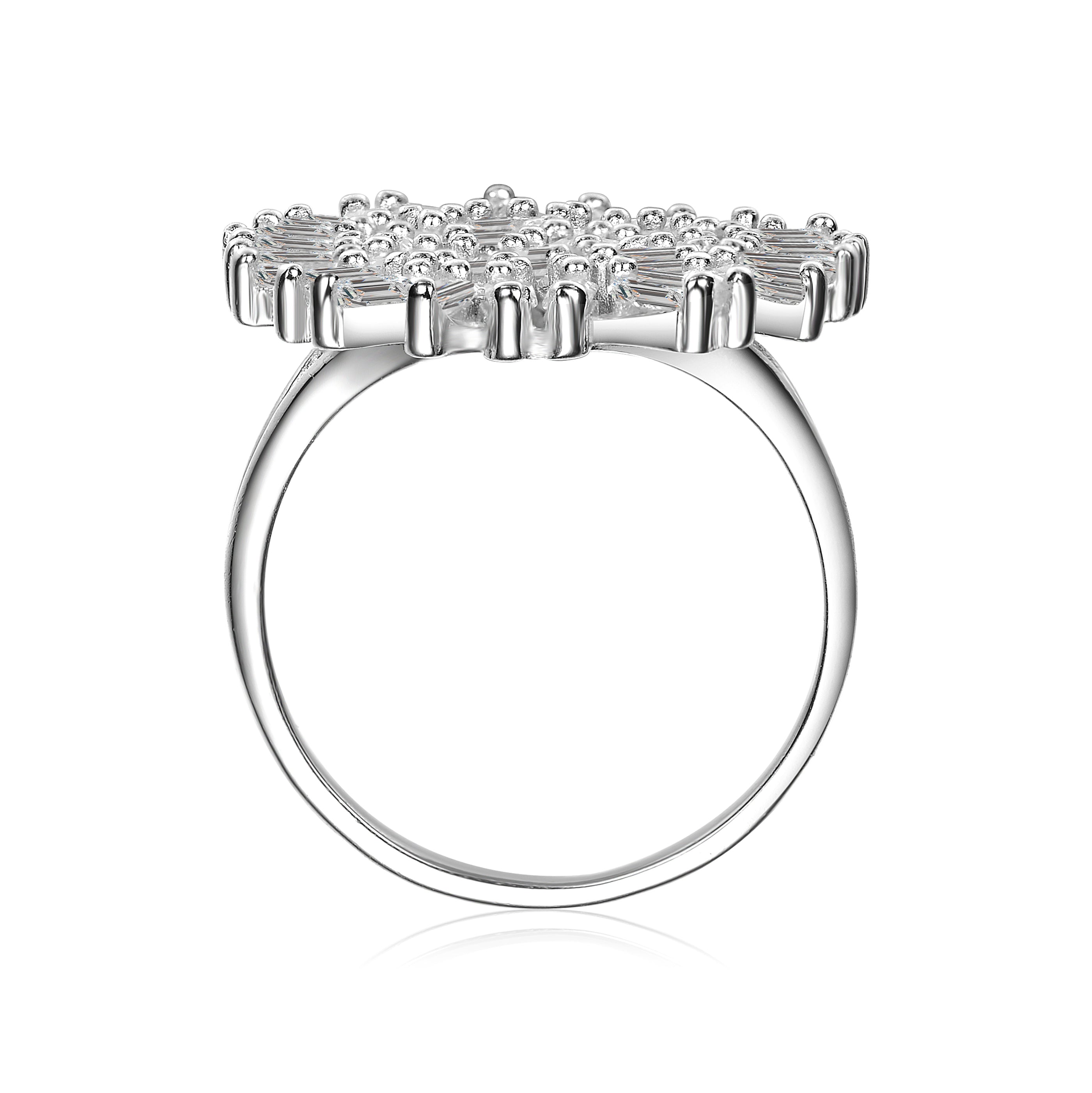 White Cubic Zirconia Flower Shaped Design Sterling Silver Ring