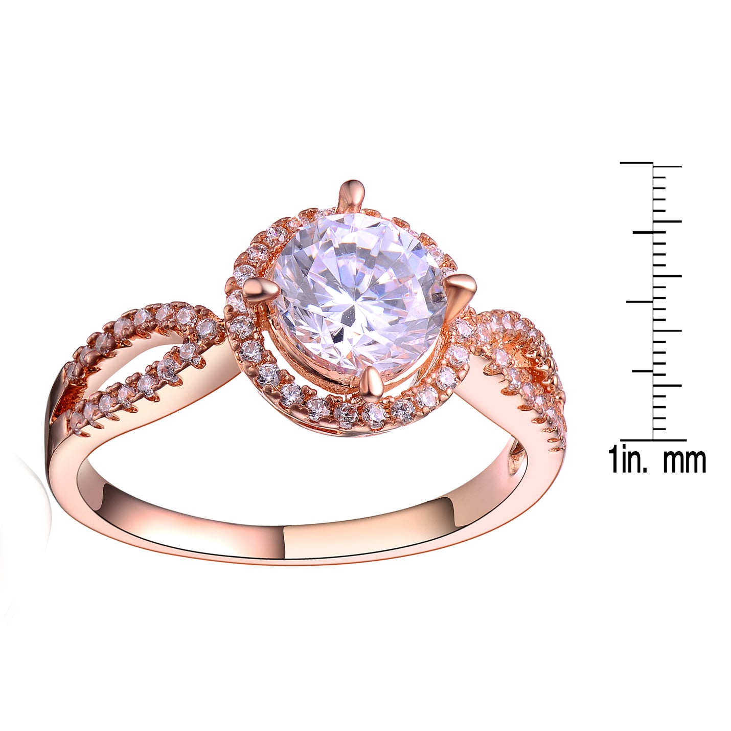 Sterling Silver White Cubic Zirconia Rose Plating Clear Ring