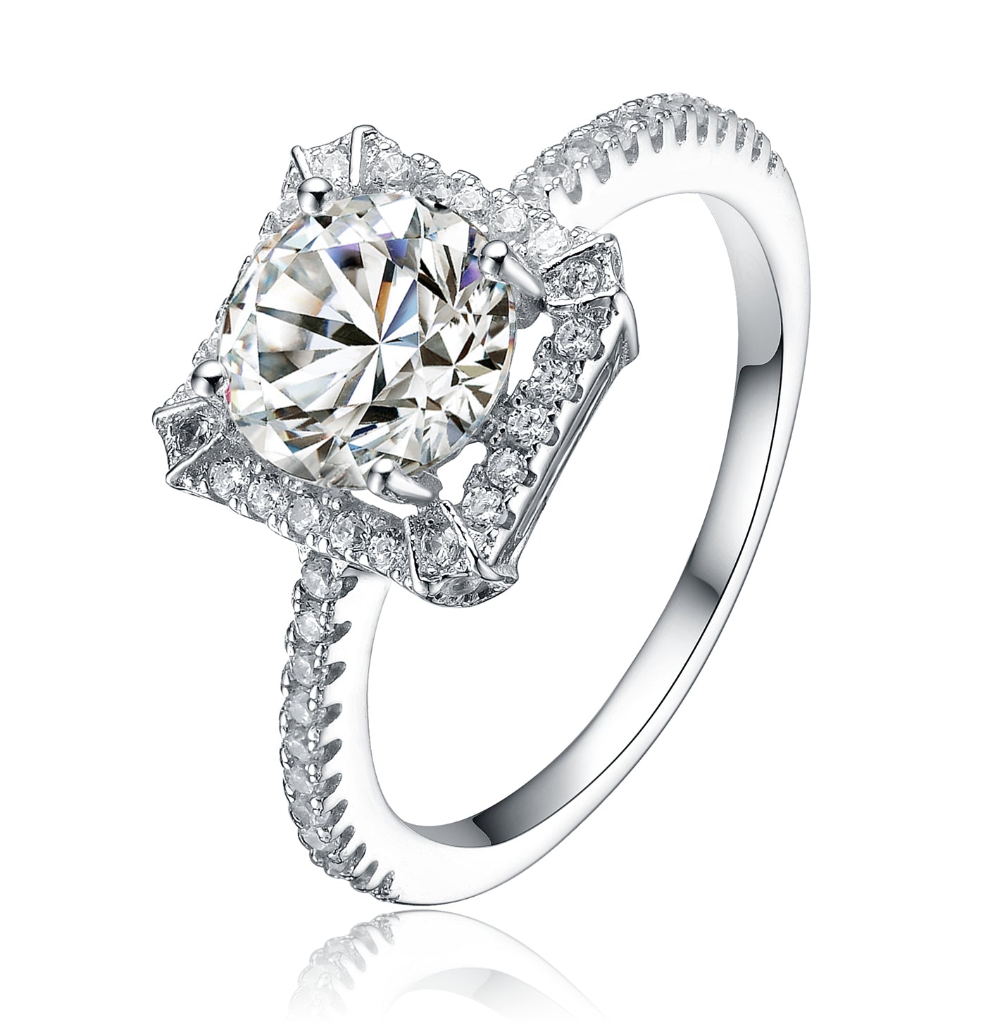 CZ Sterling Silver Rhodium Plated Fancy Square Ring