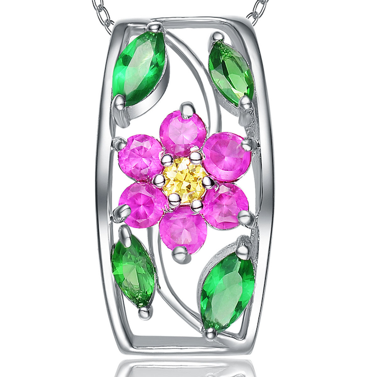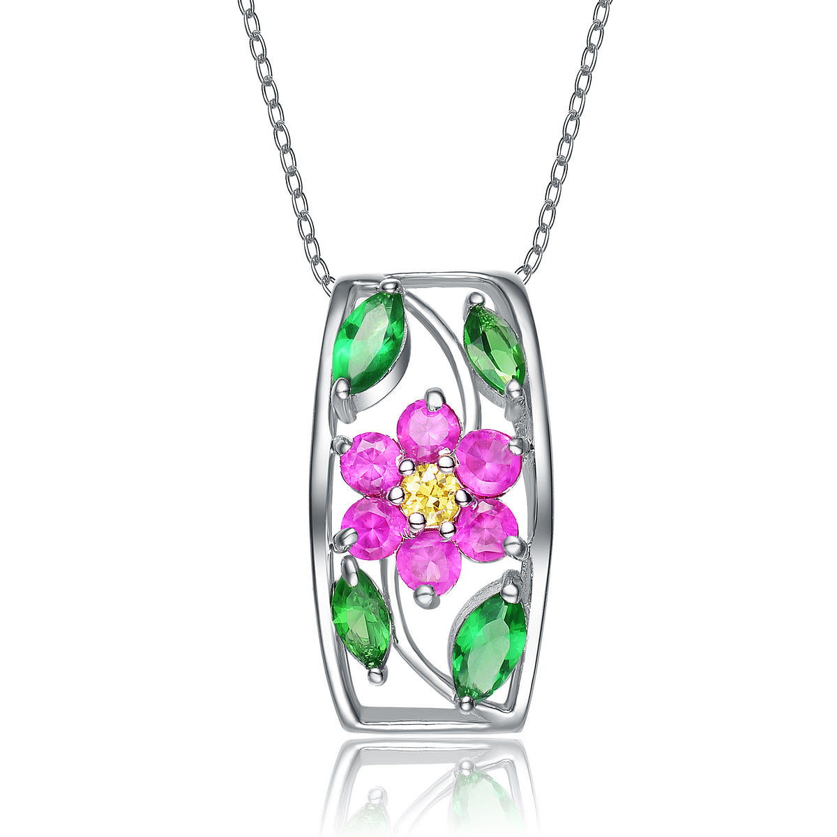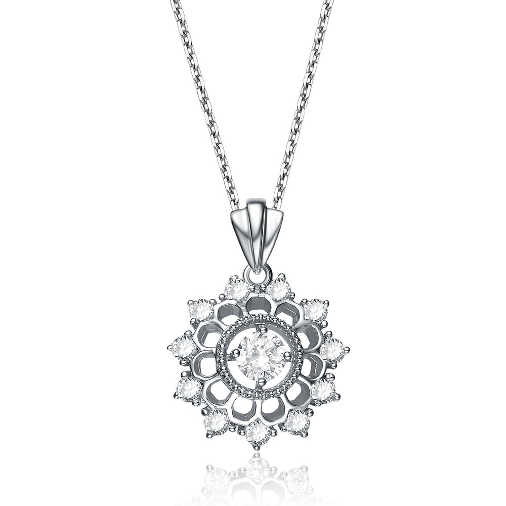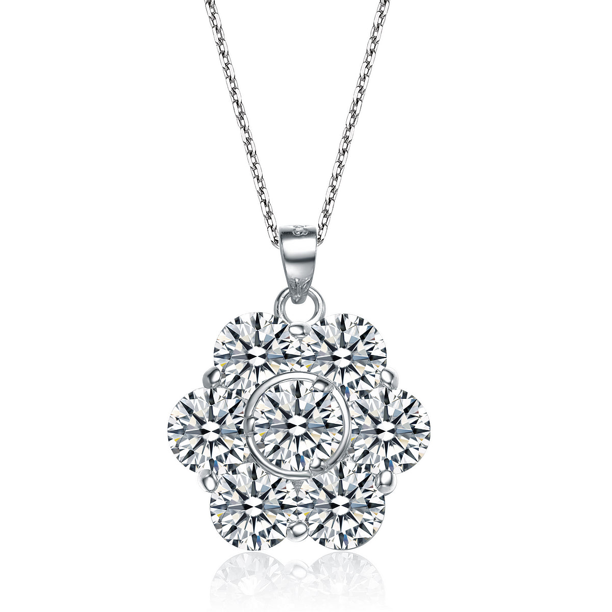 Sterling Silver Cubic Zirconia Flower Shape Necklace