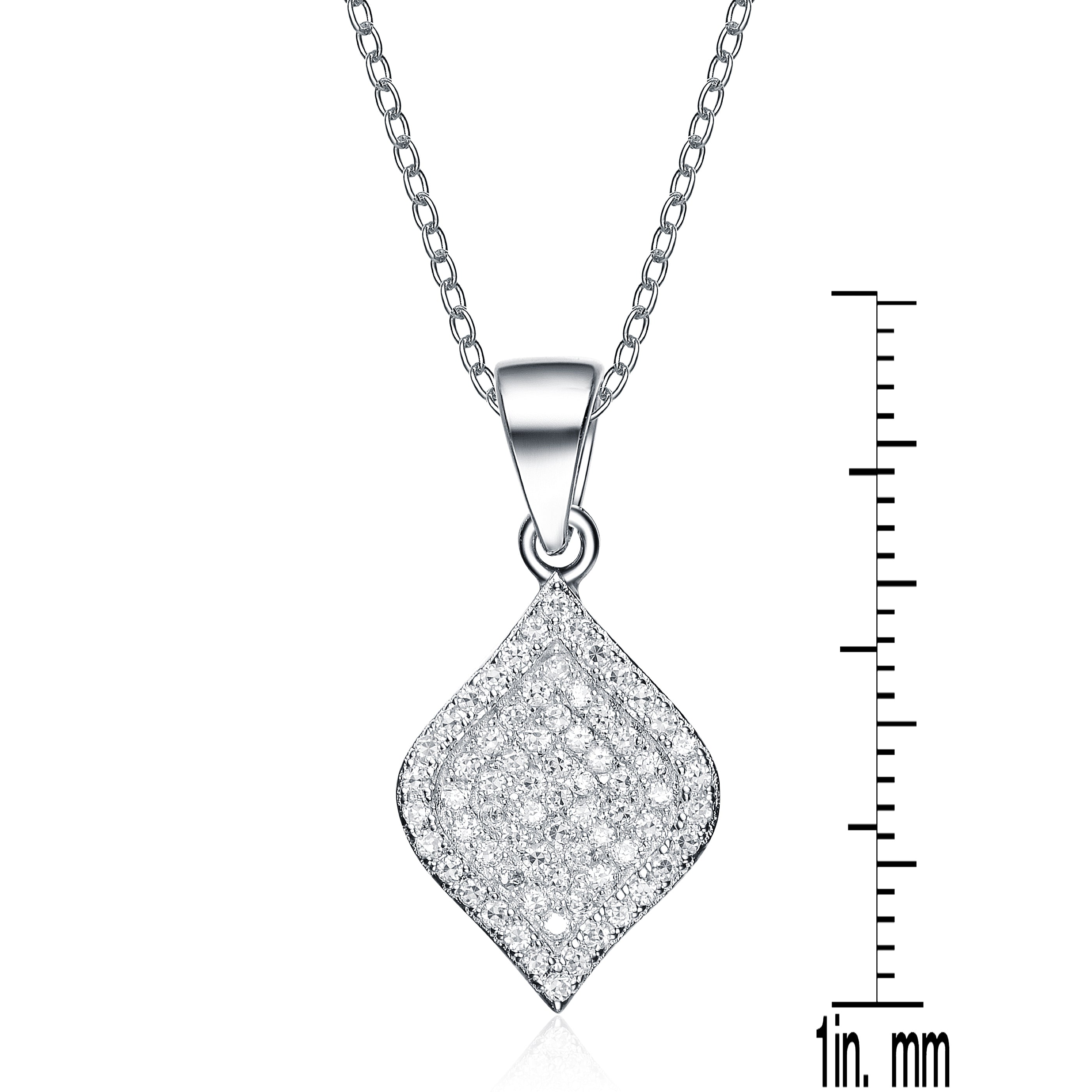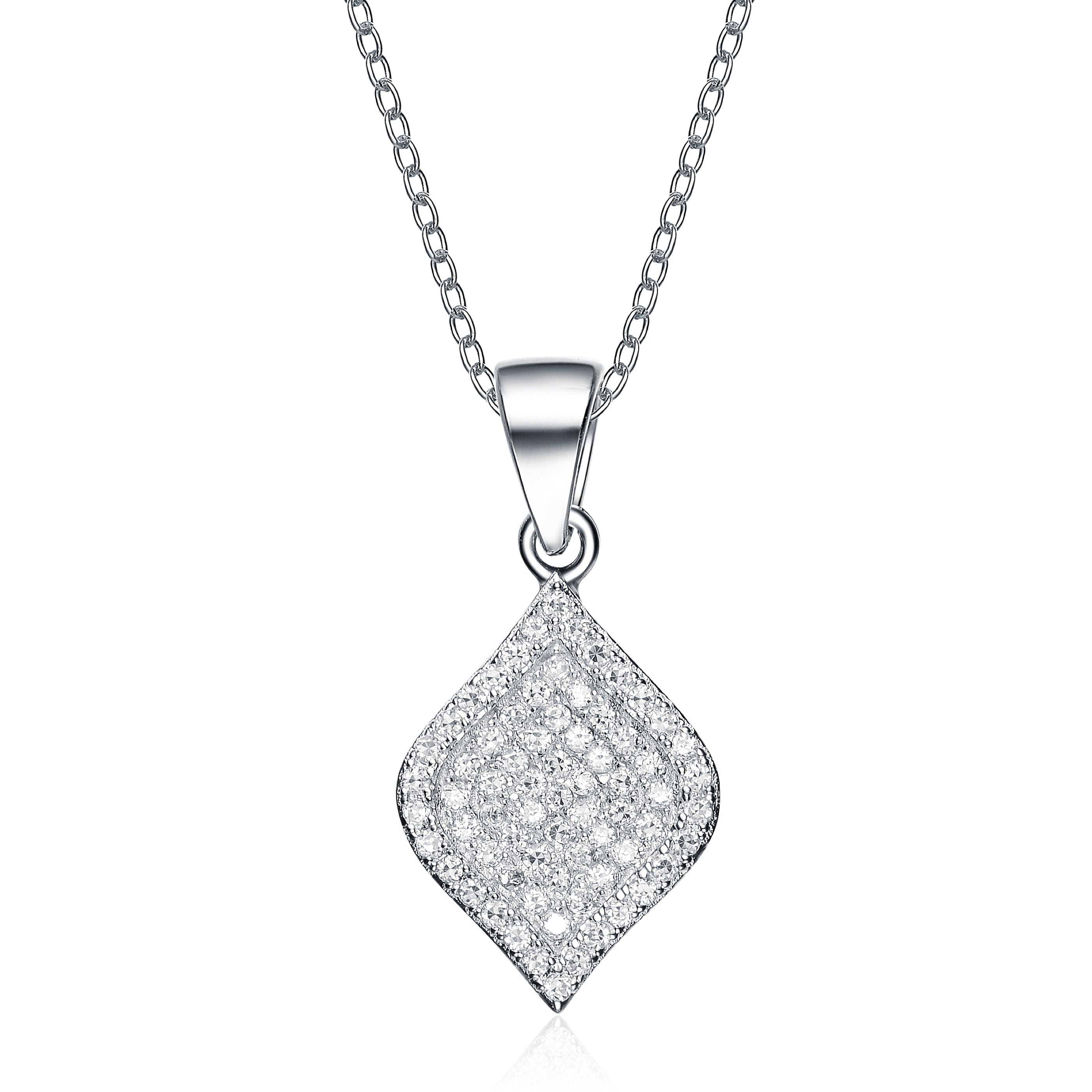 Cubic Zirconia Sterling Silver Rhodium Plated Shape Swirl Design Drop Pendant