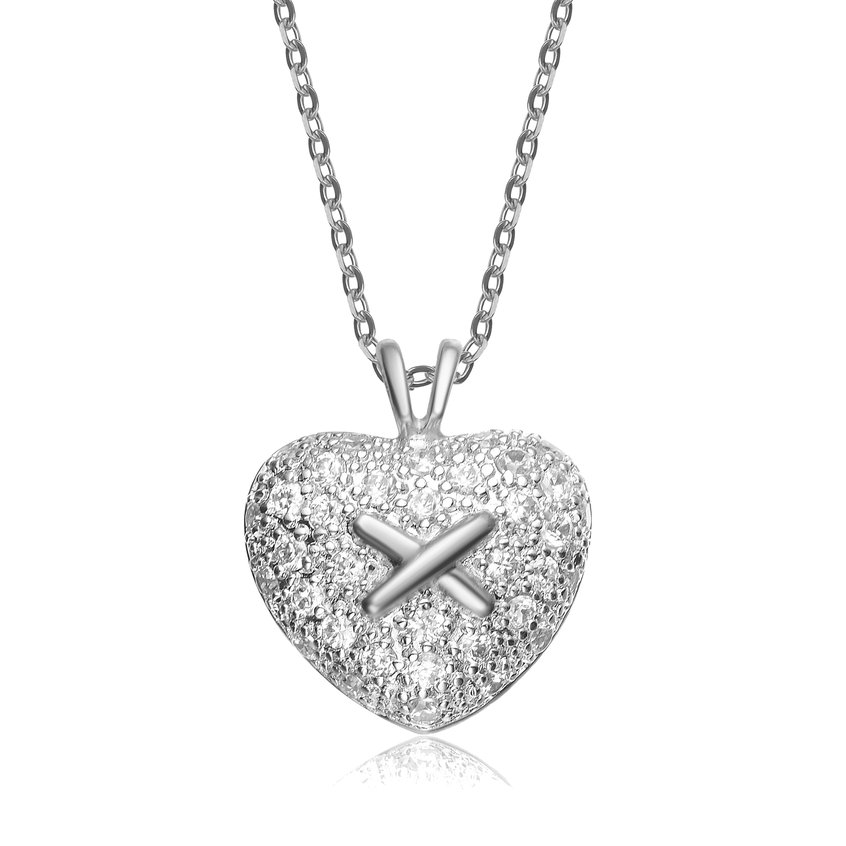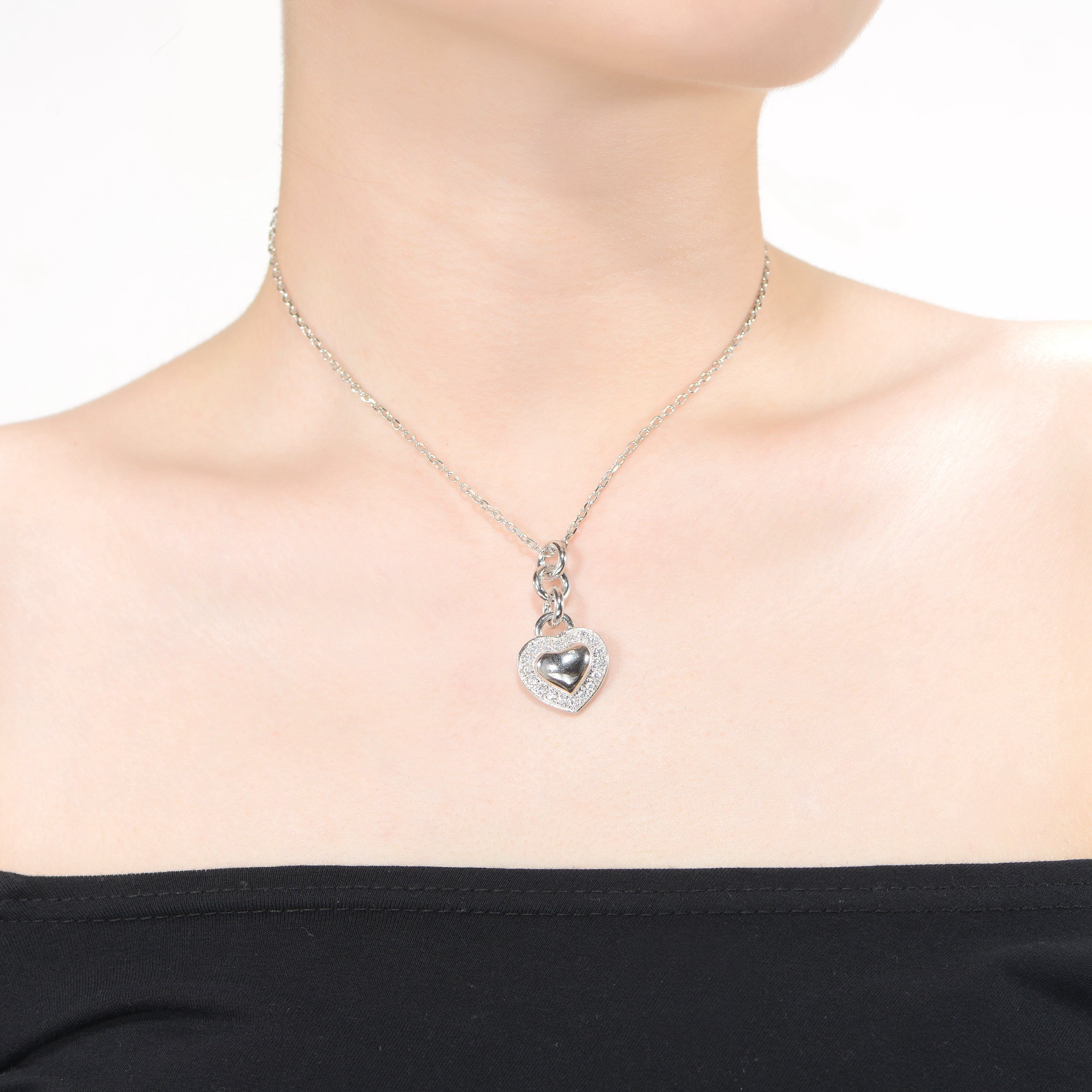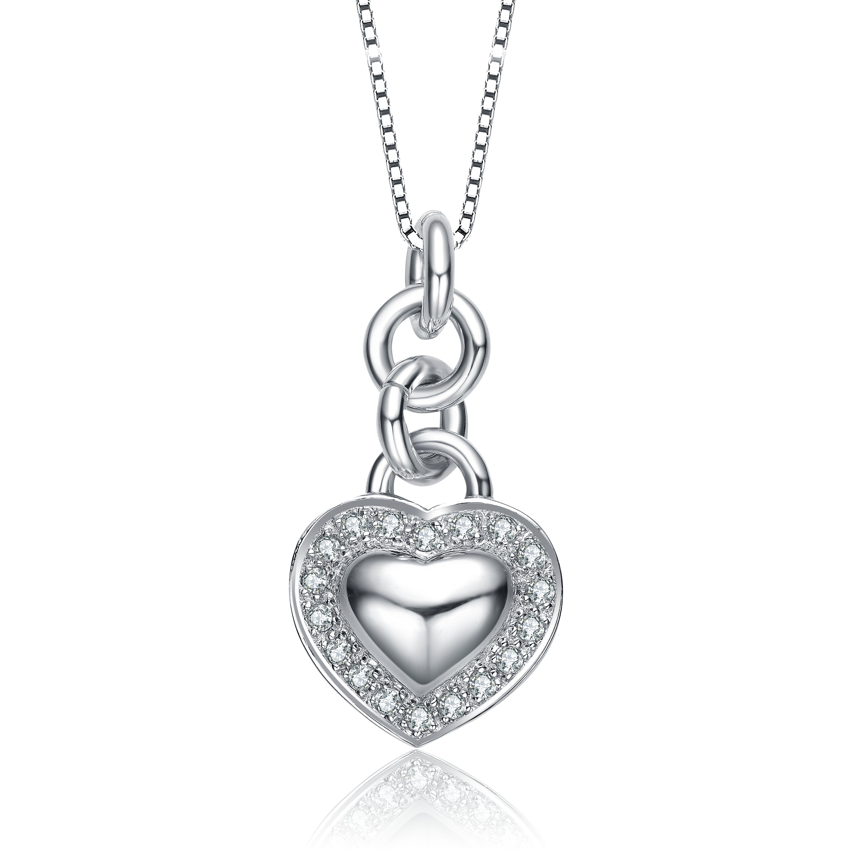 Sterling Silver Rhodium-Plated Heart Pave-Set CZ Pendant