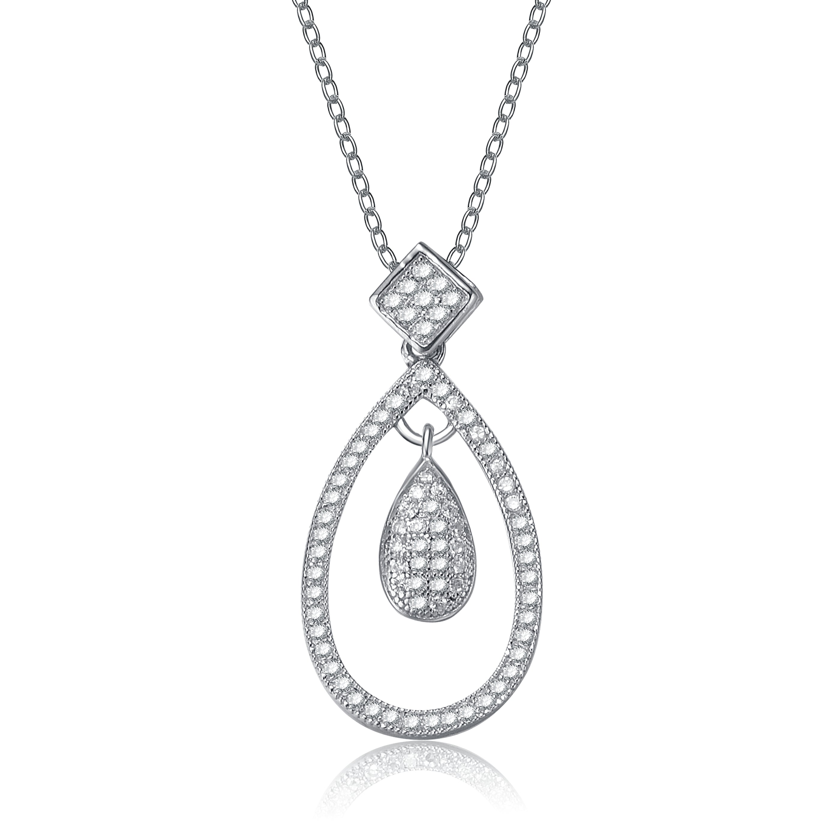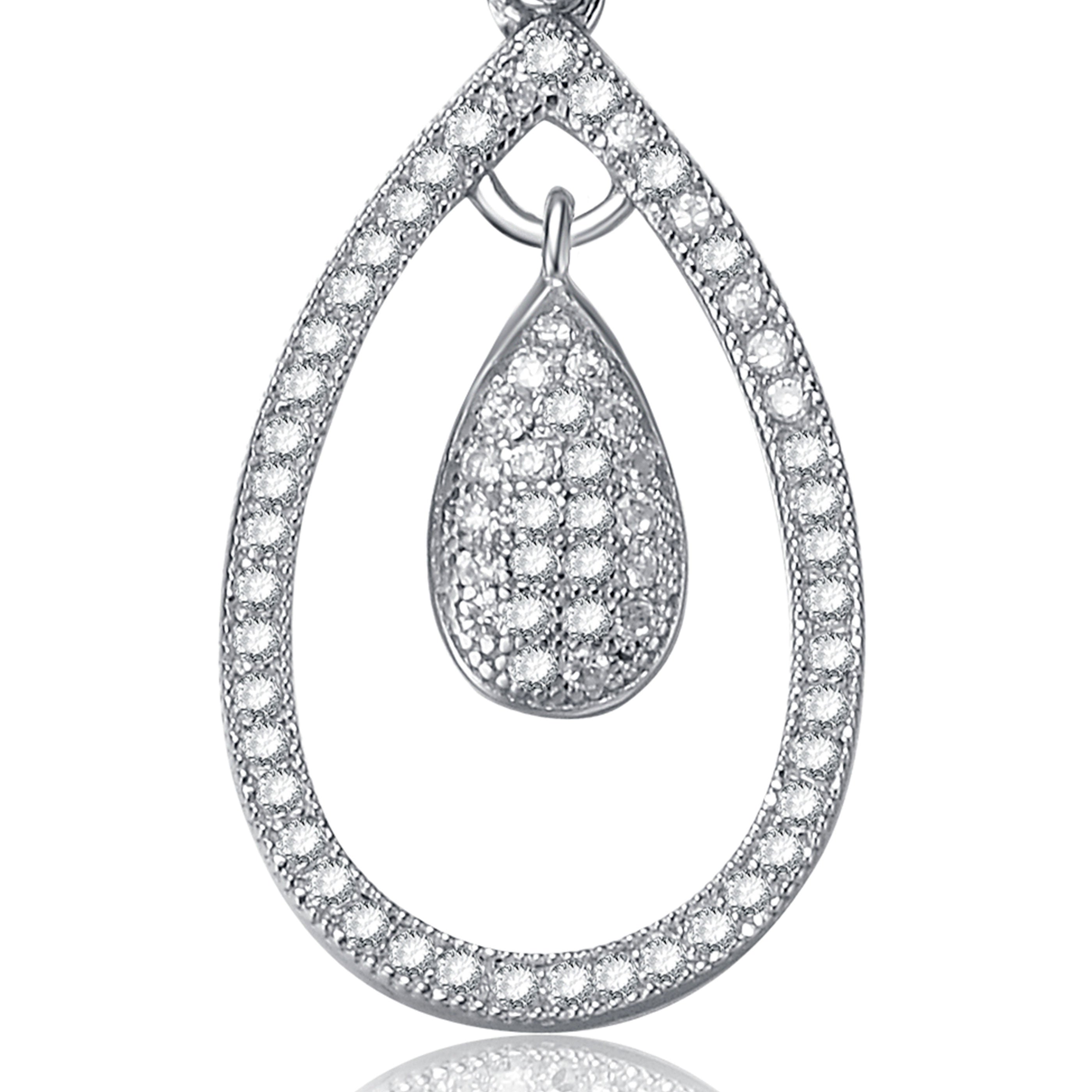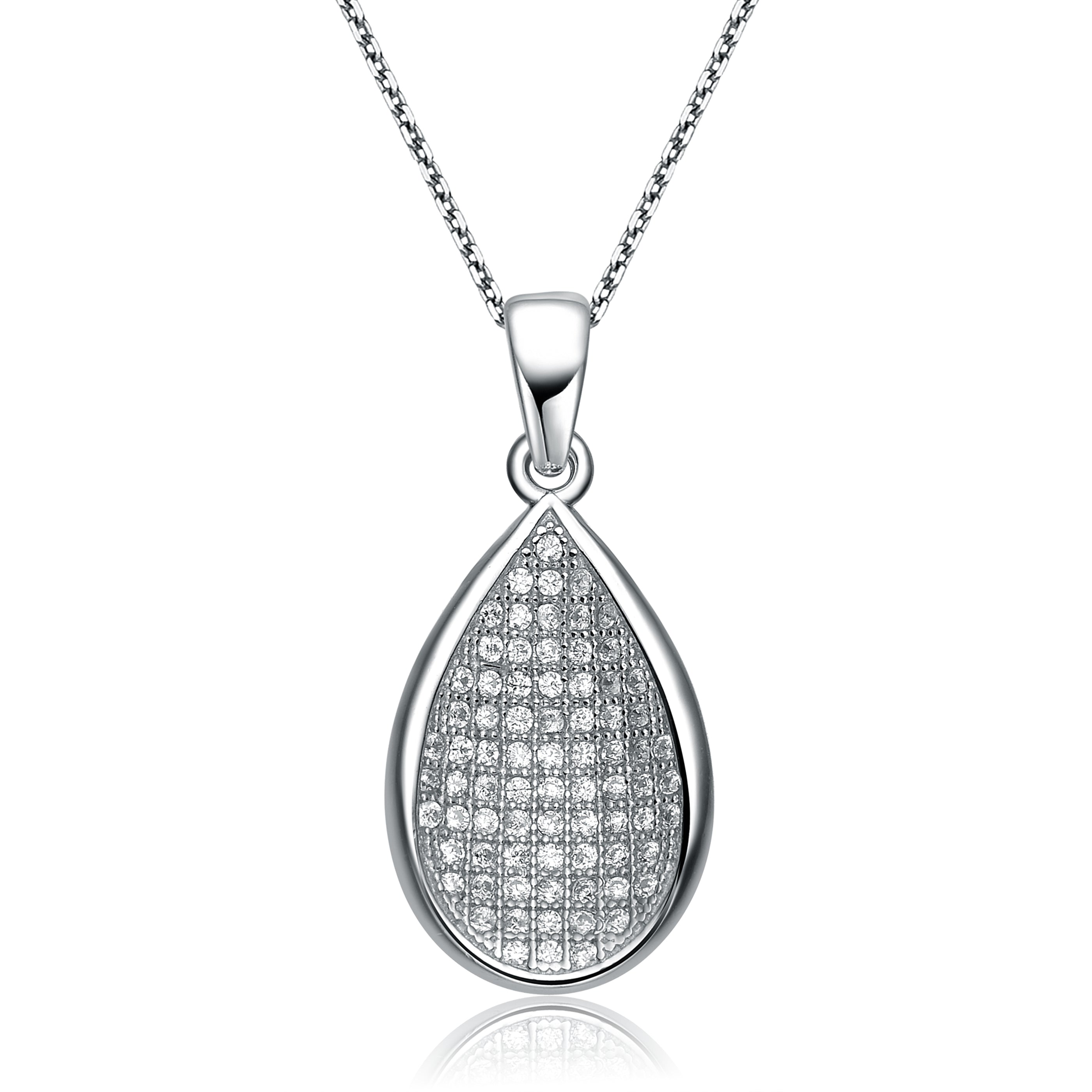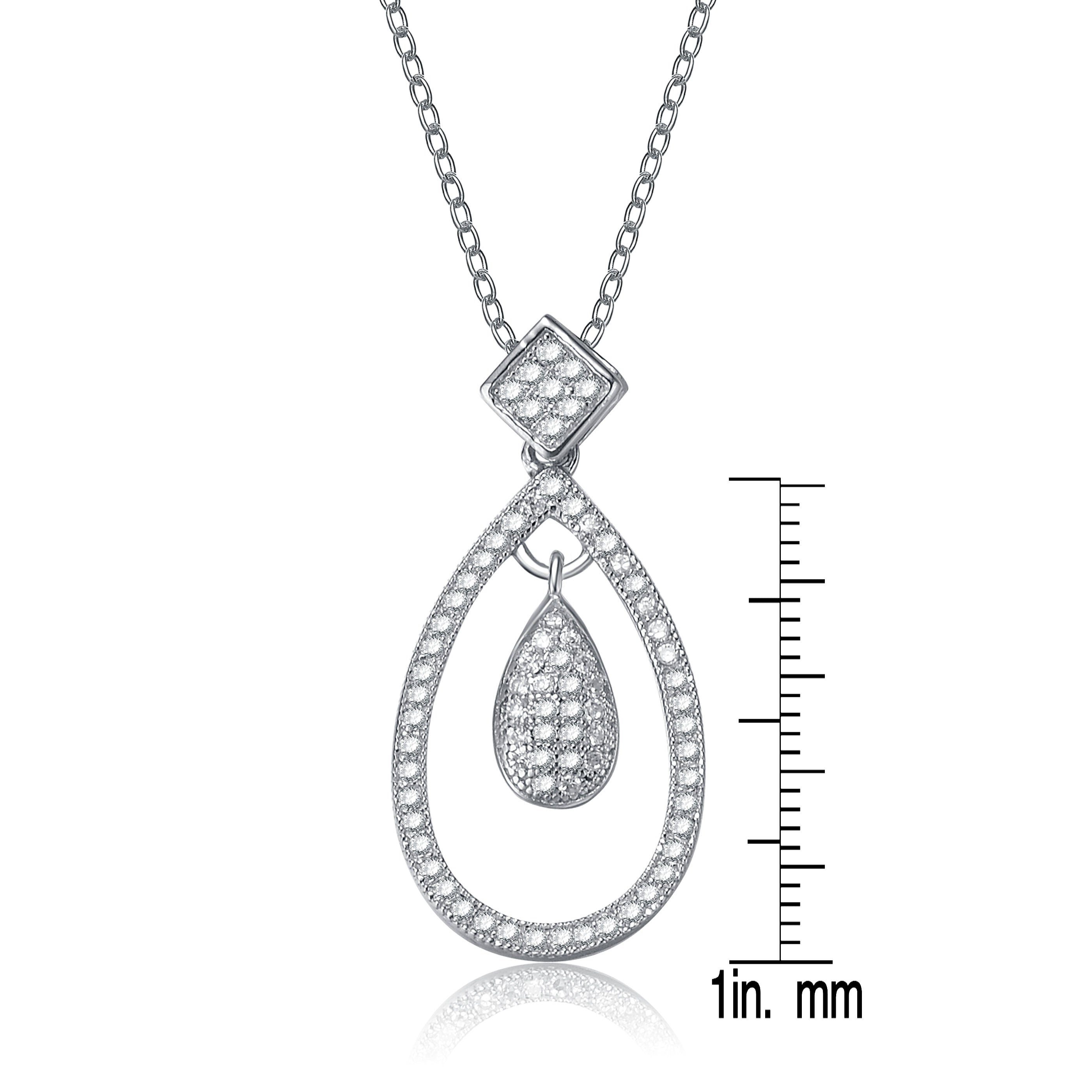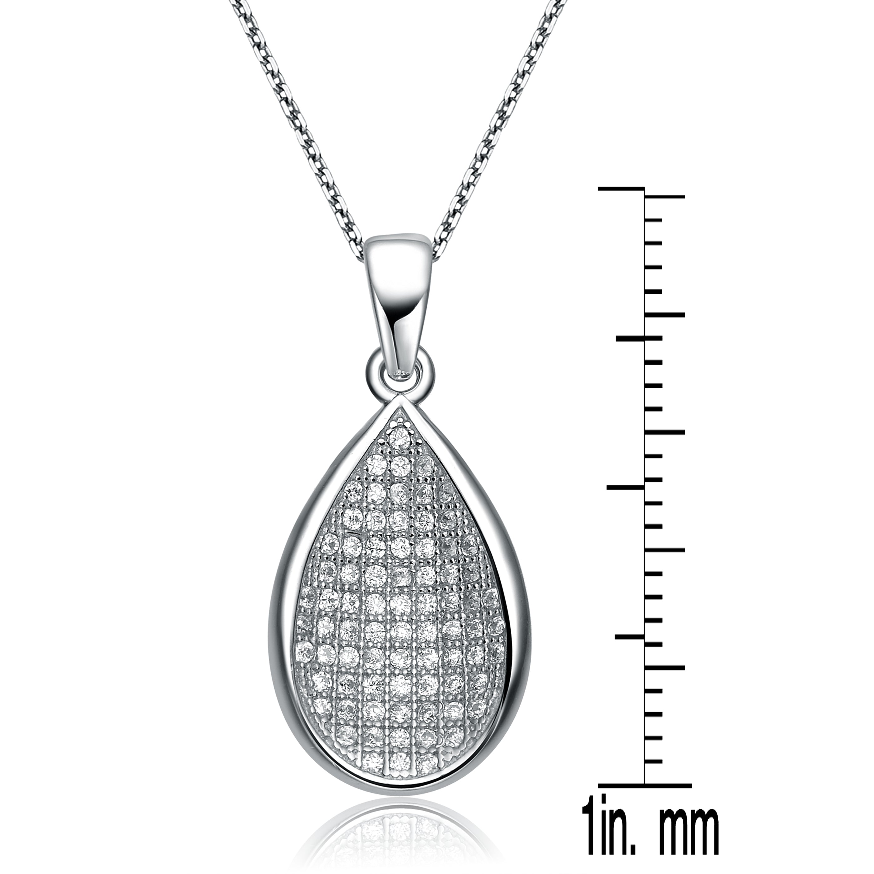 Cubic Zirconia Sterling Silver Rhodium Plated Micro Pave Teardrop Pendant