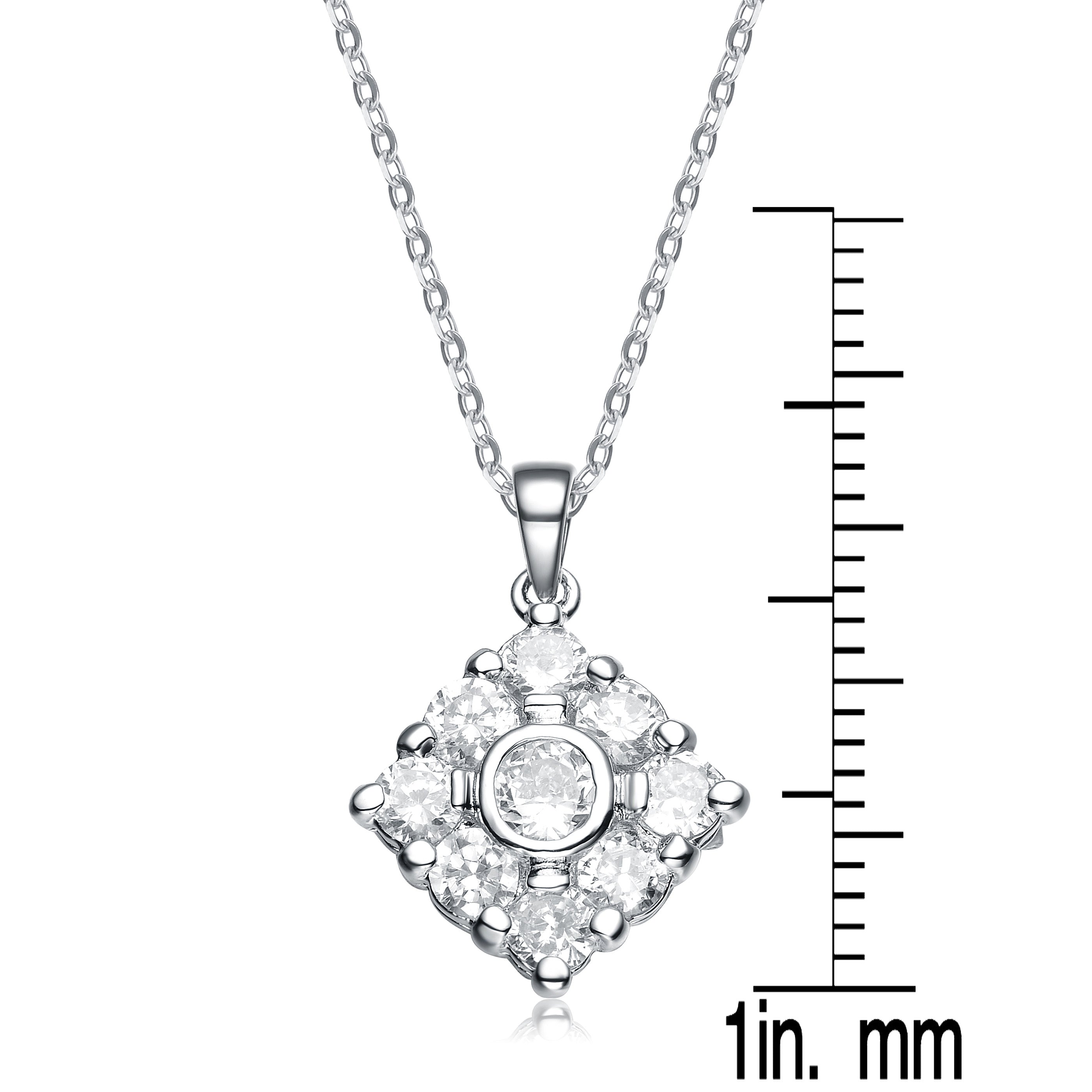 Sterling Silver Cubic Zirconia Framed Flower Necklace