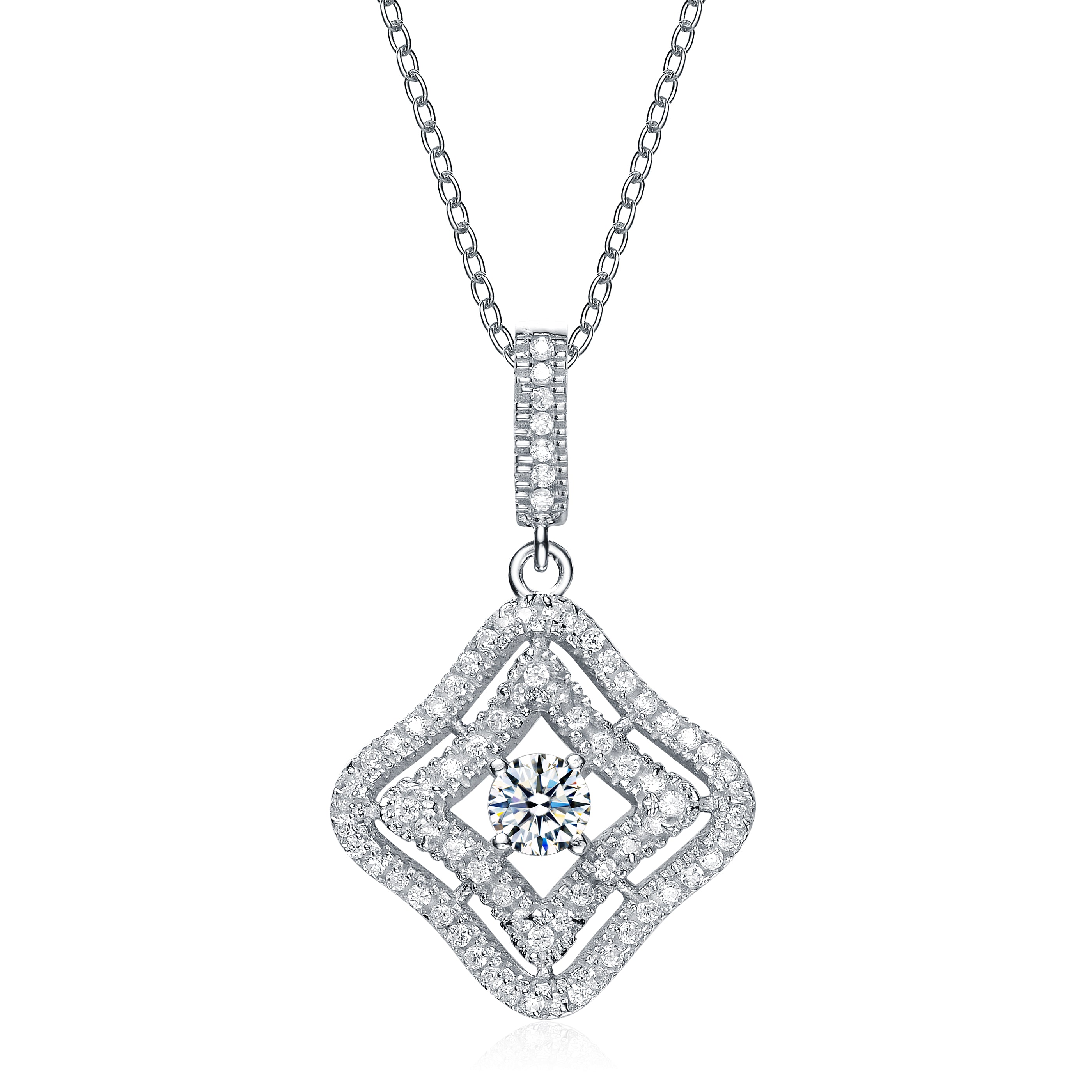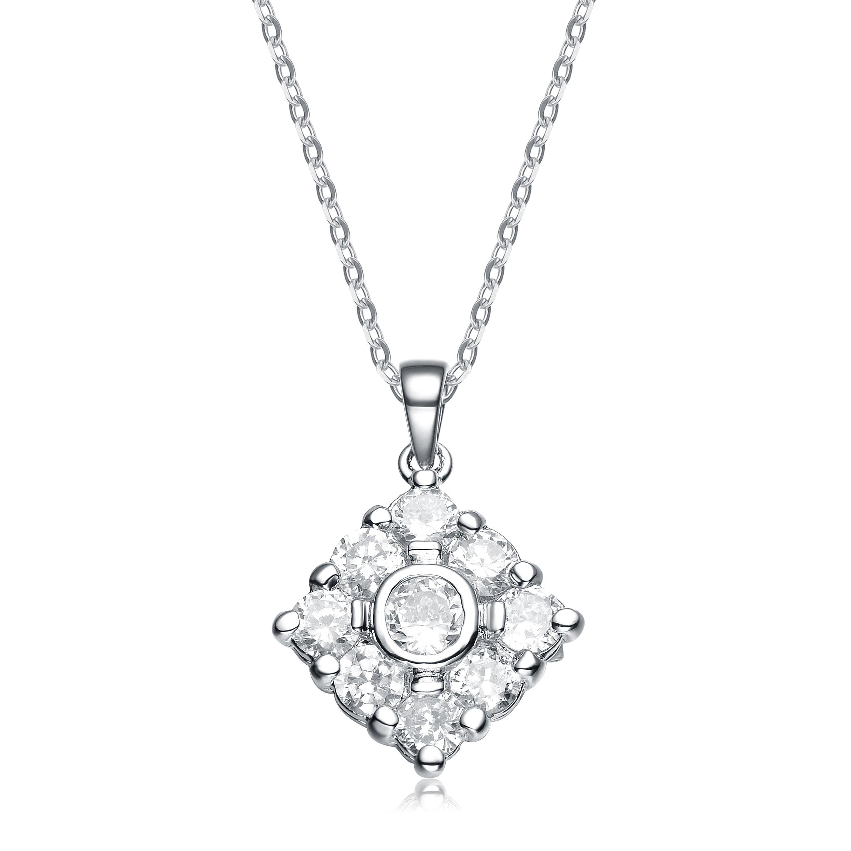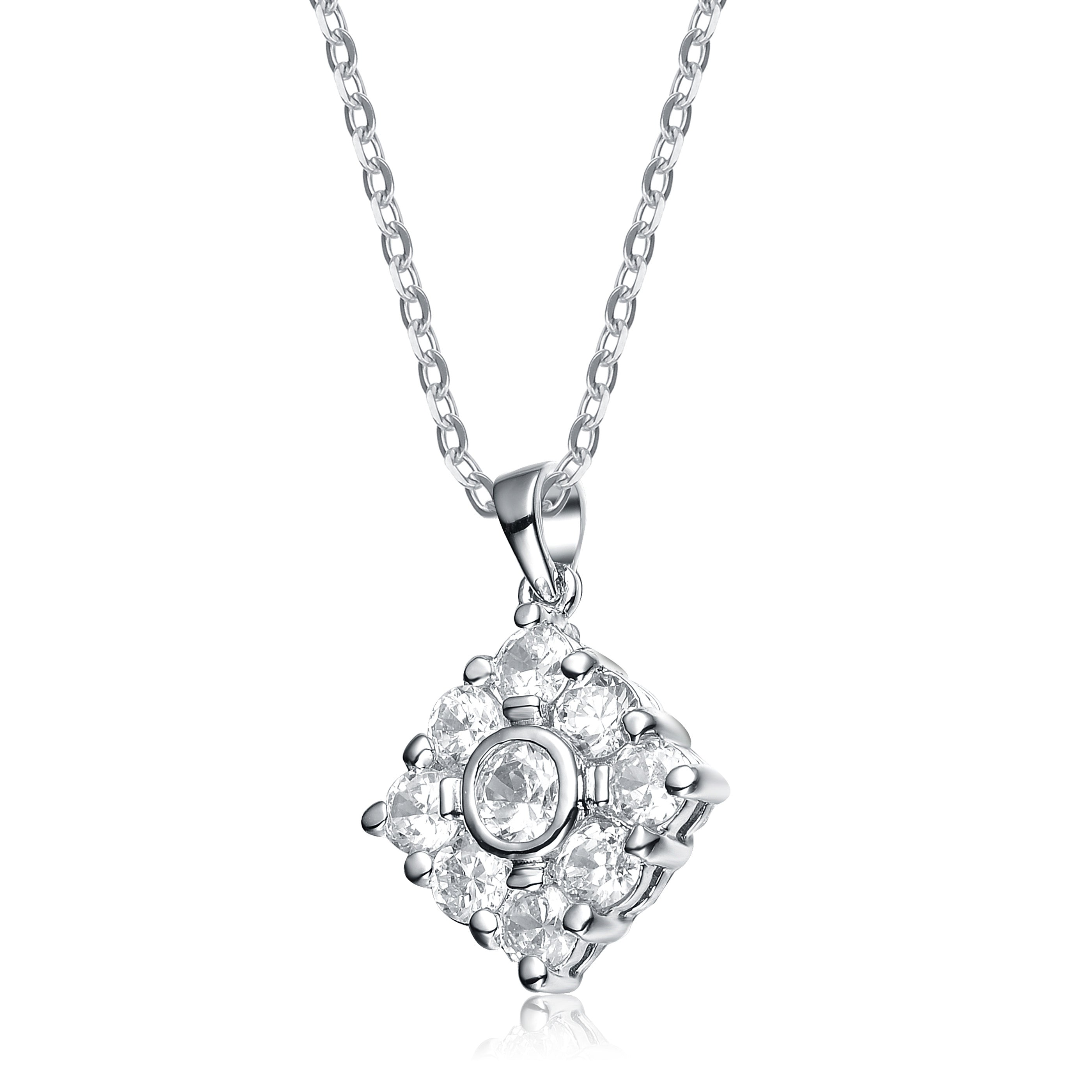 Sterling Silver Rhodium Cubic Zirconia Sqaure Shaped Pendant