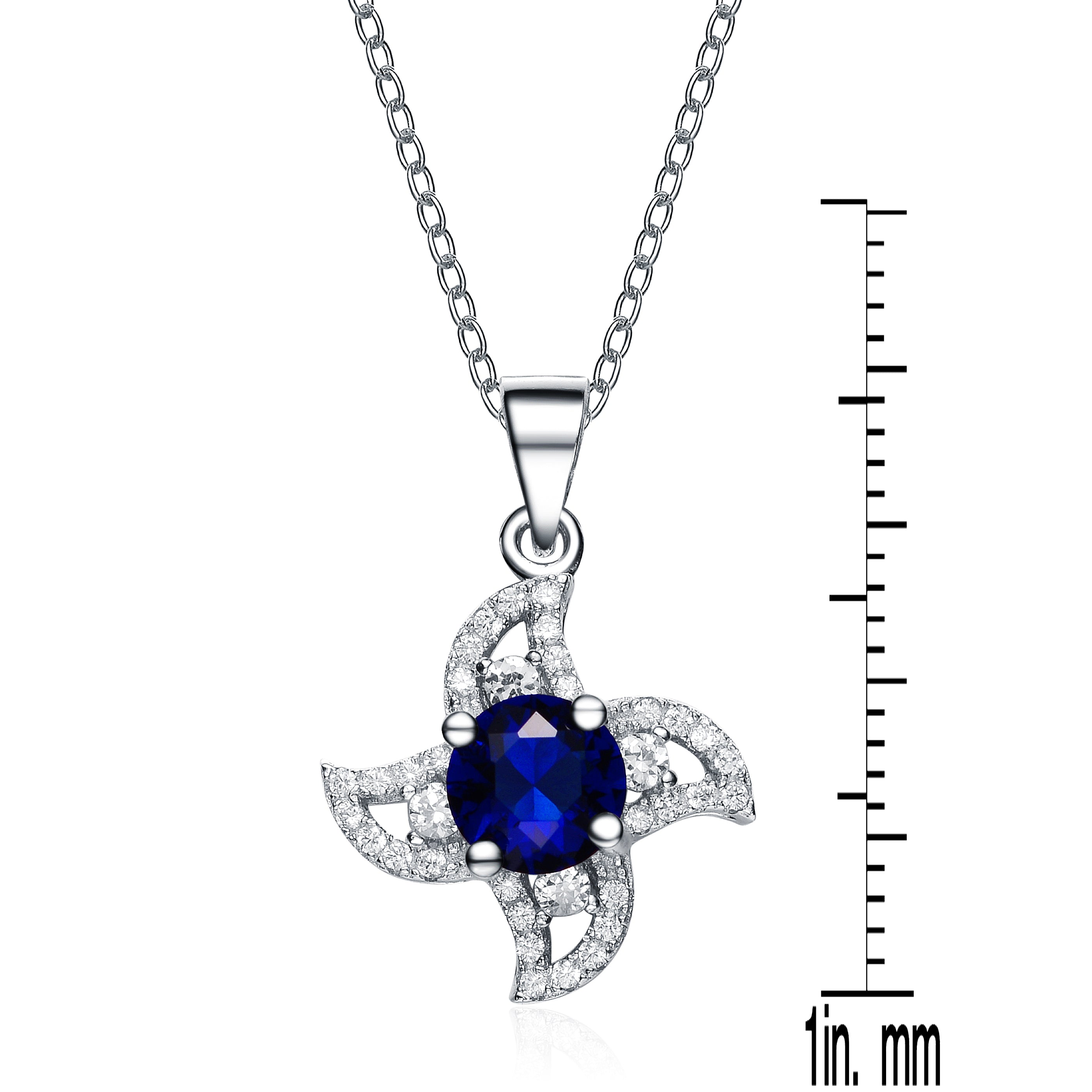 CZ Sterling Silver Rhodium Plated Sapphire Flower Designed Pendant