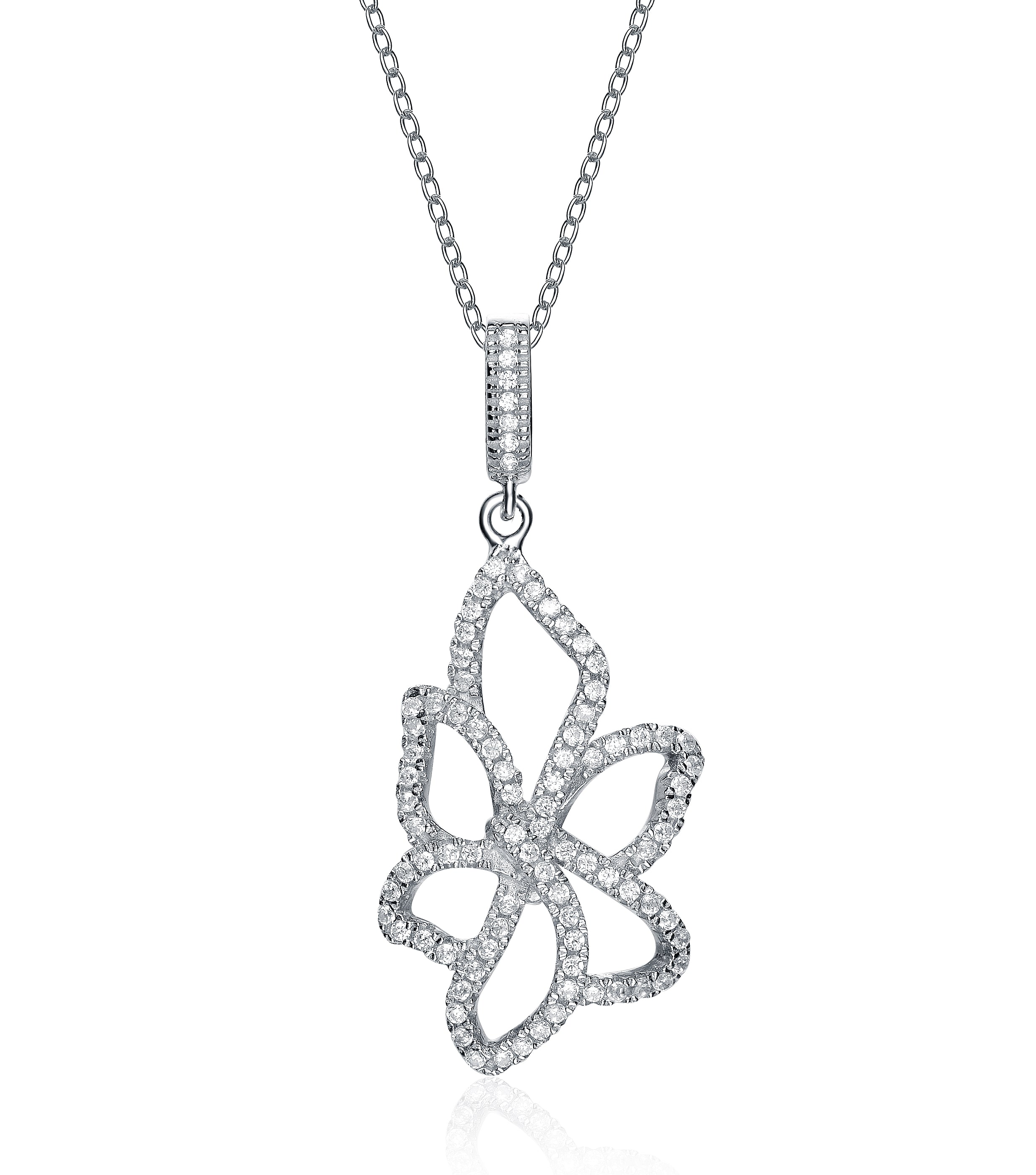 Sterling Silver Cubic Zirconia Open Flower Necklace