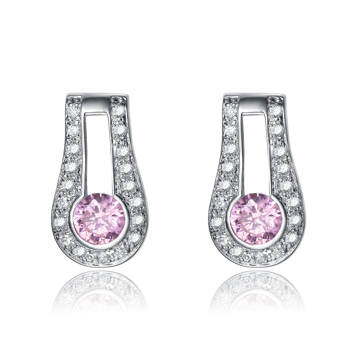 Dauphine Pink Mirror Oval Stud Earrings