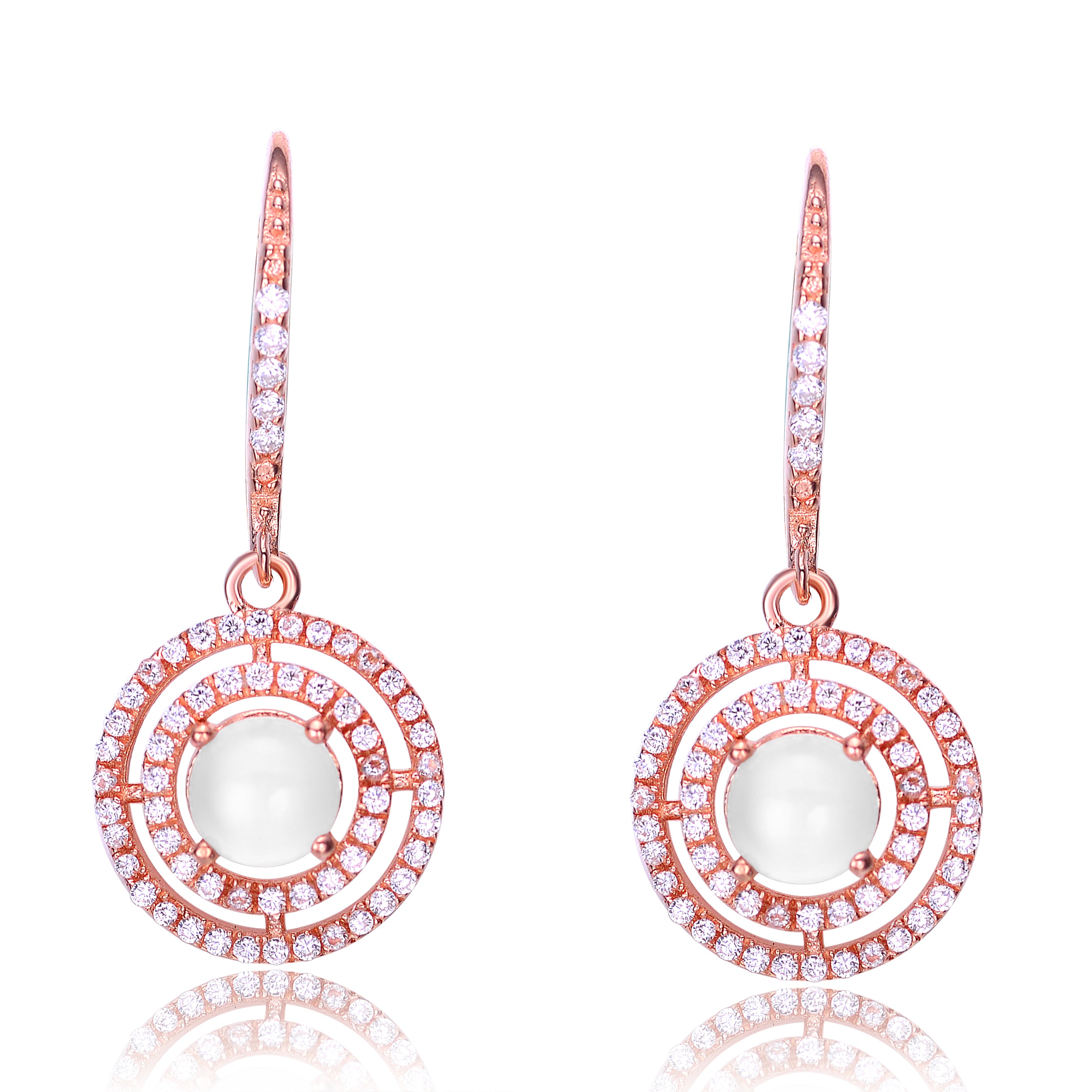 14k Gold Plated Sterling Silver with Mother of Pearl & Cubic Zirconia Hexagon Dangle Earrings