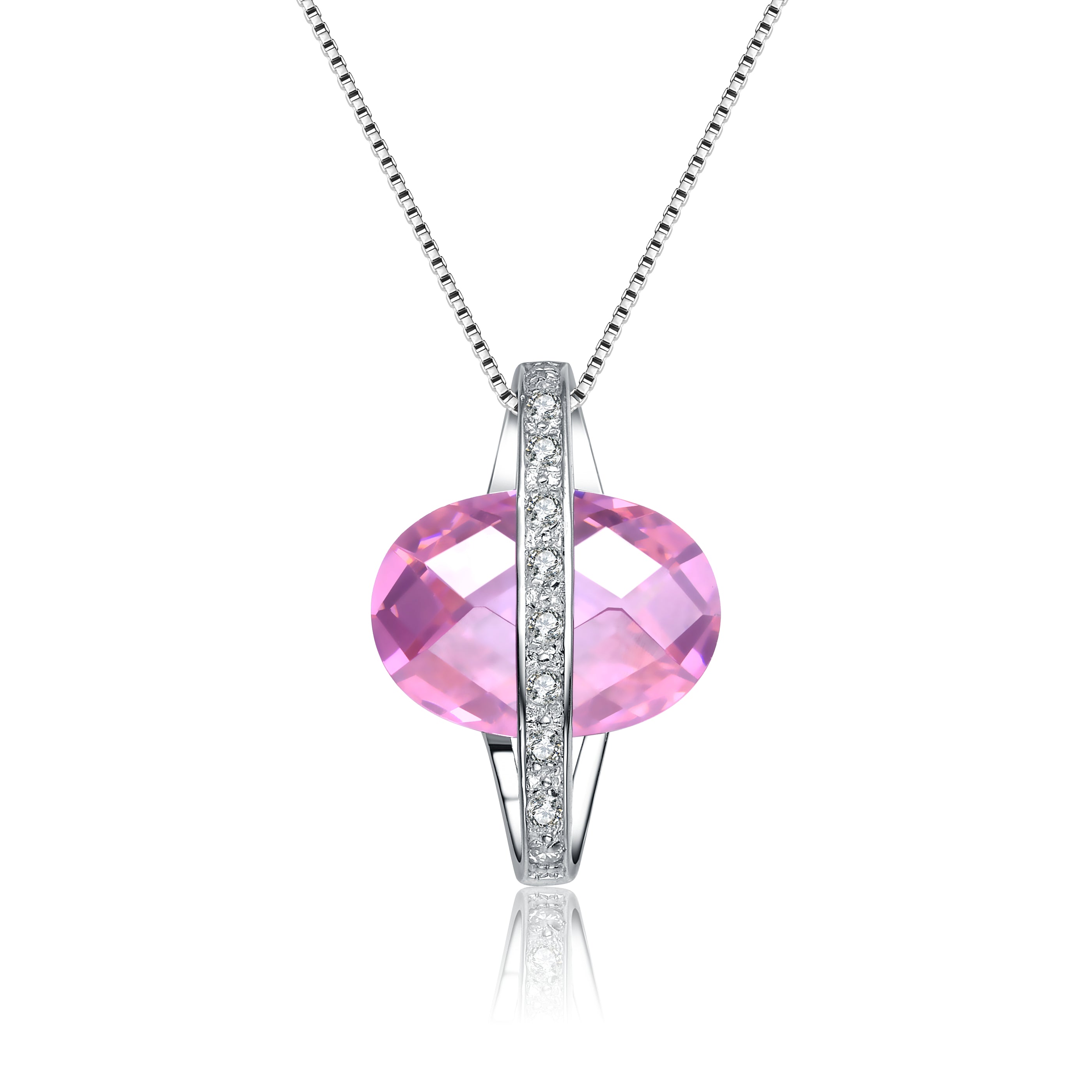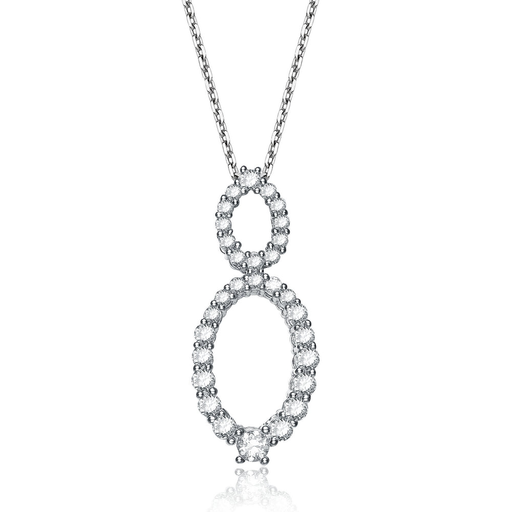 Cubic Zirconia Sterling Silver White Gold Plated Oval Shape Drop Pendant