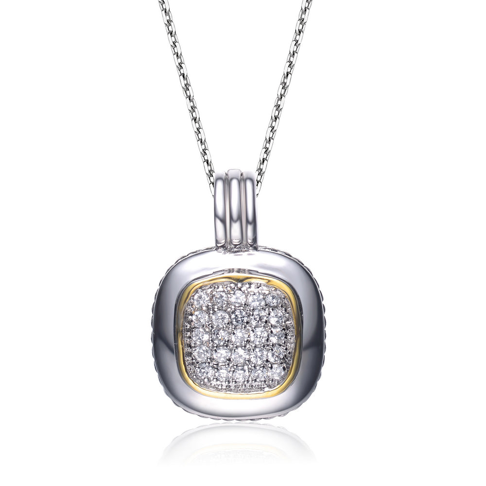 CZ Two Tone Square Drop Pendant With Sterling Silver Finish