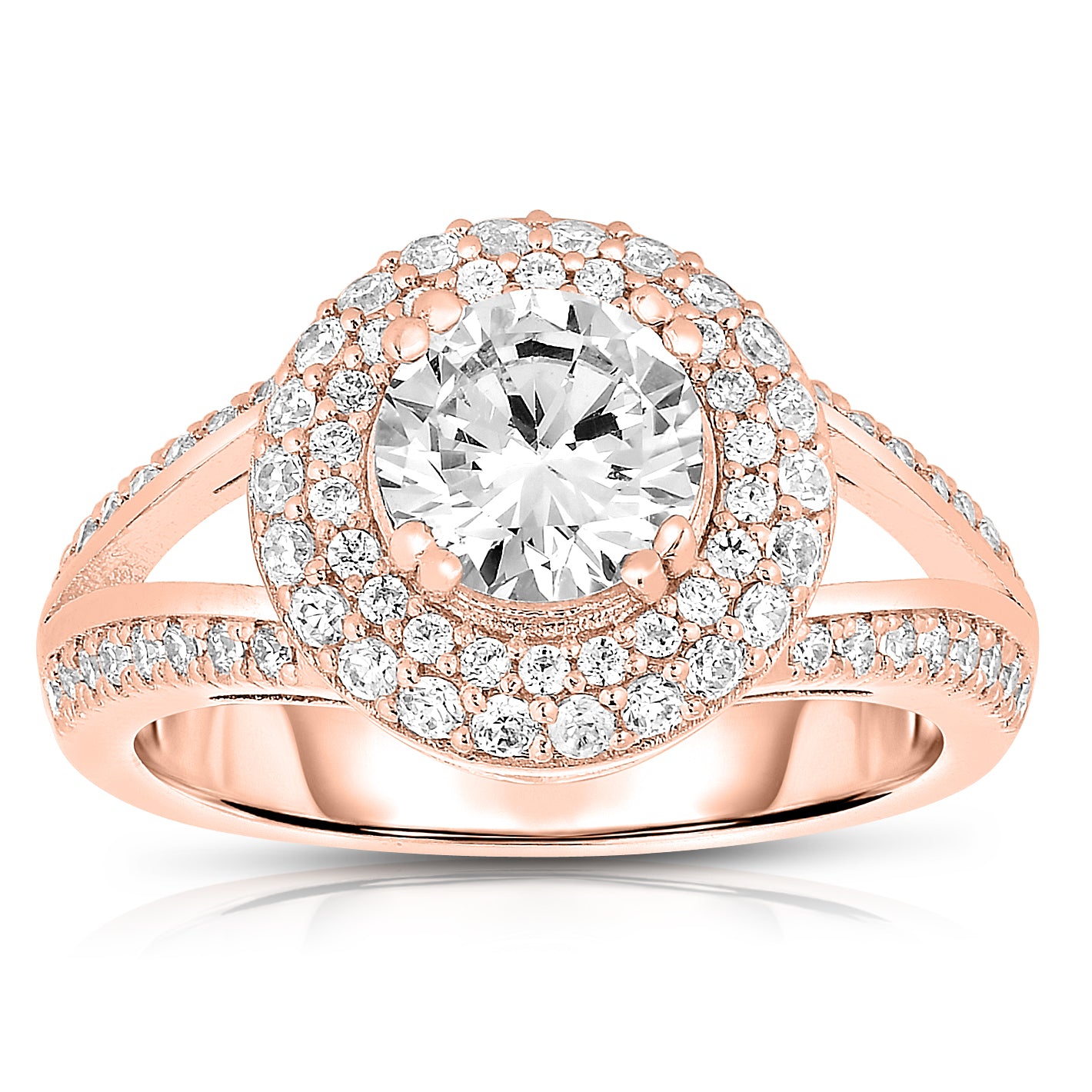 Cubic Zirconia Rose-plated Sterling Silver Round-cut Cubic Zirconia Ring