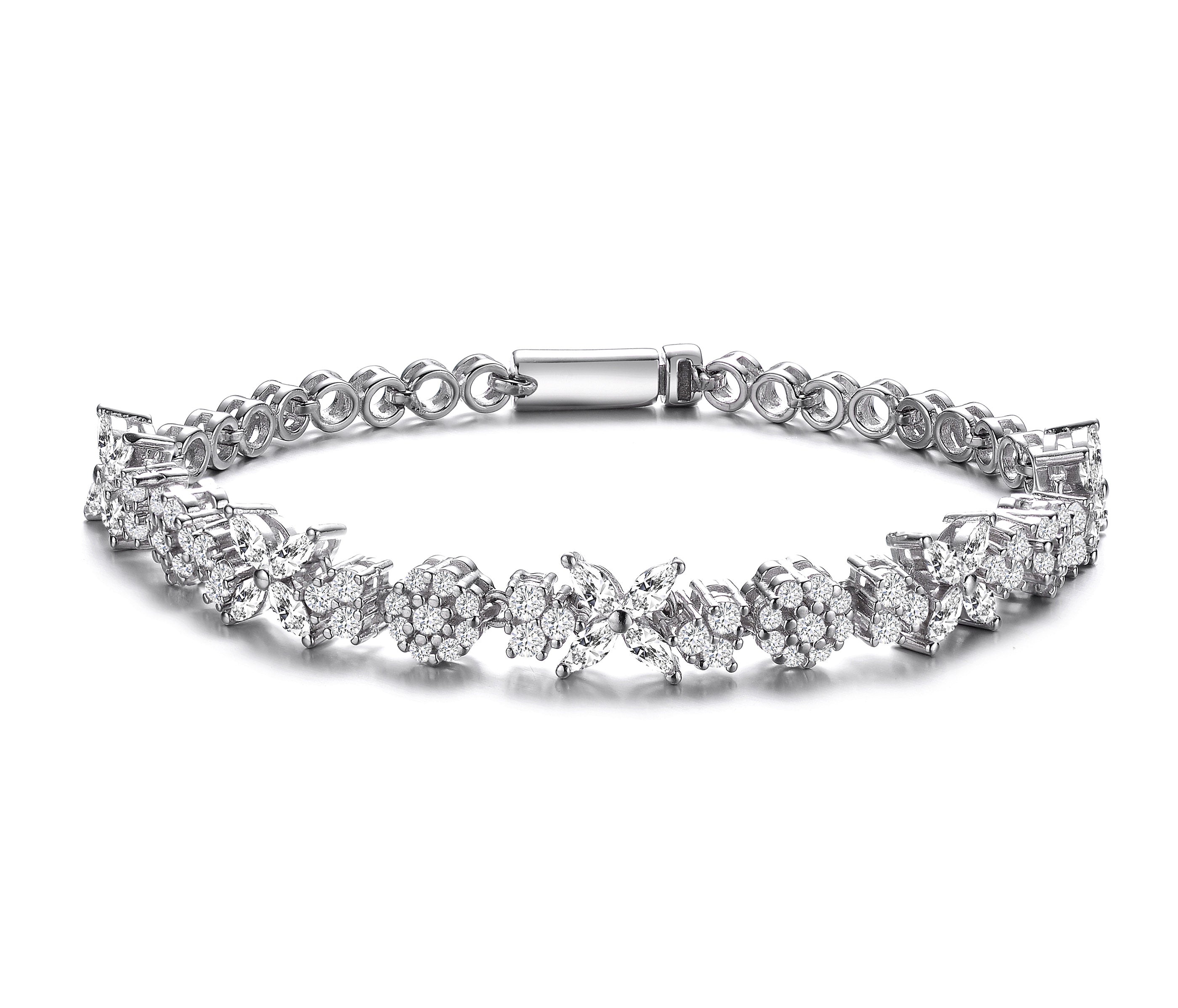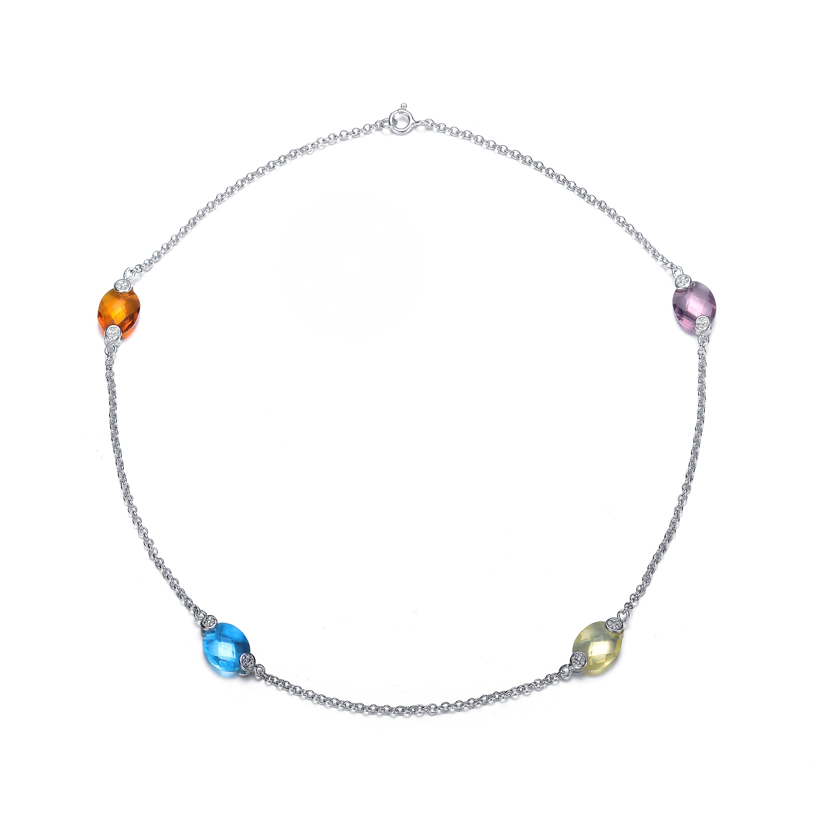Cubic Zirconia Sterling Silver Rhodium Plated Double Outlined Circle Neckalce