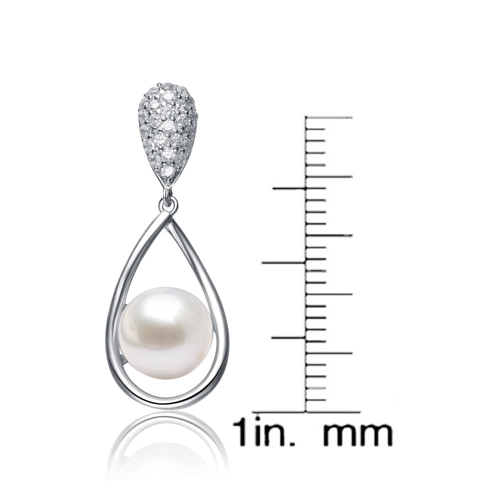 Sterling Silver Freshwater Pearl Cubic Zirconia Earrings (8 mm)