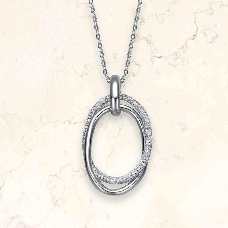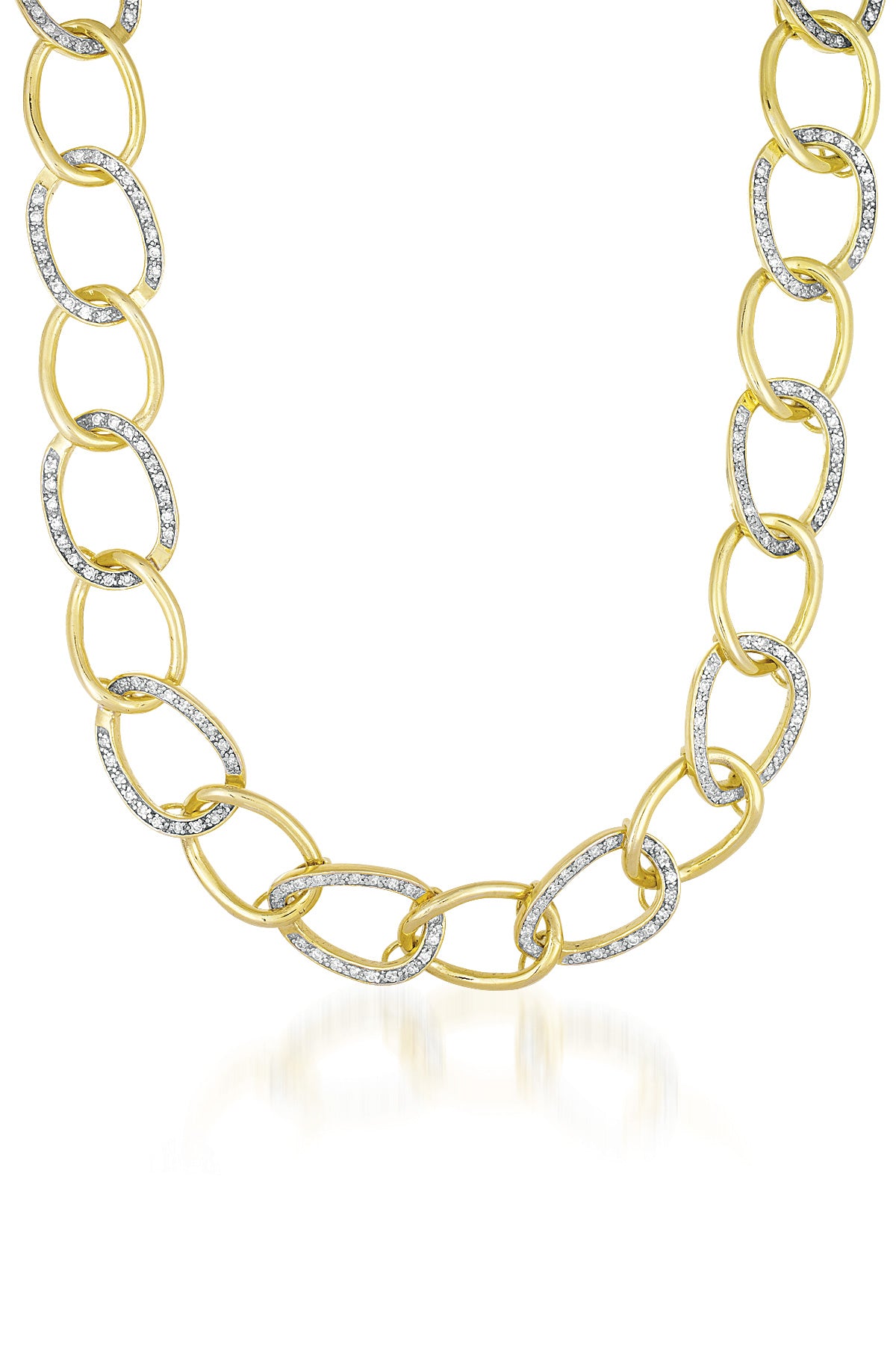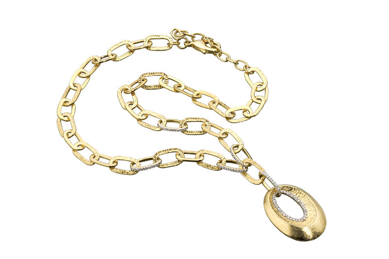 Pompidou Dual Golden Link and CZ Oval Necklace