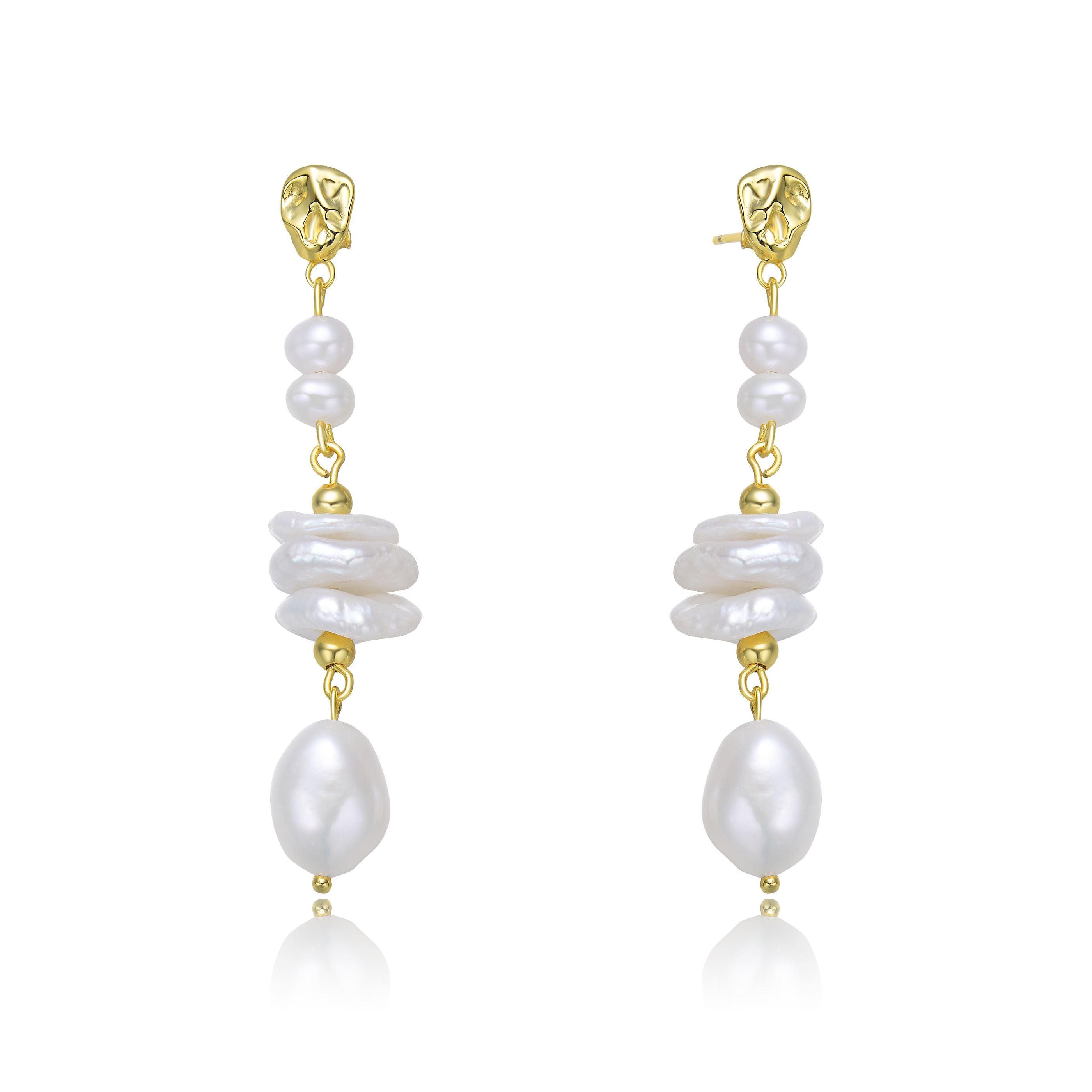 Brigitte Golden Pearl Chain Couture Drop Earrings