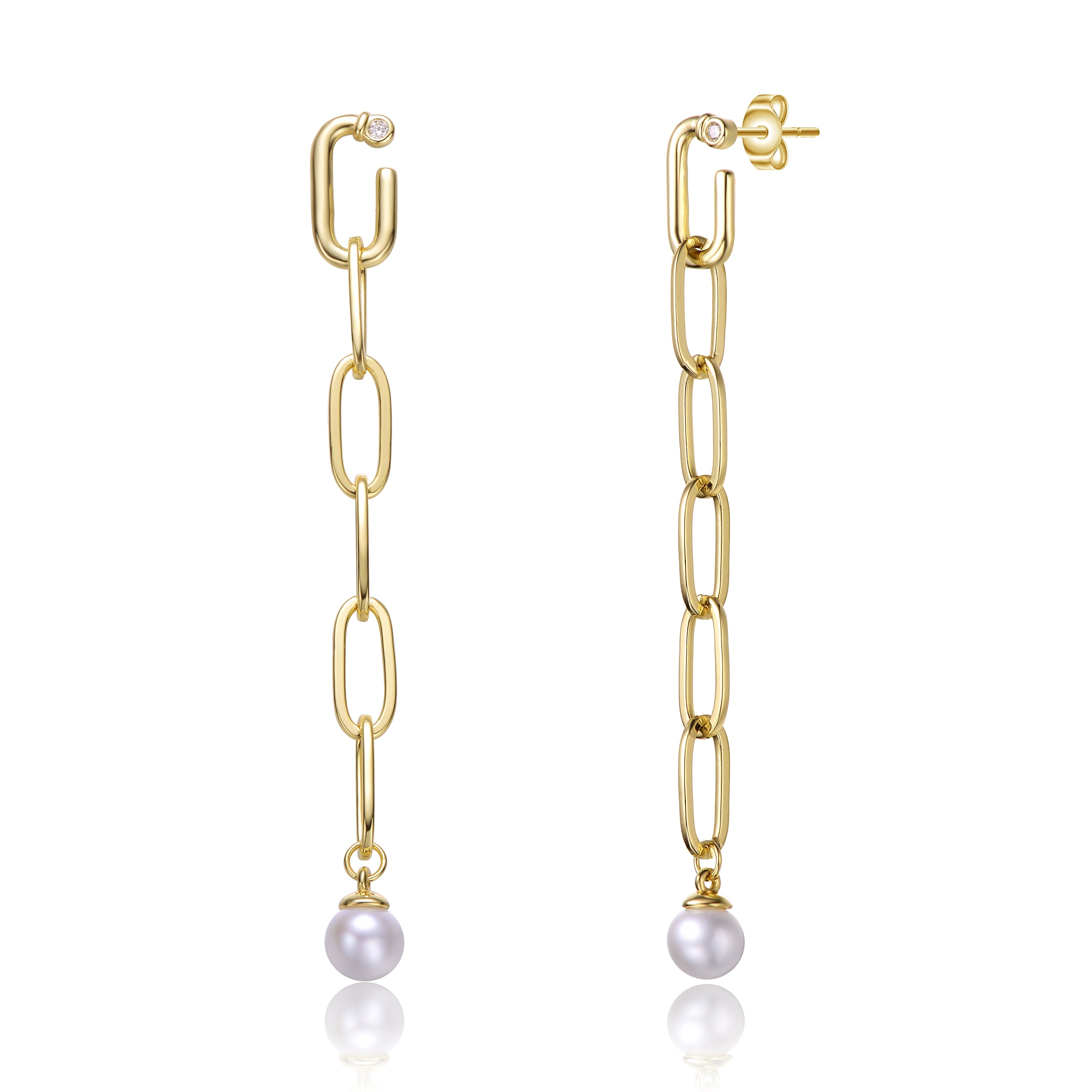 Delphine Golden Link Pearl Dangle Earrings