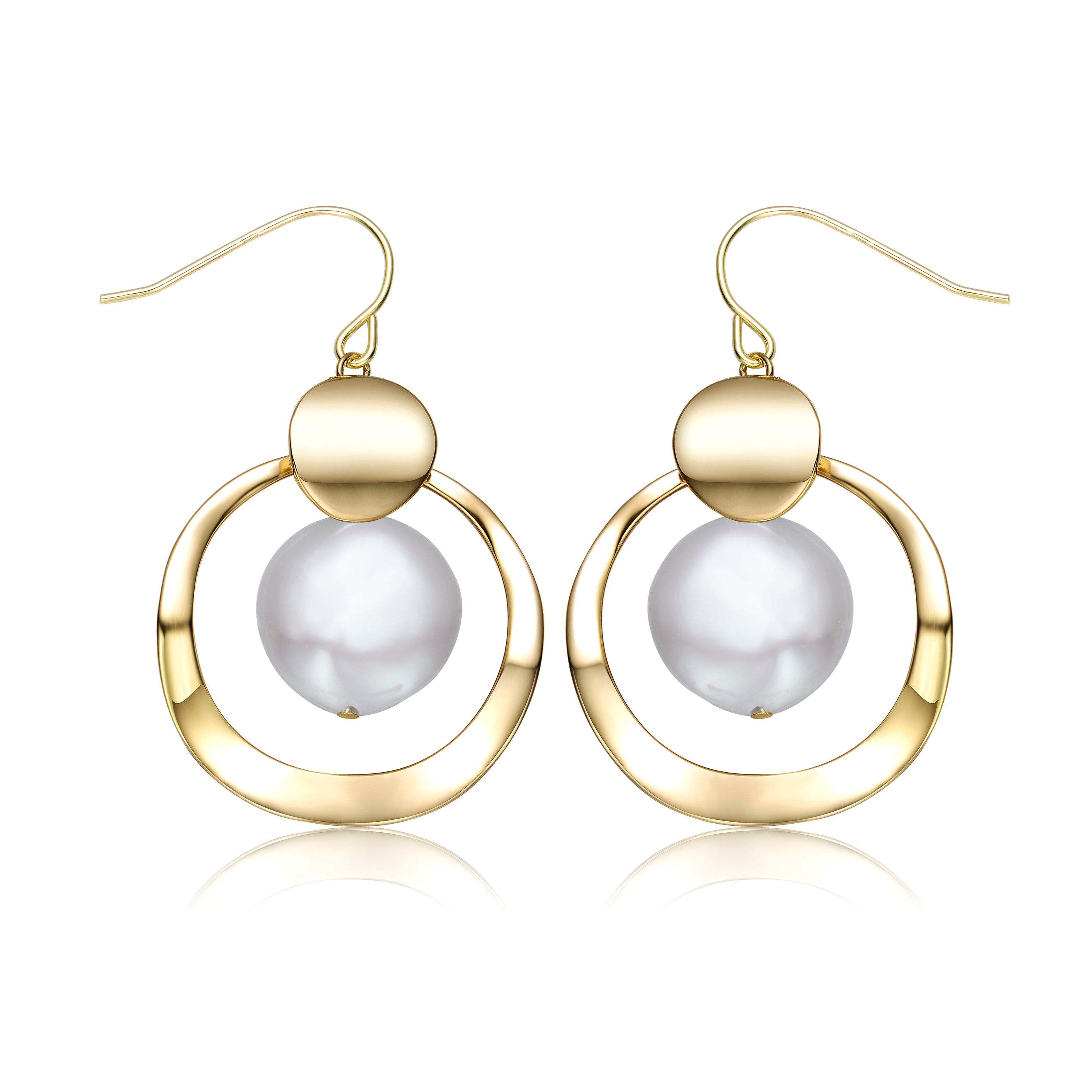 Delphine Circle Ribbon Golden Pearl Earrings