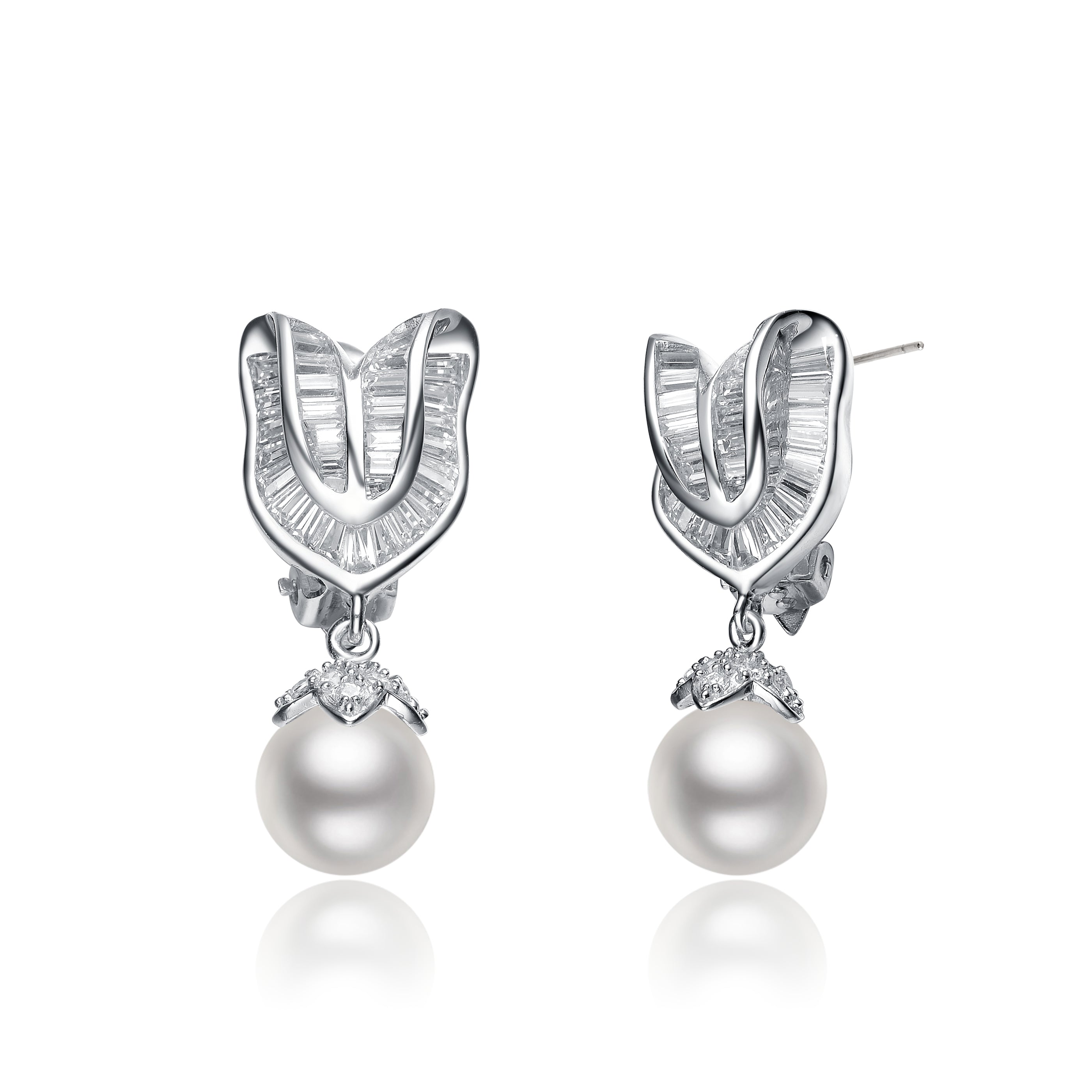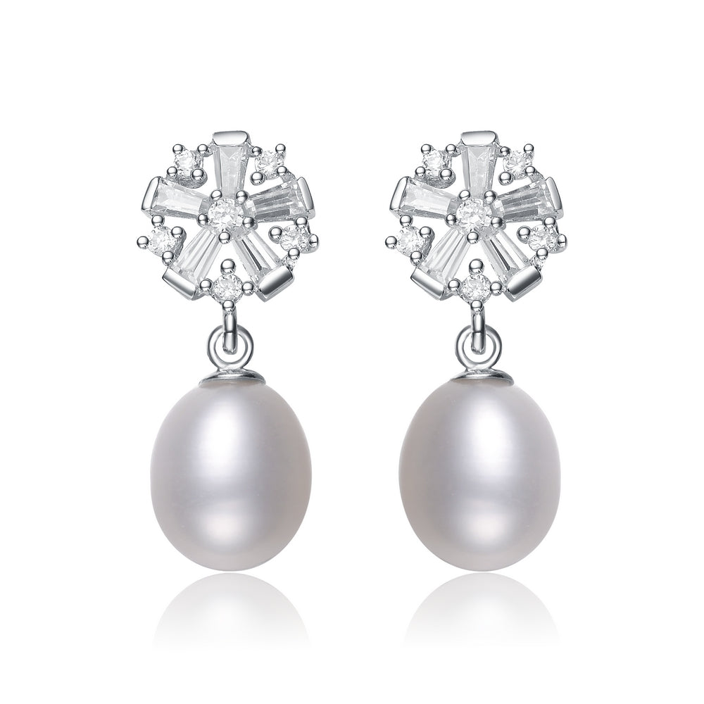 CZ Sterling Silver Rhodium Plated Pearl Earrings