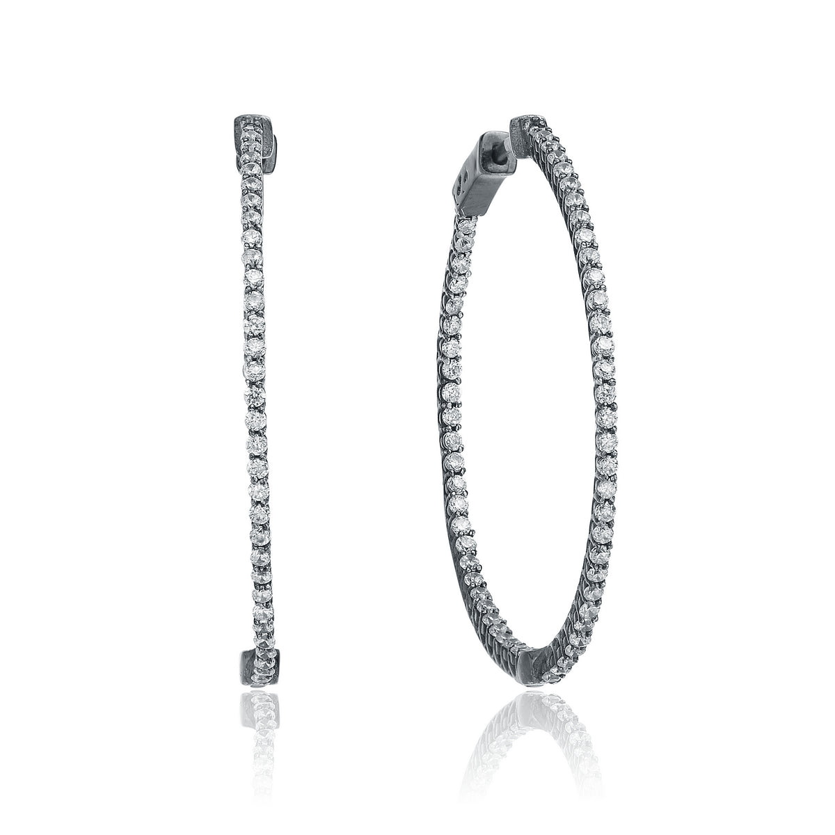 Cubic Zirconia Sterling Silver Outlined Hoop Earrings