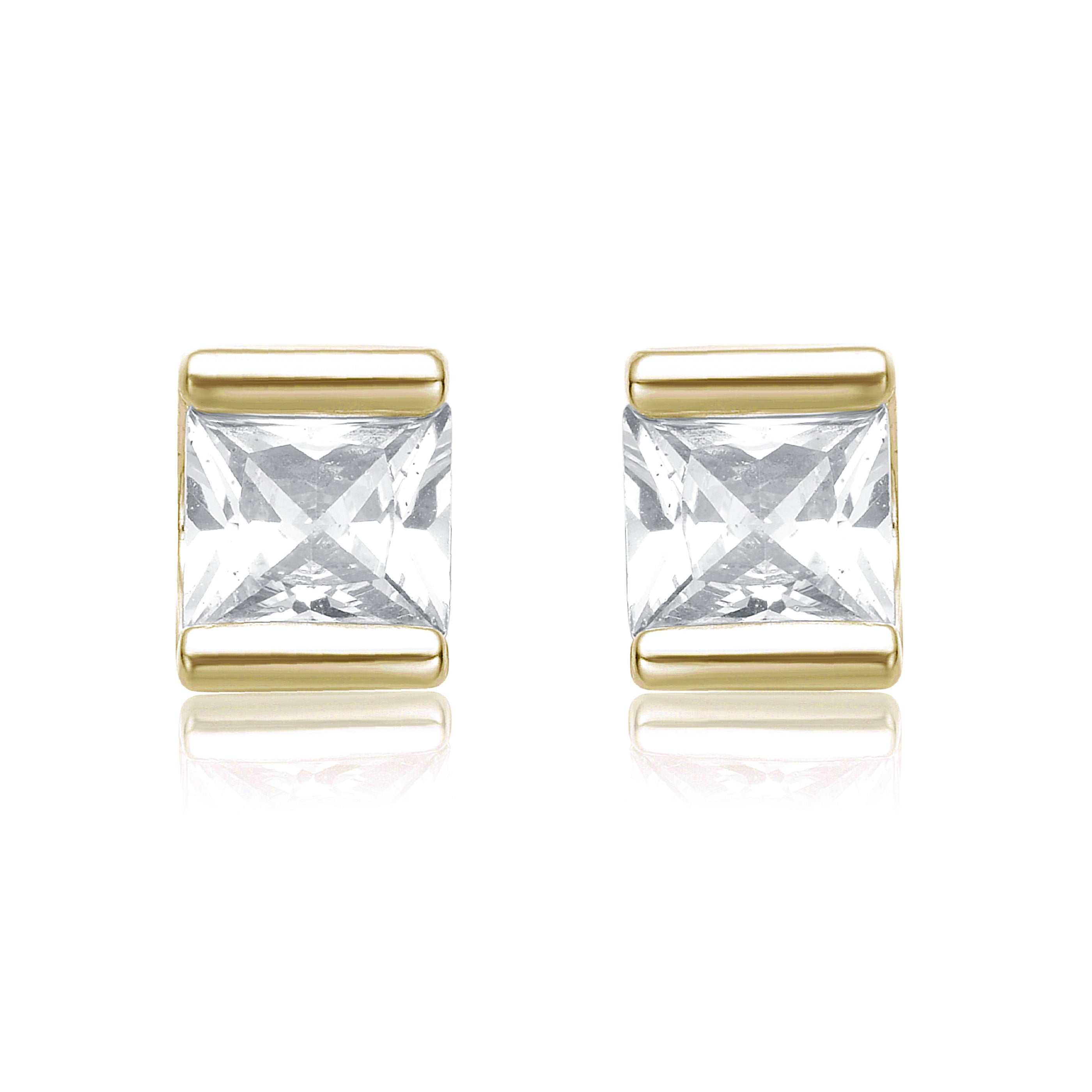 Sterling Silver 18K Rose Gold Plating Cubic Zirconia Square Designed Earring