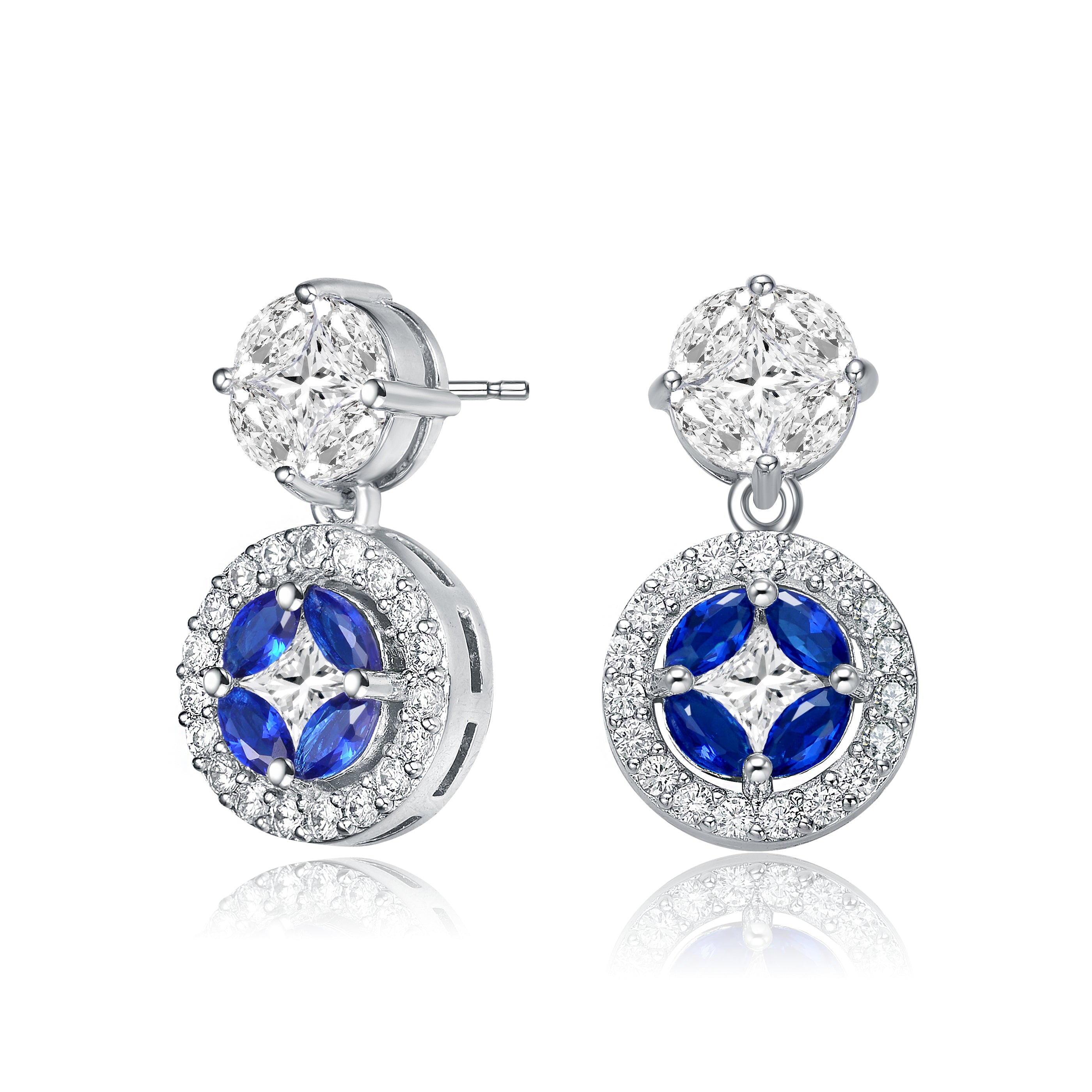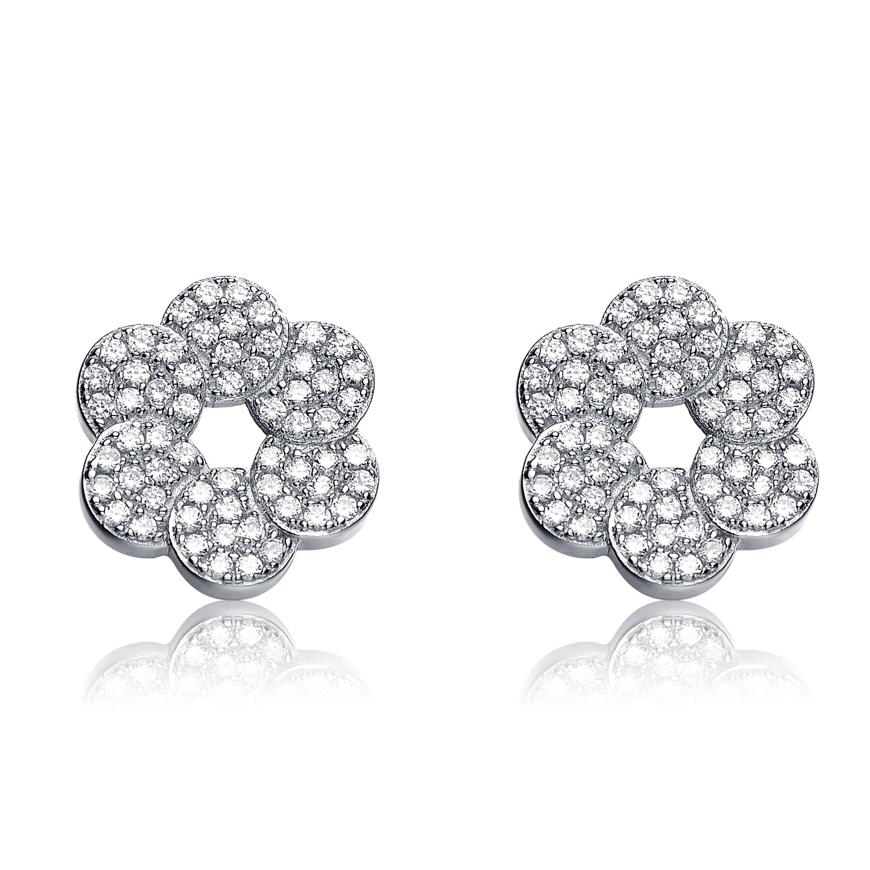 Sterling Silver Cubic Zirconia Round Flower Shape Earrings