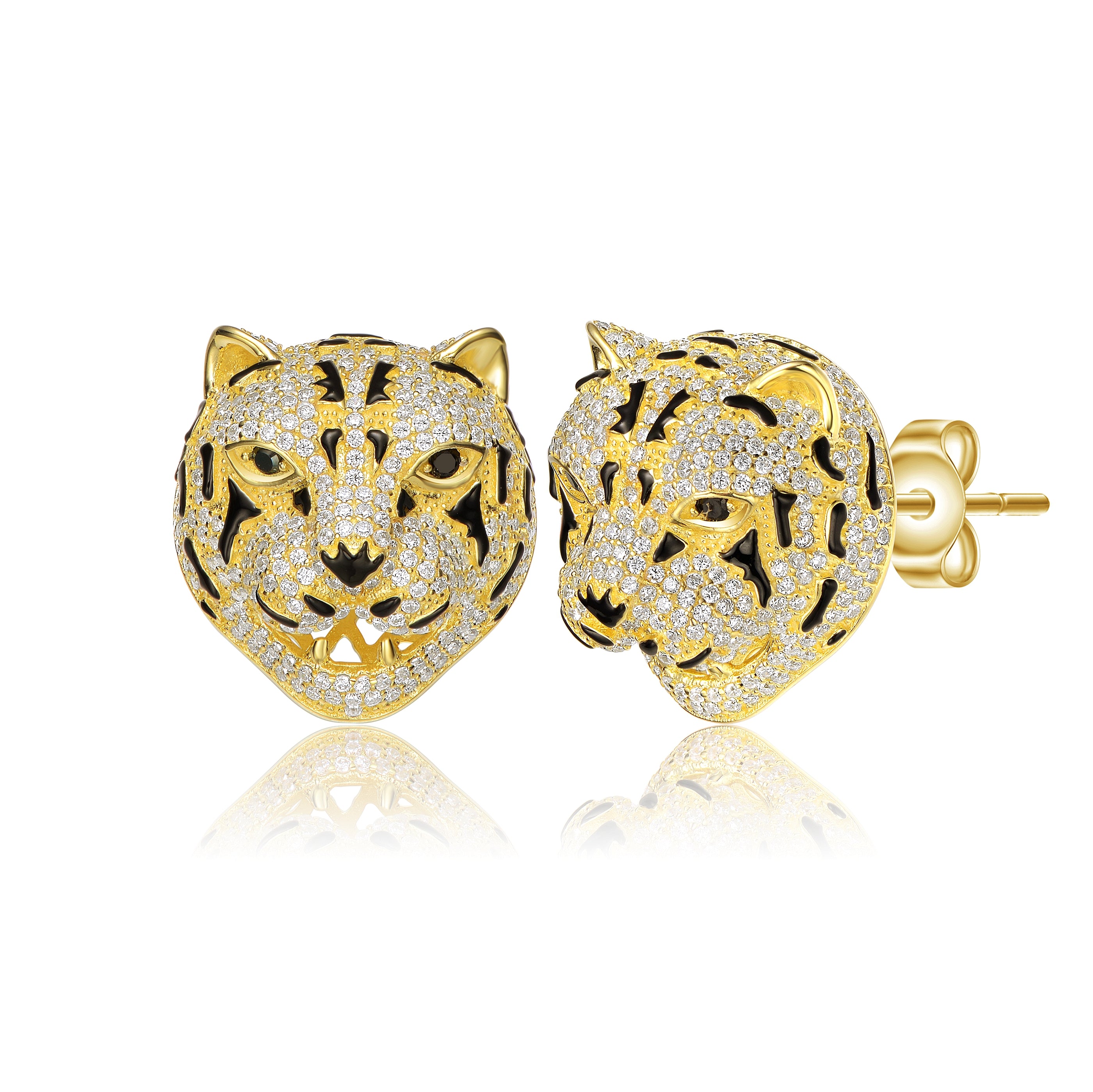 Sterling Silver 14k Yellow Gold Plated with Blue Sapphire & Cubic Zirconia Wasp Stud Earrings