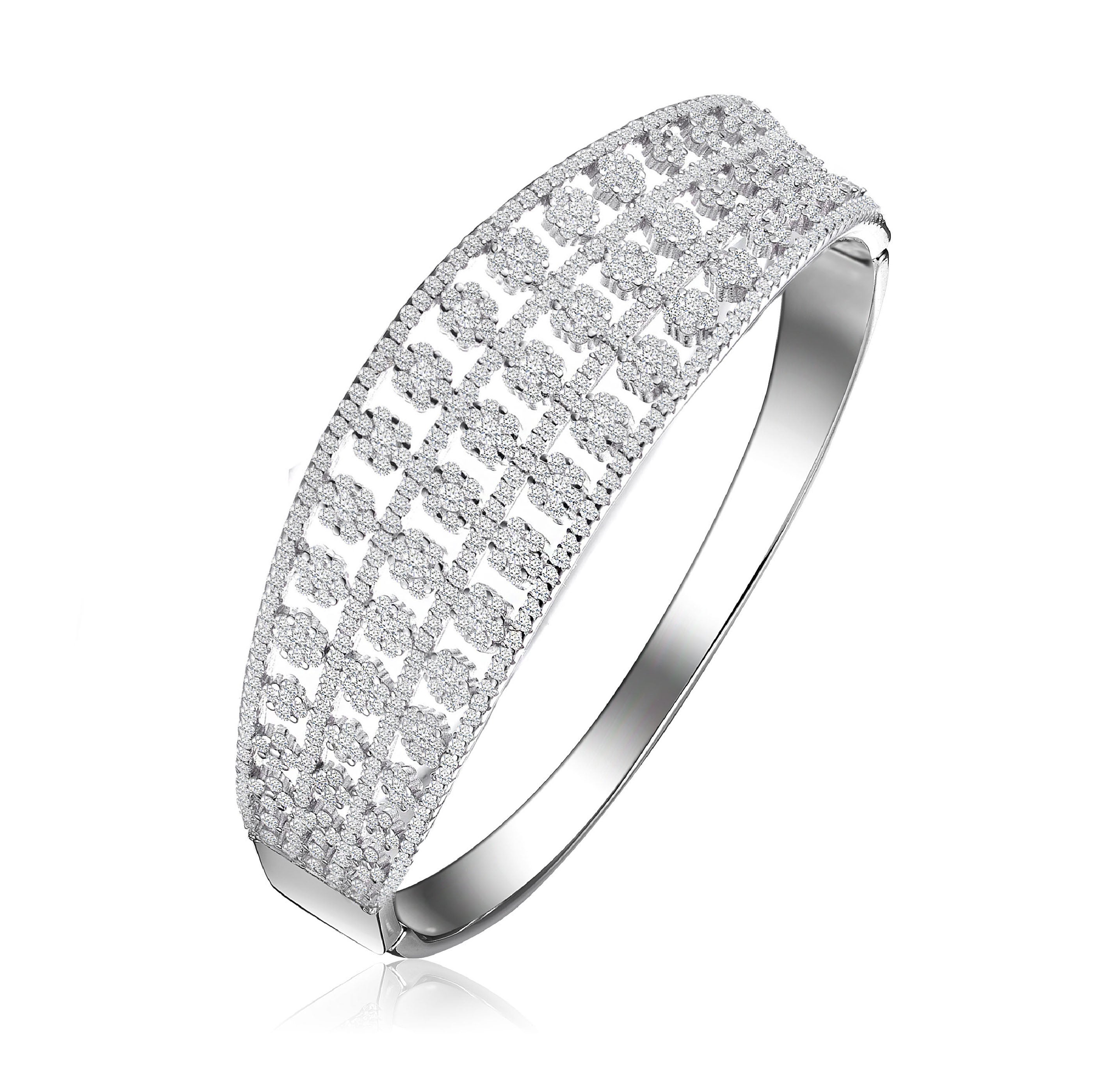 Sterling Silver with Rhodium Plated Clear Round Cubic Zirconia Wavy Twisted Bracelet