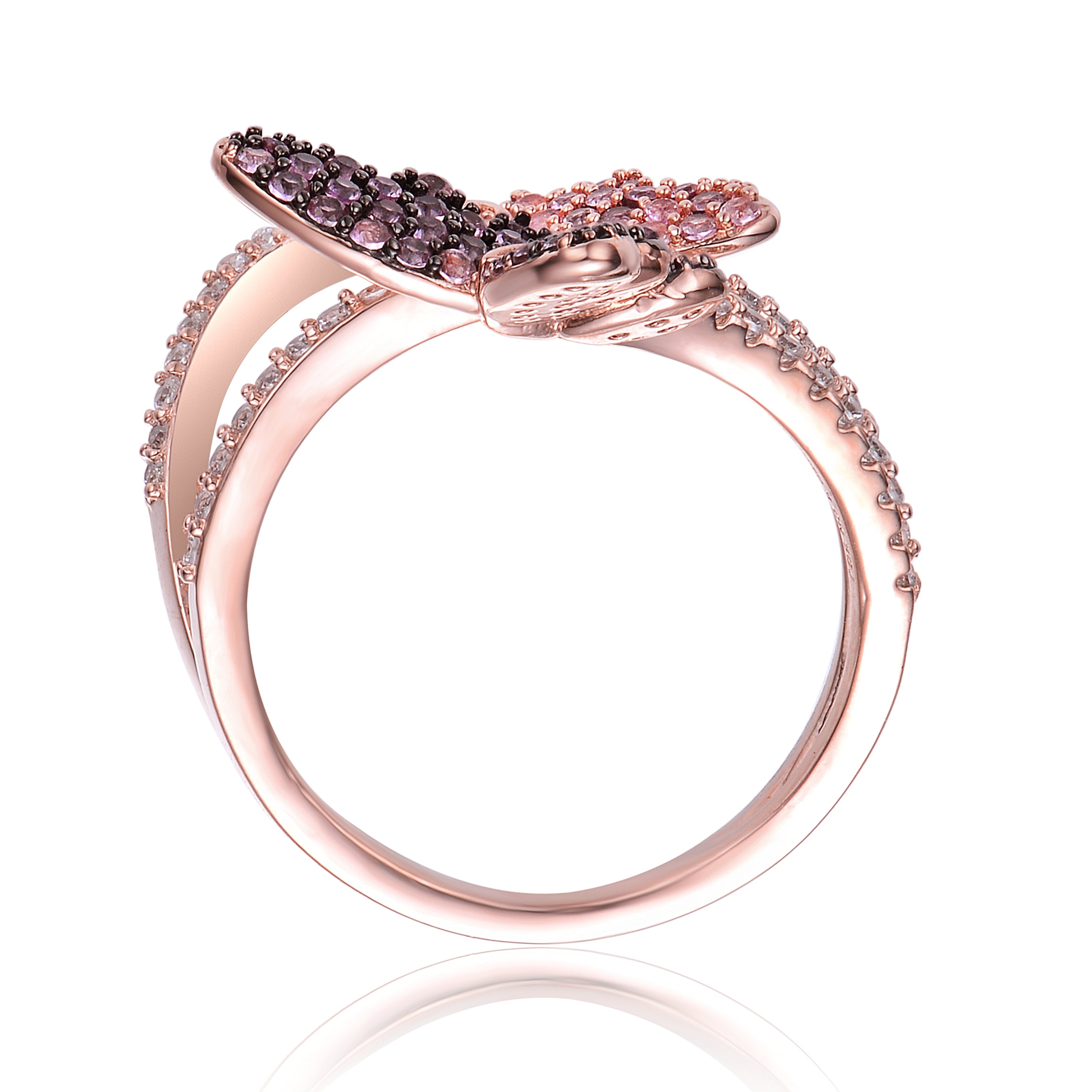 18K Rose Gold Plated Red Cubic Zirconia Accent Butterfly Design Setting Ring