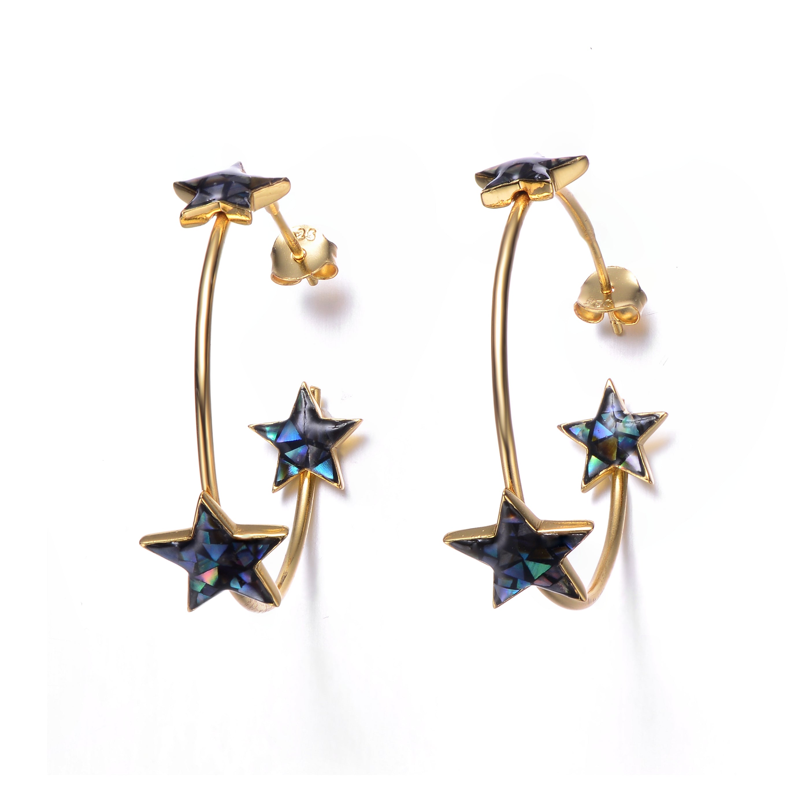 Elegant Gold-Plated Sterling Silver Earrings with Abalone Stars
