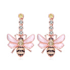 Stylish Sterling Silver 18K Rose Plated Clear Cubic Zirconia Floral Drop Earrings. This pair of earrings features interesting bee design. The upper part features small yellow and small clear round cubic zirconias set in hexagon bezel shape. It continues down where the bee shape is accented with small yellow and black round cubic zirconia stones set in decorative prong setting, and wings accented with white stones. Crafted of Sterling Silver with 18K Rose Plating and it is secured with butterfly closure. Perfect piece of jewelry for stylish combinations. This item also makes a sensational gift.