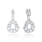 These fancy dangling earrings are decorated with white round-cut cubic zirconia stones creating flower designs. Crafted of .925 sterling silver, the earrings secure with butterfly clasps.